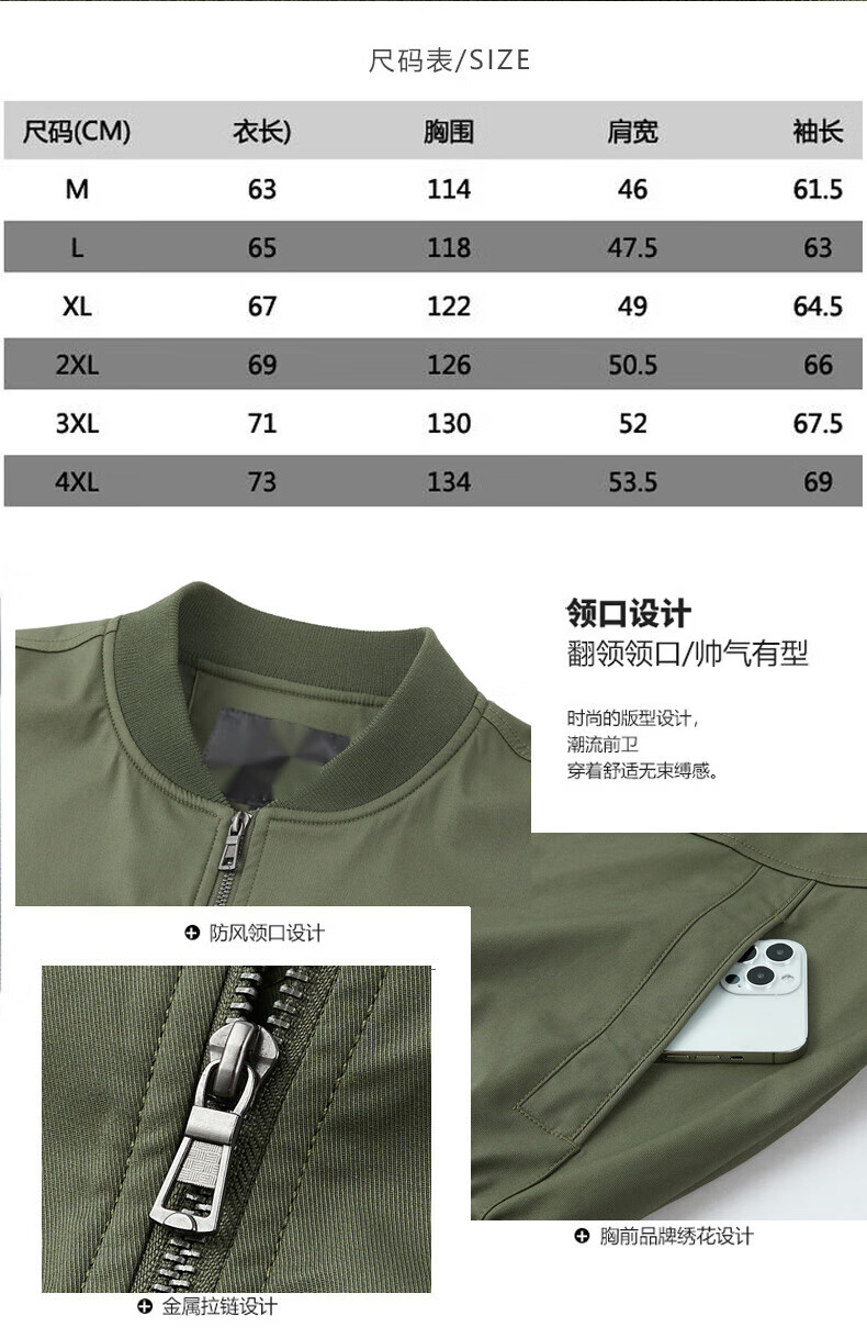 JEEP SPIRIT吉普精神飞行员夹克男春秋季工装复古棒球服美式休闲修身男士外套 军绿色 M 110-130斤