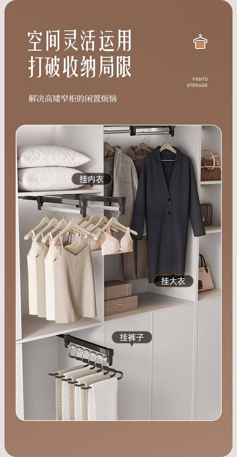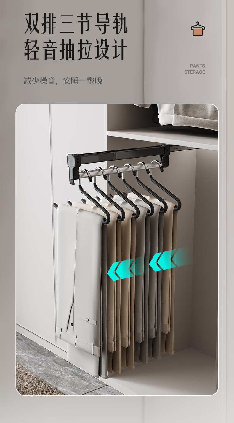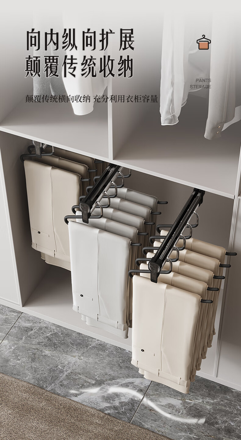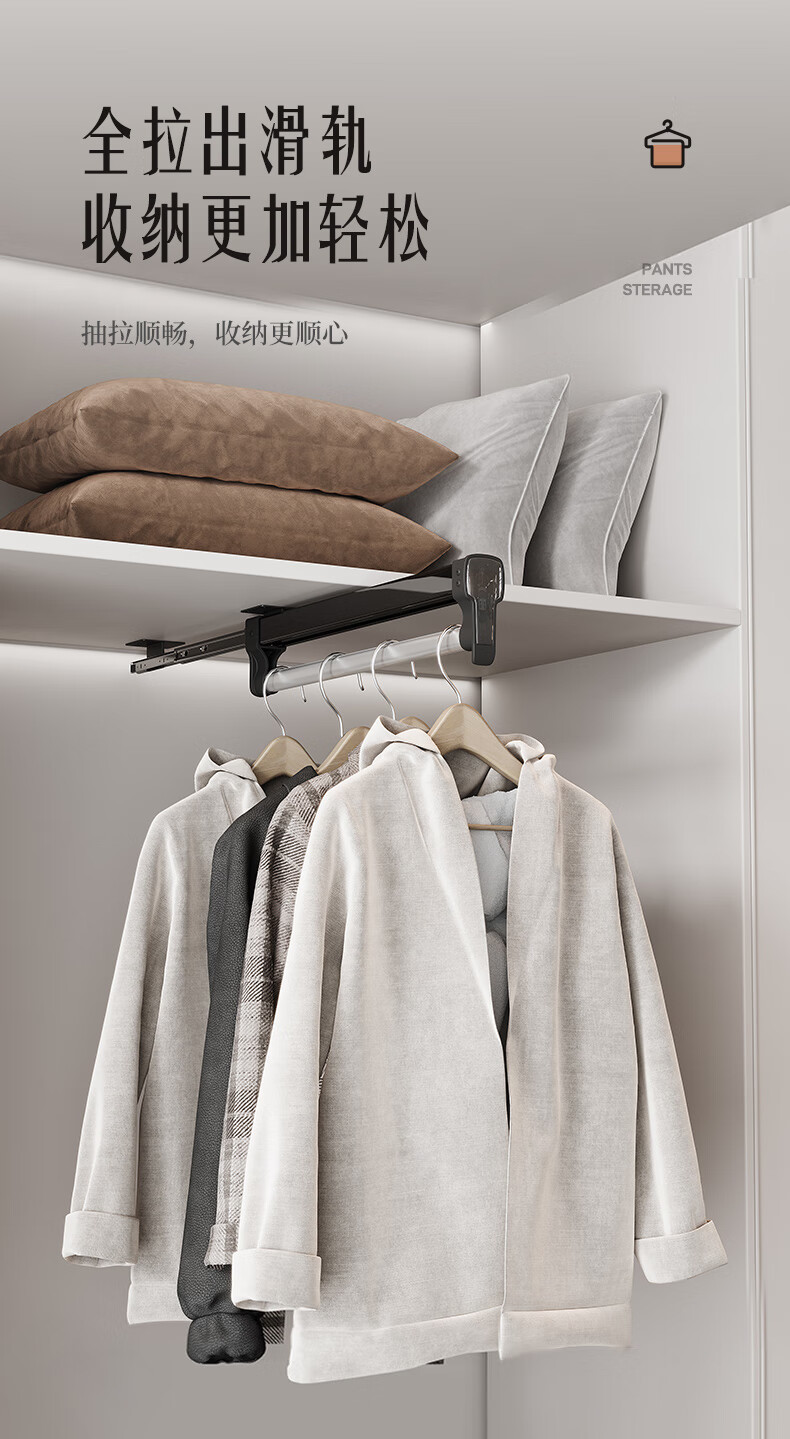 固特顶装式抽拉伸缩裤架滑轨柜内衣柜多功能收纳架挂衣杆裤挂裤抽 028阻尼旗舰款(柜深≥260)黑色 1个