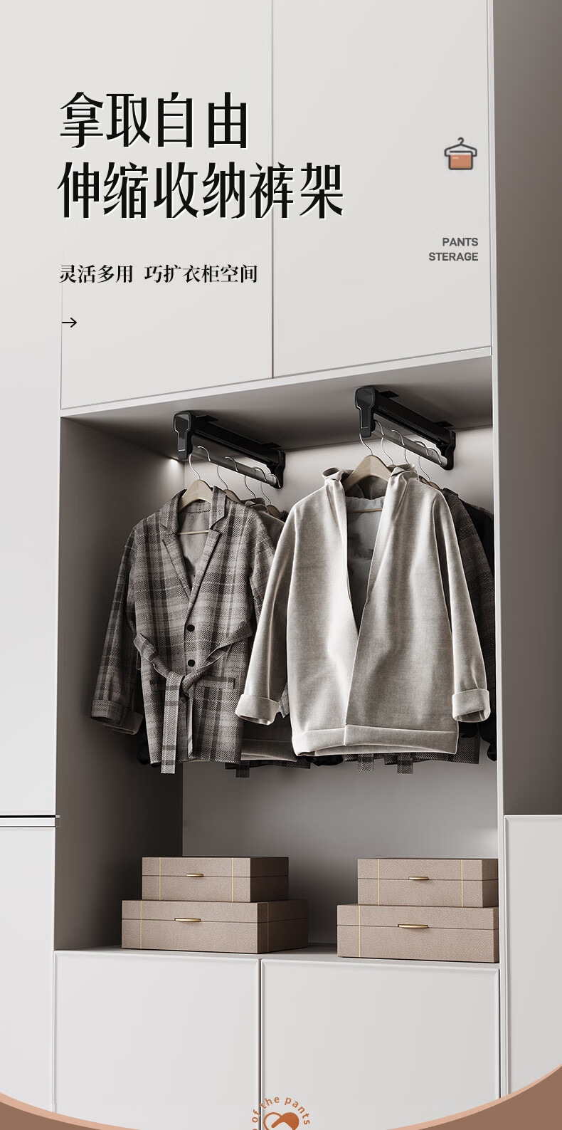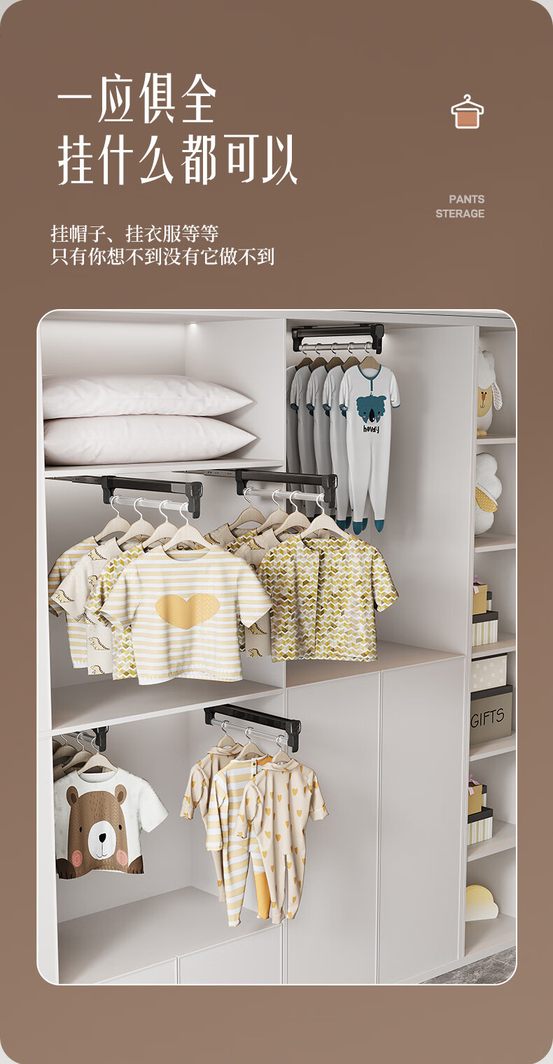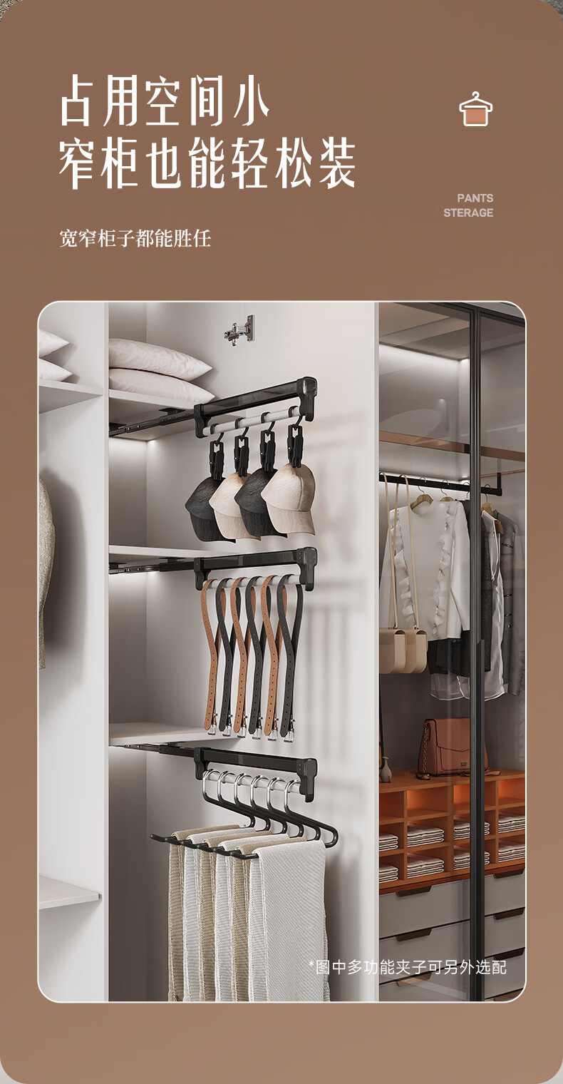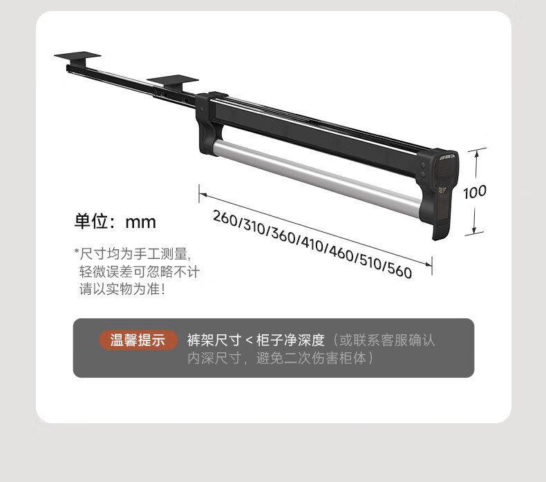 固特顶装式抽拉伸缩裤架滑轨柜内衣柜多功能收纳架挂衣杆裤挂裤抽 028阻尼旗舰款(柜深≥260)黑色 1个