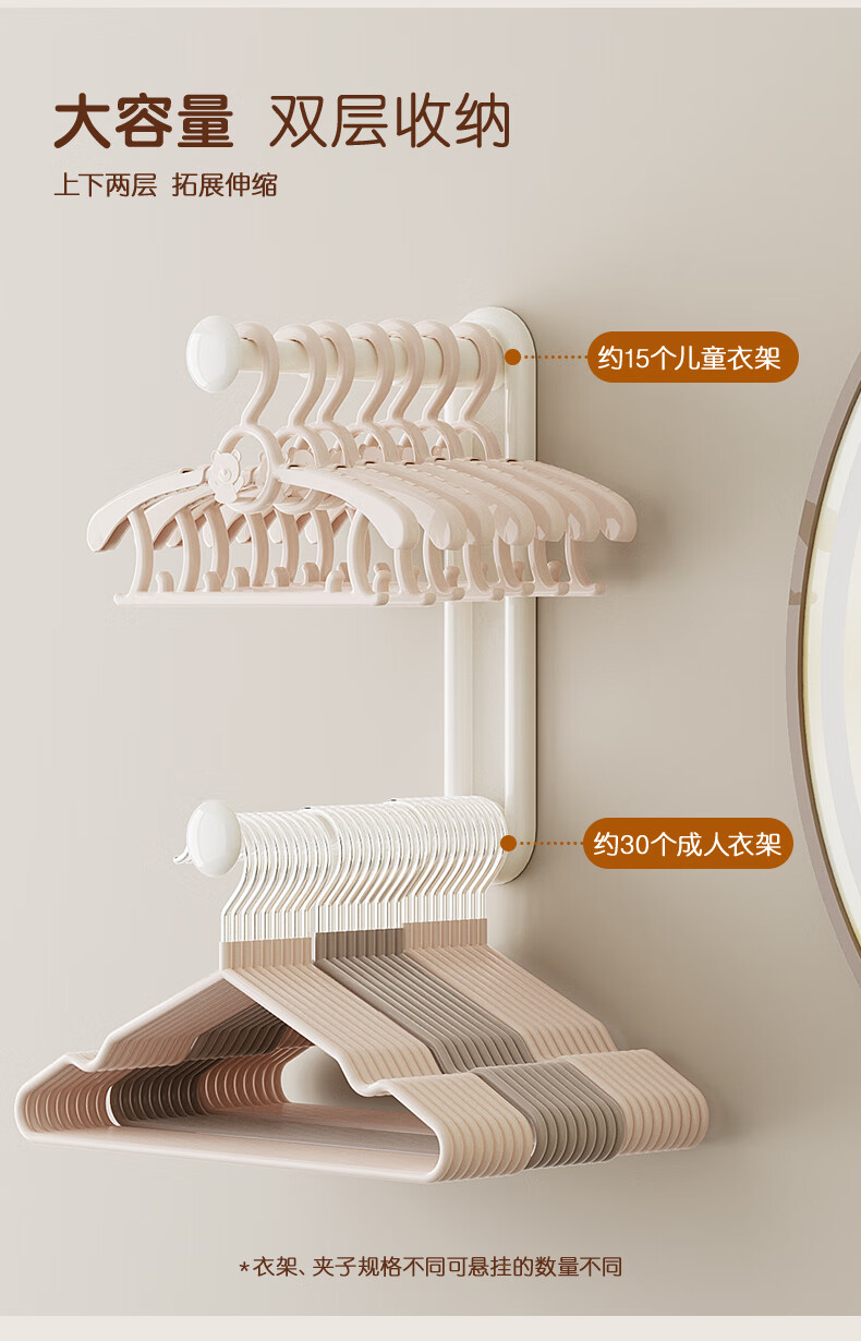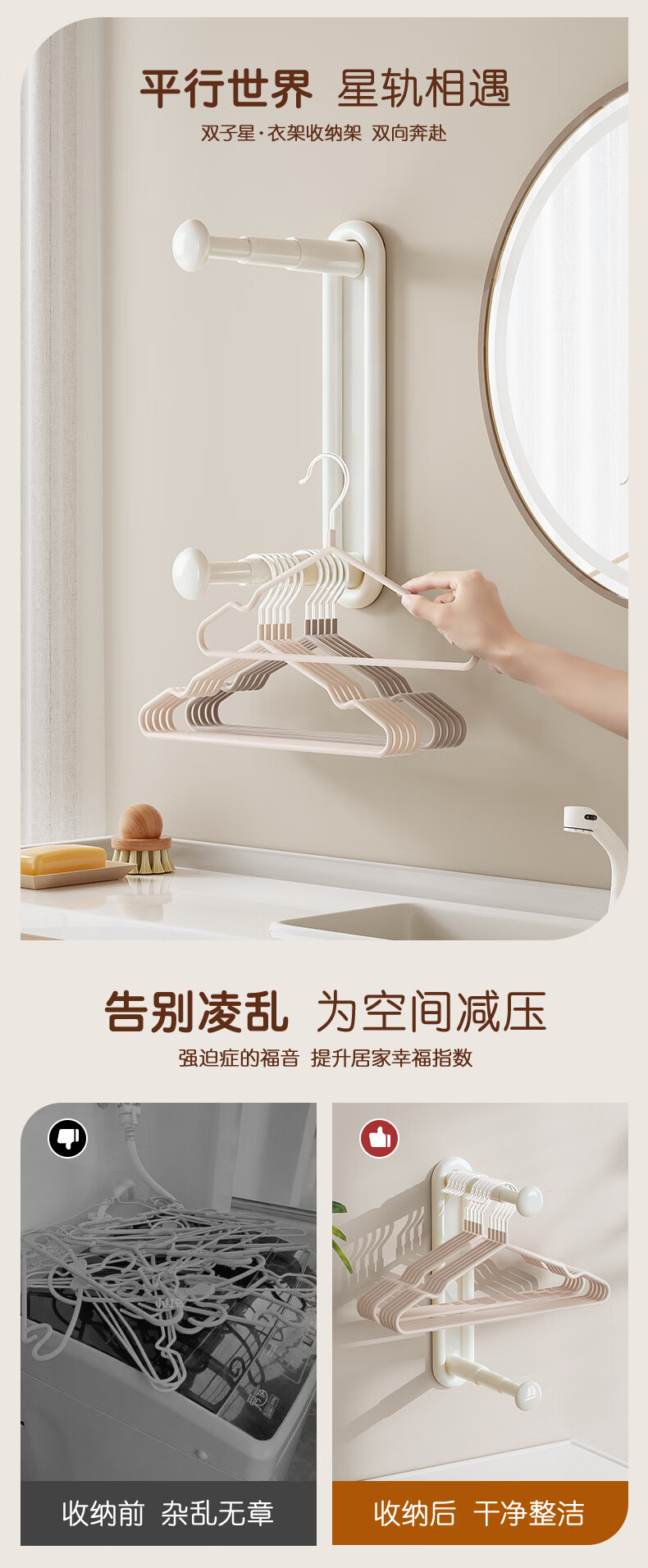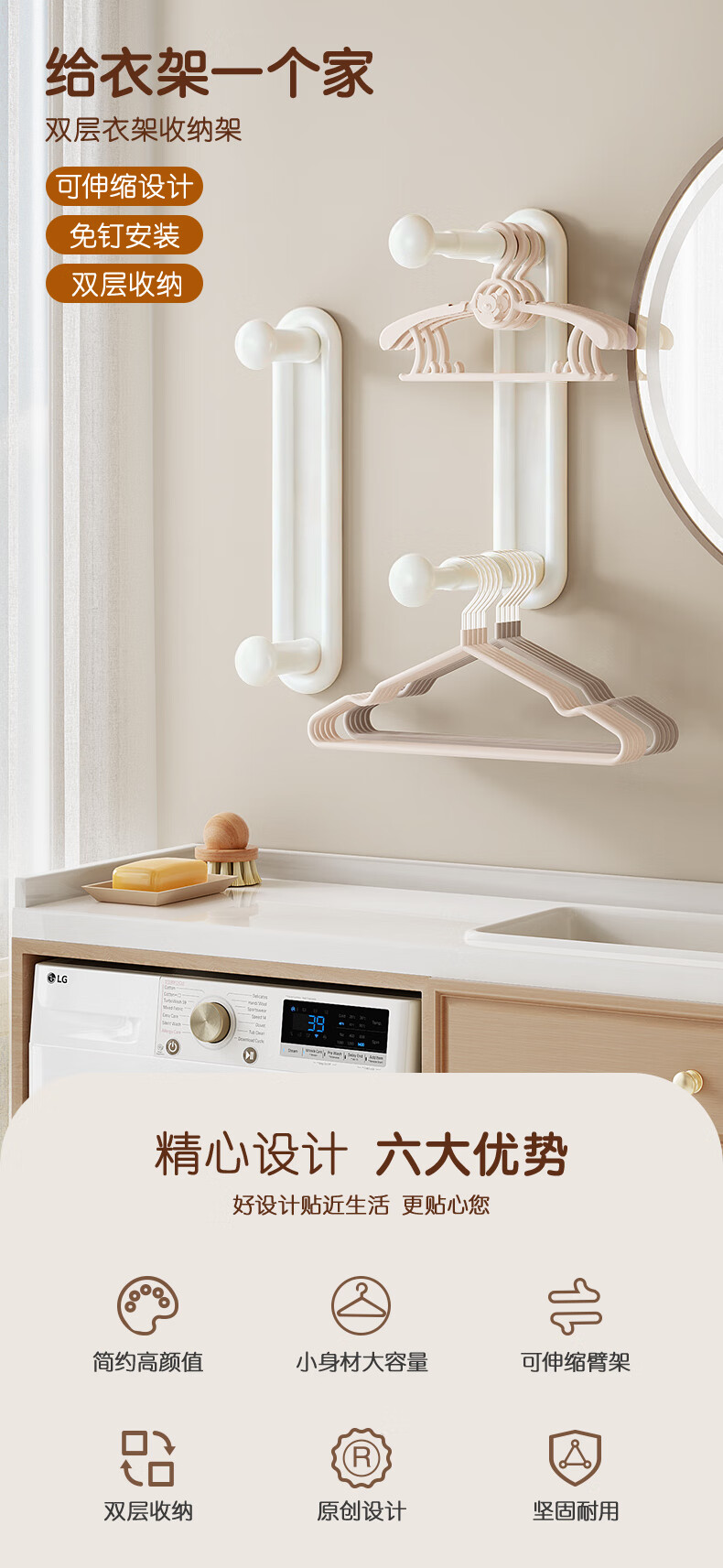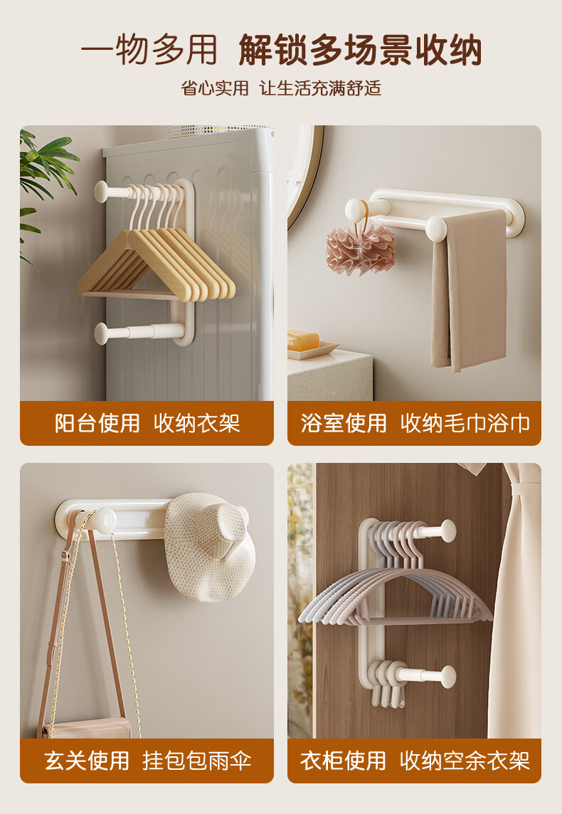 好太太(Hotata)躬亲衣架多功能衣架挂式收纳架免打孔阳台整理晾衣置物架 DF-FX衣架收纳架白【1个装】