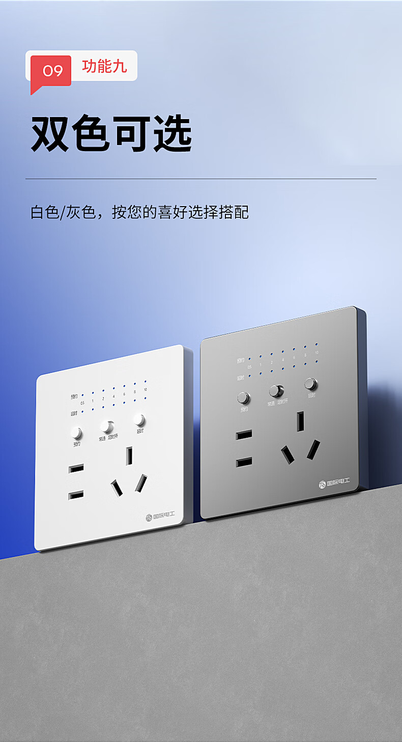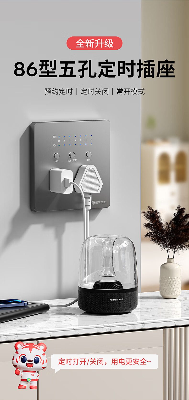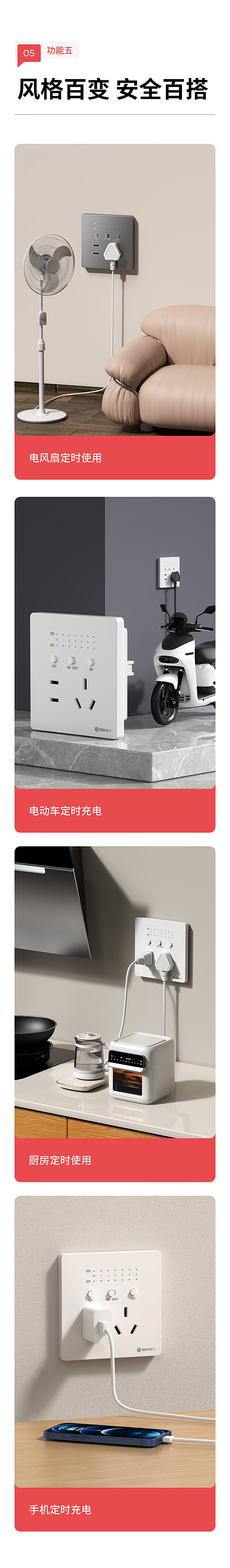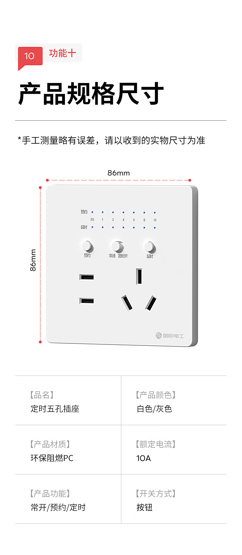 FDD国际电工86型暗装错位五孔定制插座家用多功能定时器智能预约定时开关插座 86型定时错位五孔插座-白色