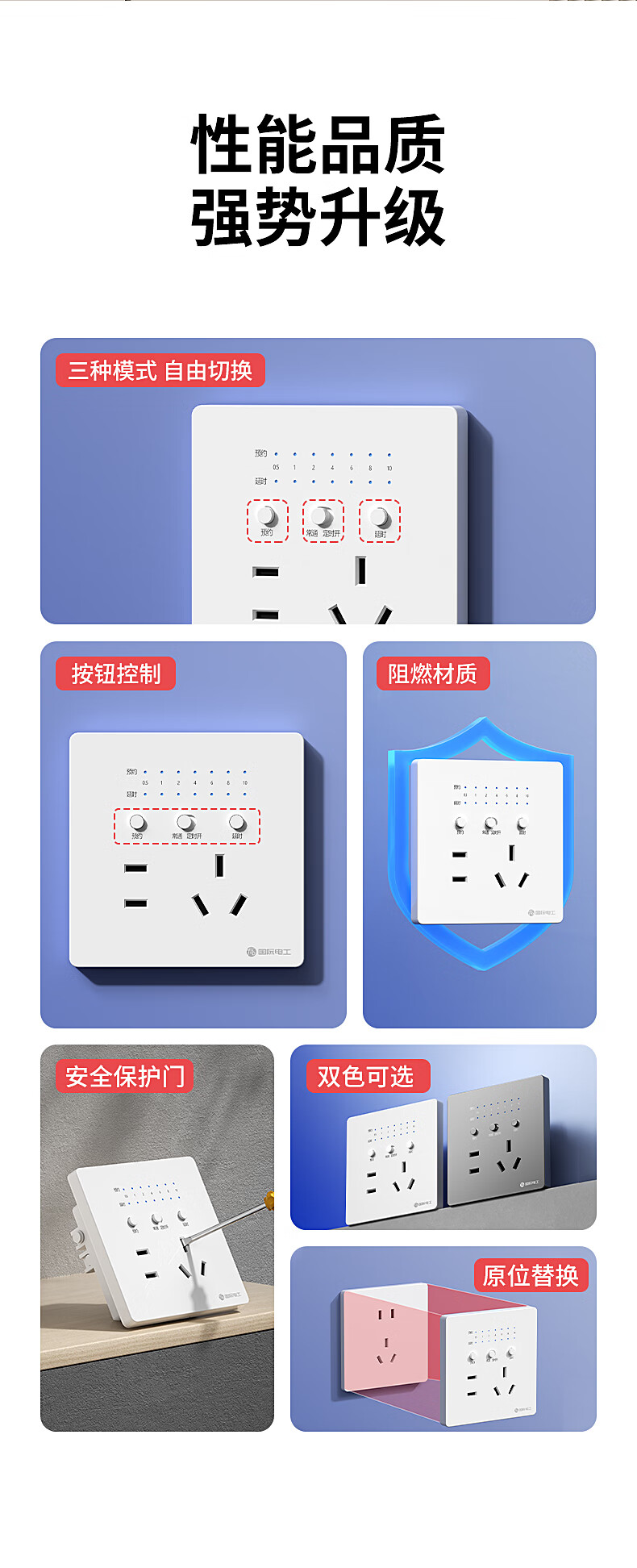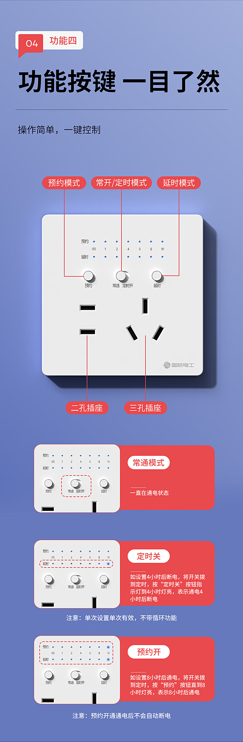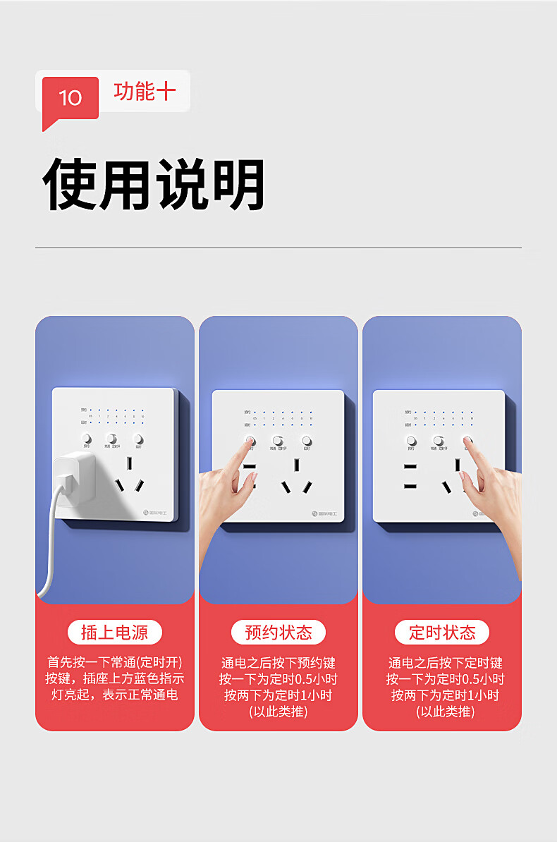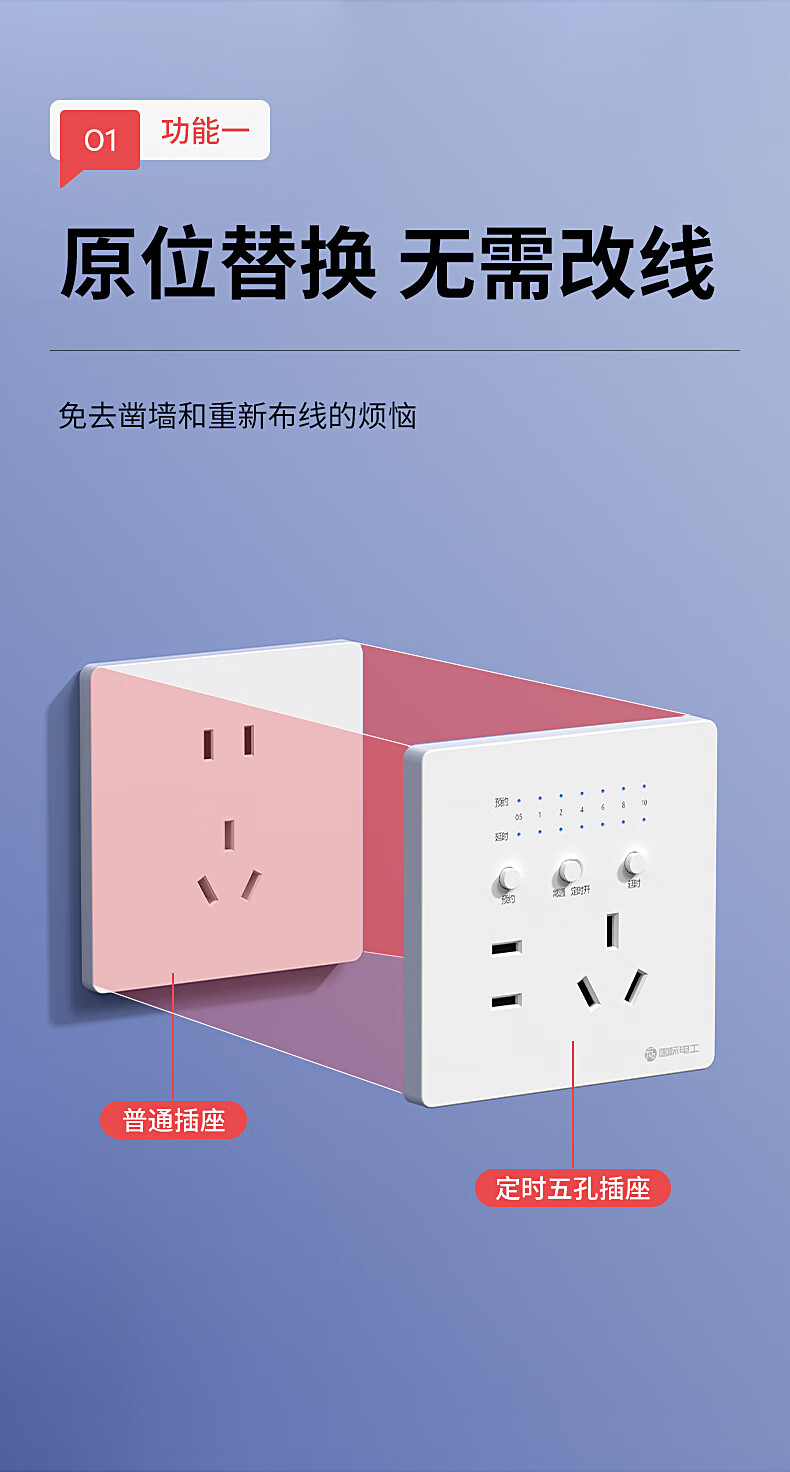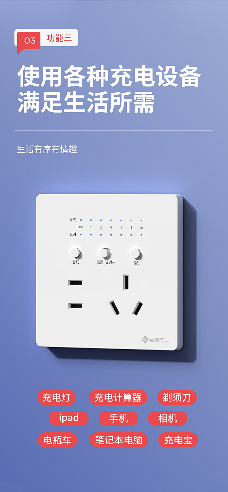 FDD国际电工86型暗装错位五孔定制插座家用多功能定时器智能预约定时开关插座 86型定时错位五孔插座-白色