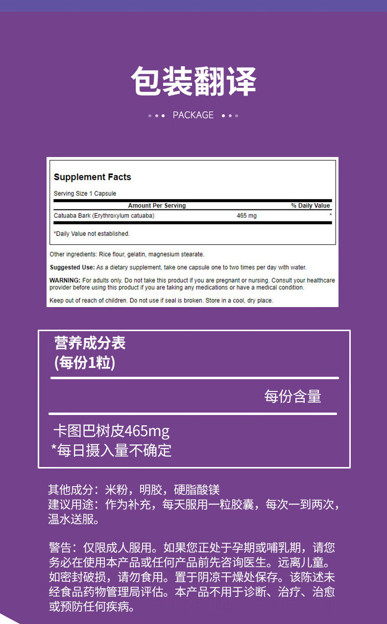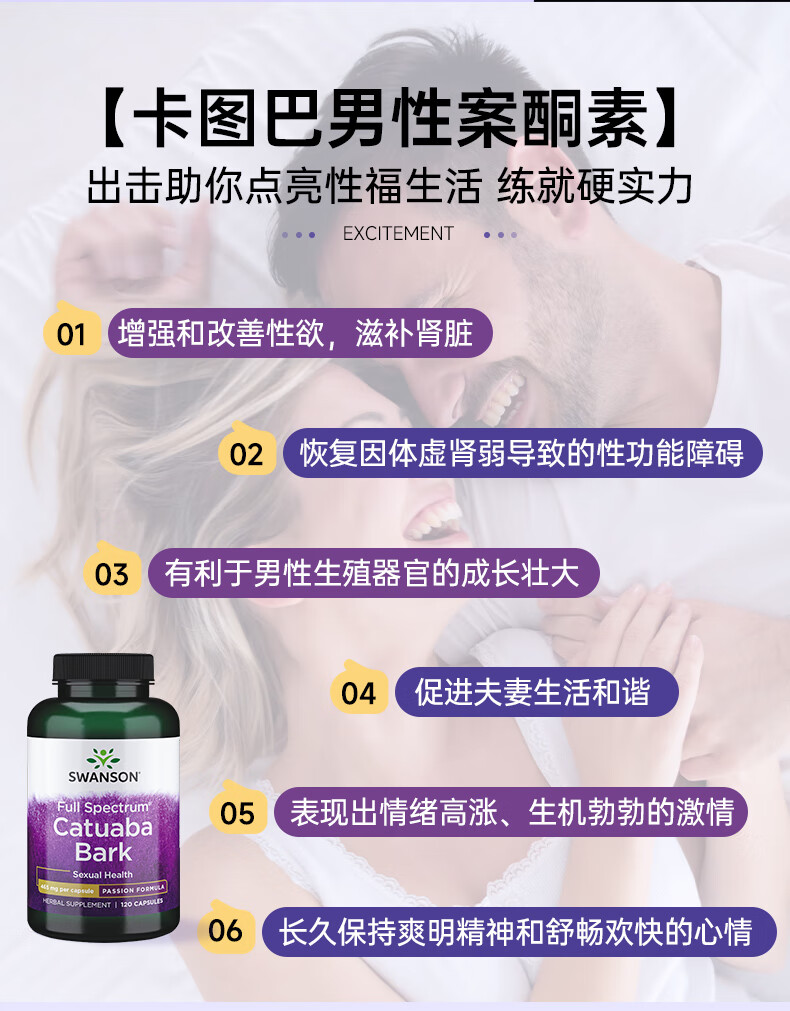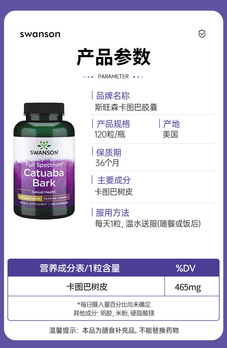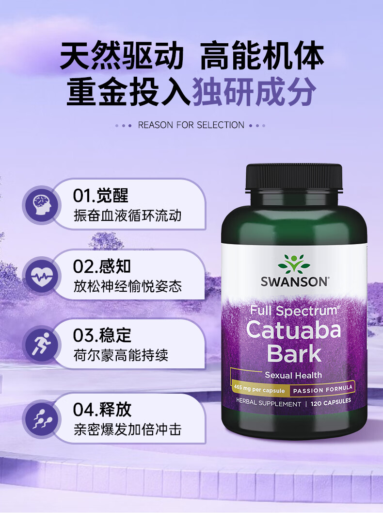 斯旺森(SWANSON)卡图巴树皮胶囊465mg*120粒 提升男荷尔蒙改善性欲提勃起缓解疲劳