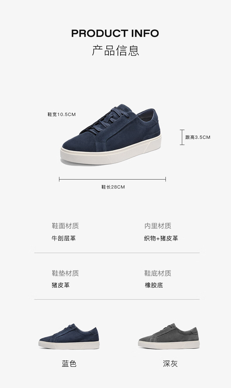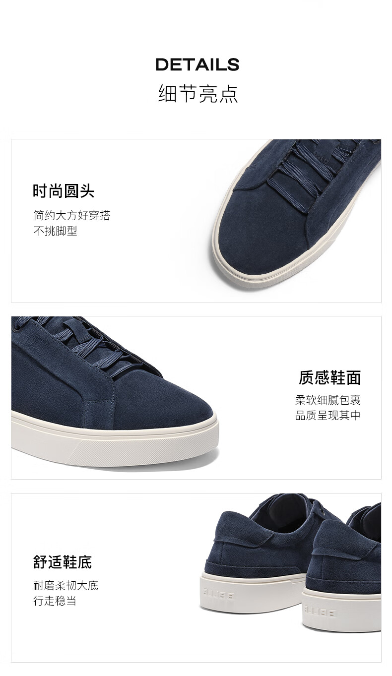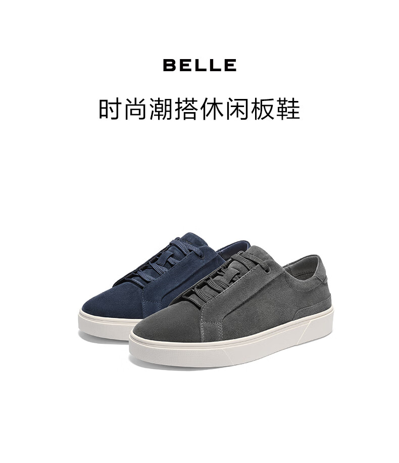 百丽(Belle)简约舒适休闲鞋男鞋2025秋季新时尚潮流低帮板鞋A2054CM5 蓝色 41 (255mm)