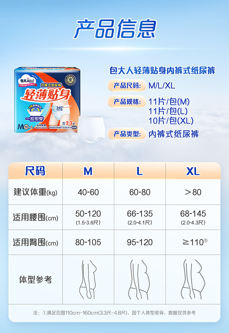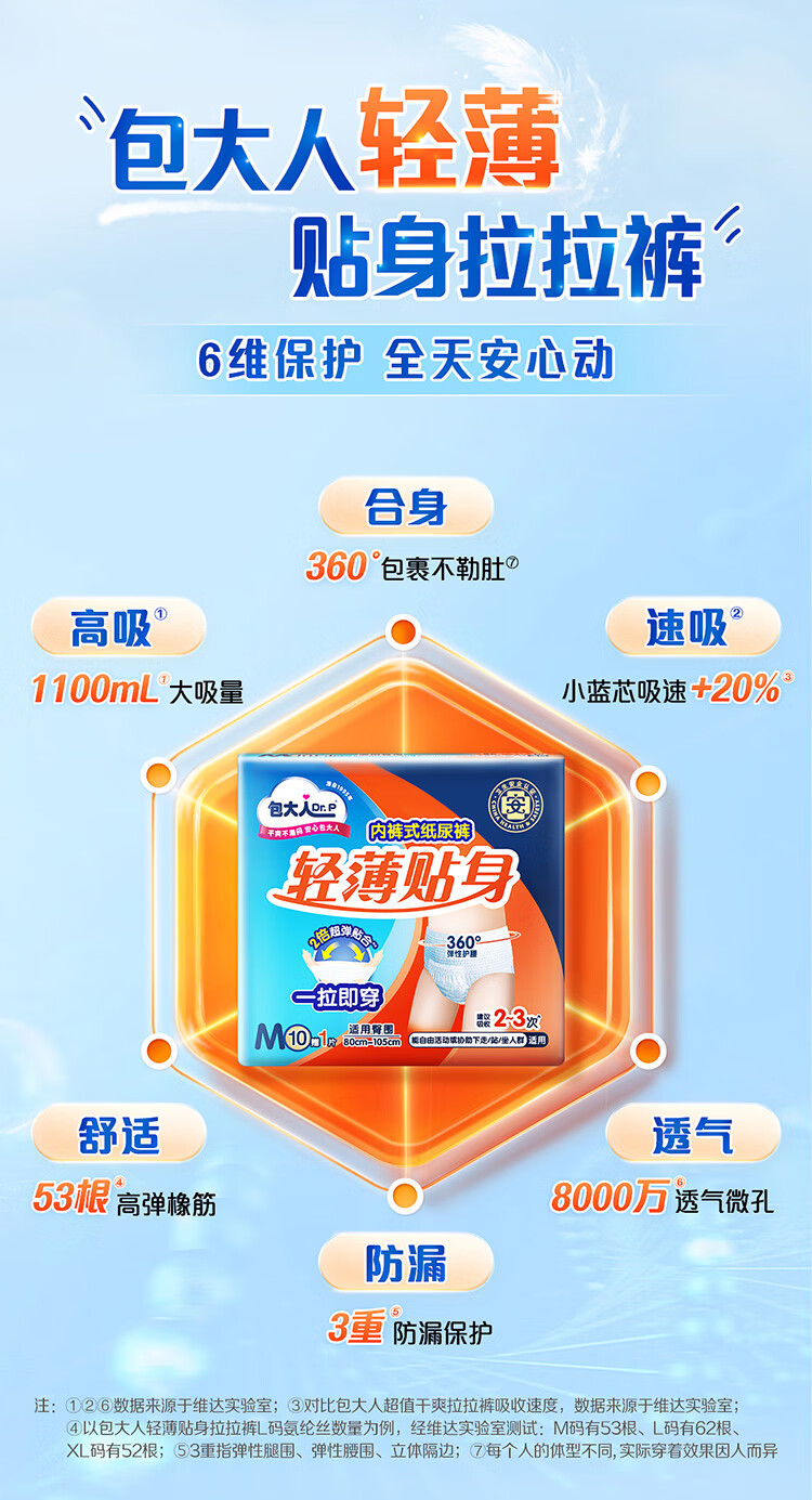 包大人(Dr.P)轻薄成人拉拉裤M66片(腰围:50-120cm)老年人产妇 内裤型纸尿裤