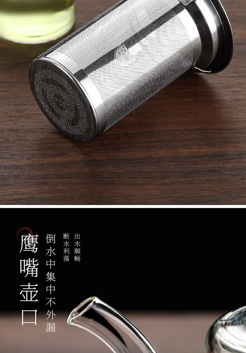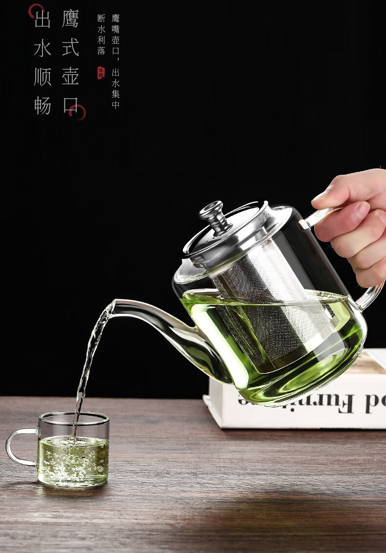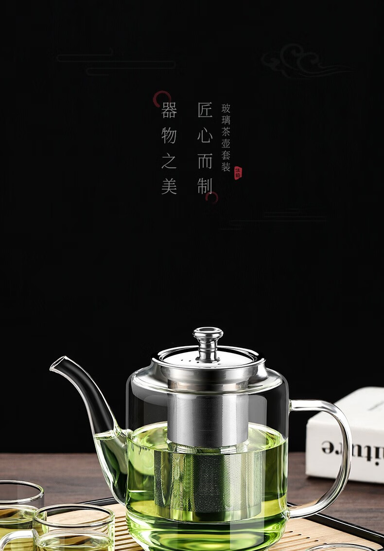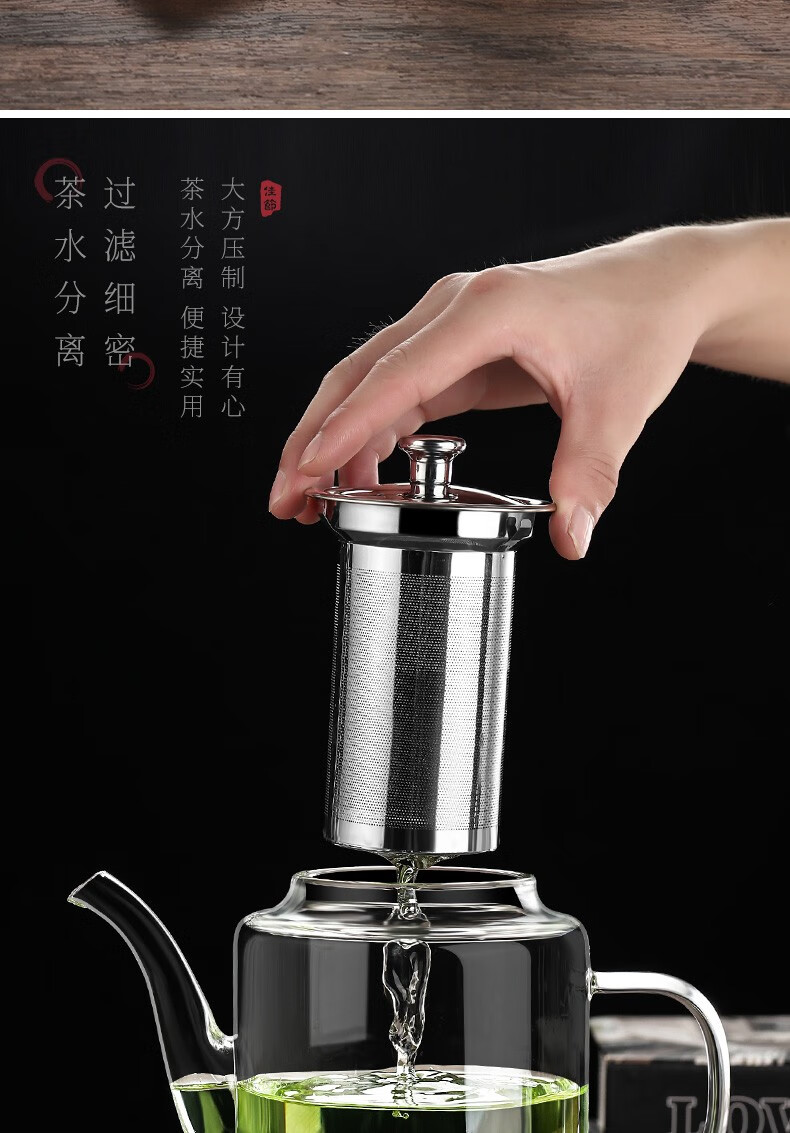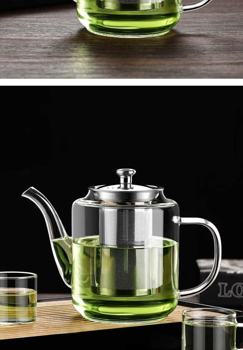 禾艾苏(heisou)高硼硅耐热玻璃茶壶大容量茶水分离煮茶壶茶具套装加厚家用泡茶壶 茶壶650ml