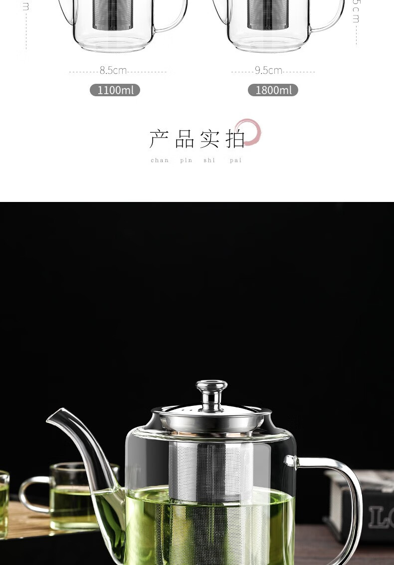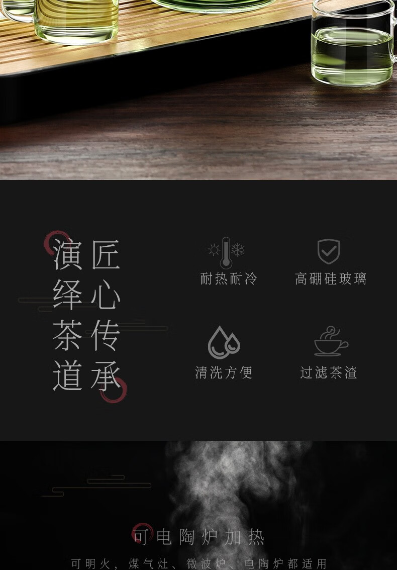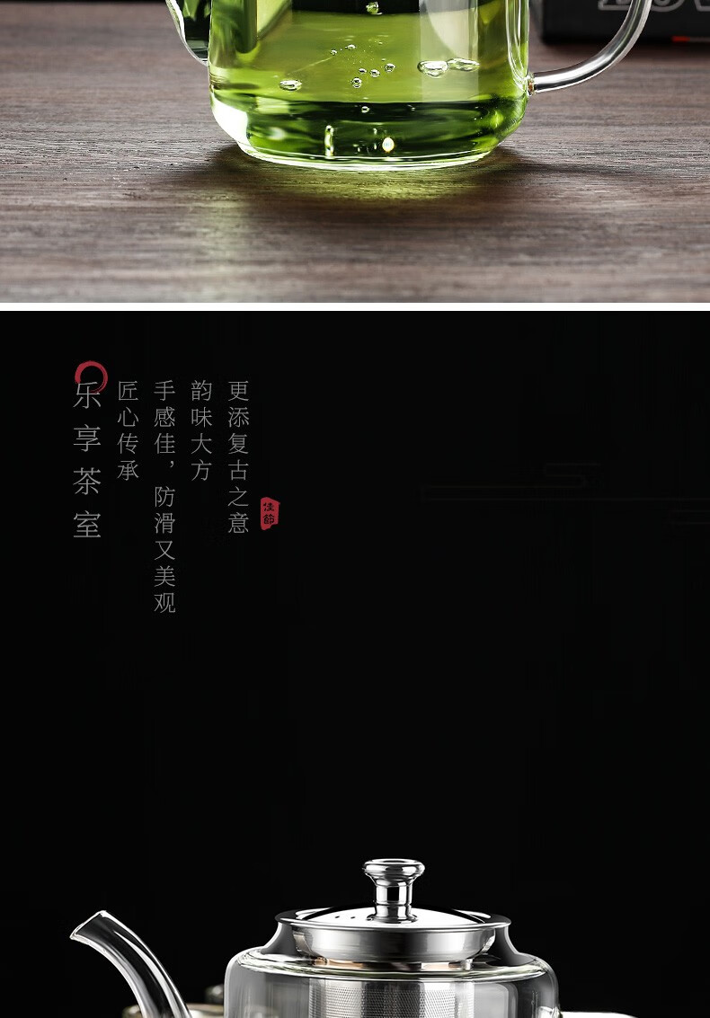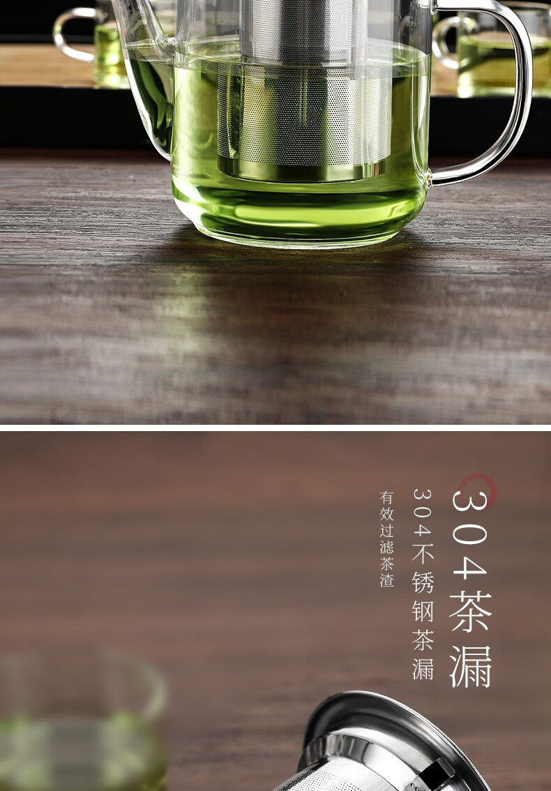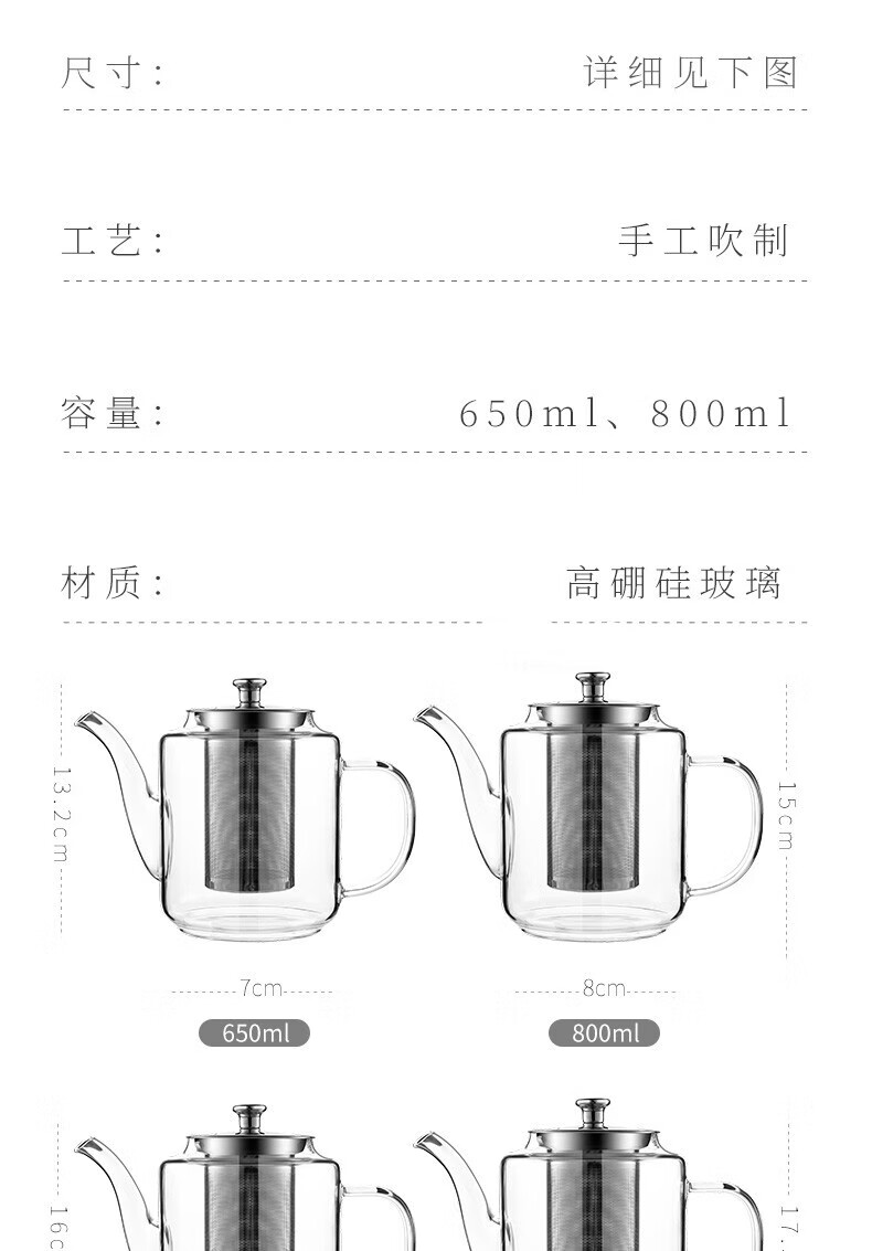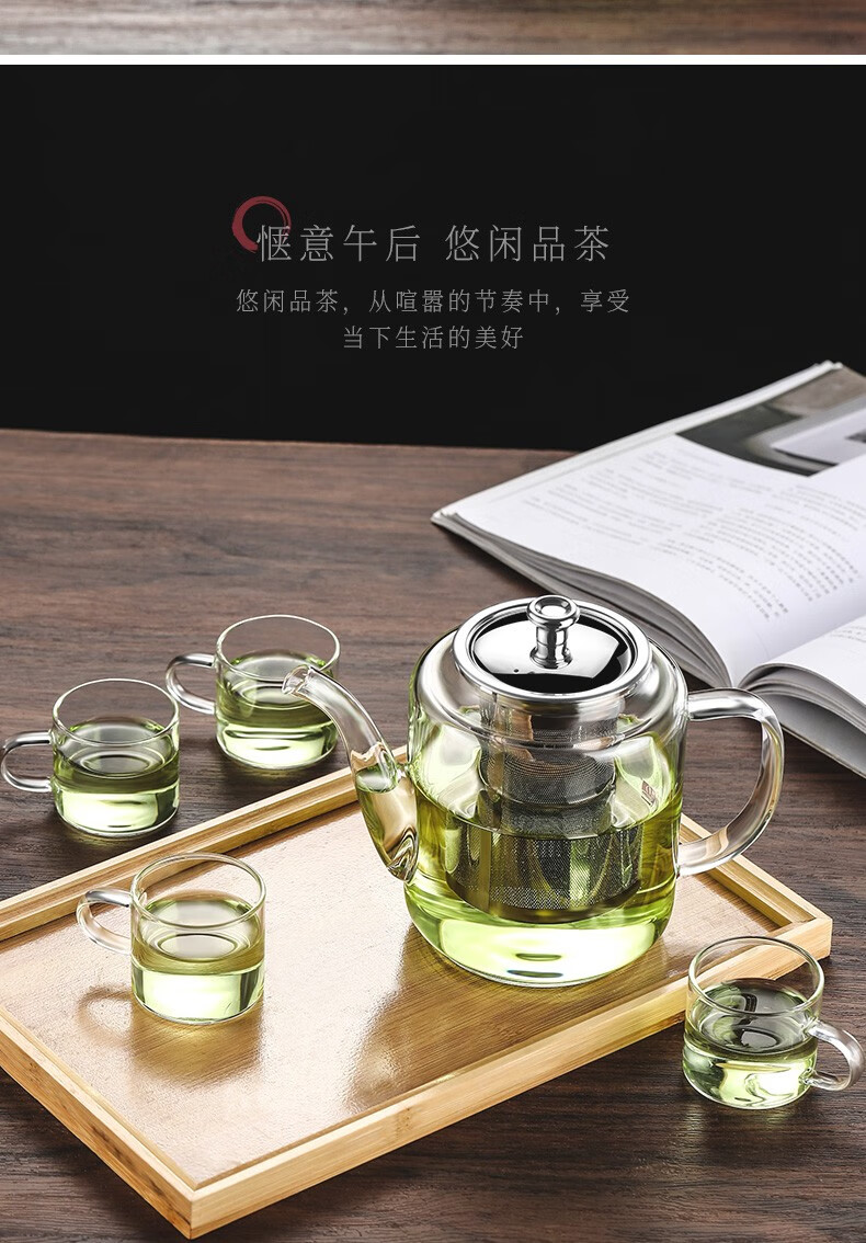 禾艾苏(heisou)高硼硅耐热玻璃茶壶大容量茶水分离煮茶壶茶具套装加厚家用泡茶壶 茶壶650ml