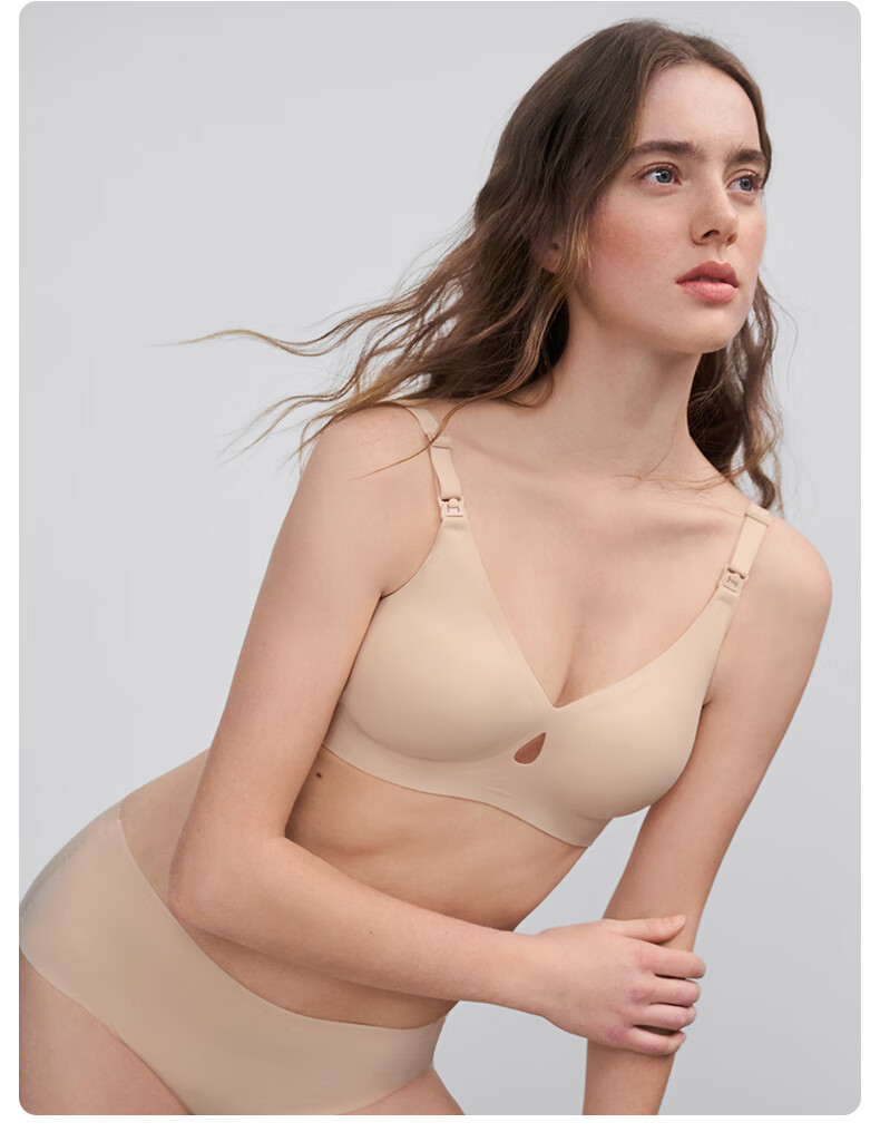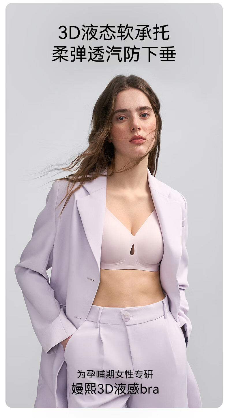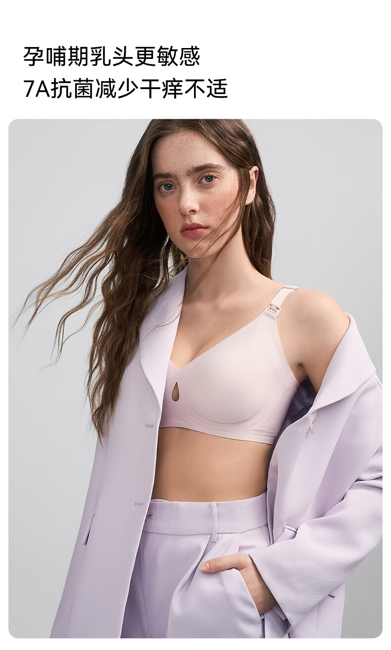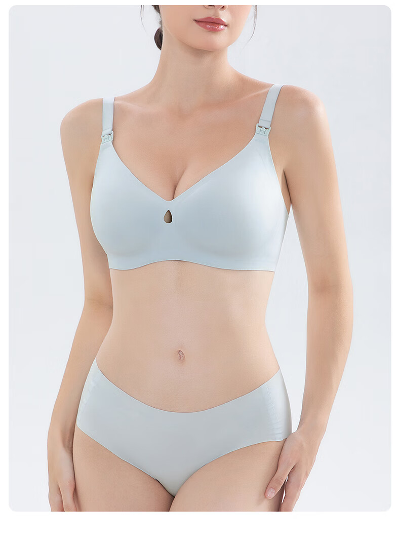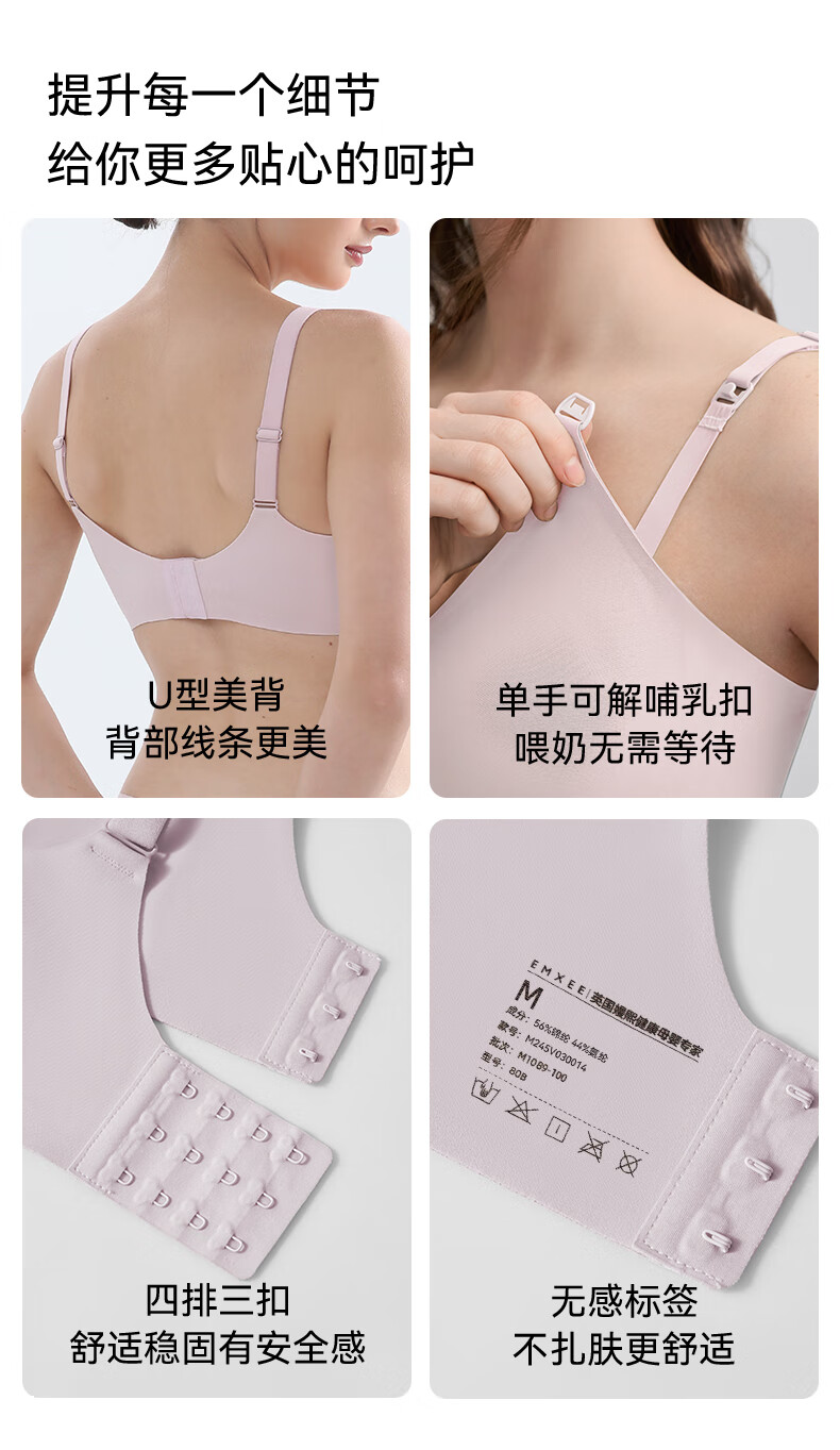 嫚熙(EMXEE)孕妇产后哺乳文胸 深V水滴喂奶哺乳内衣防下垂 月见兰 L