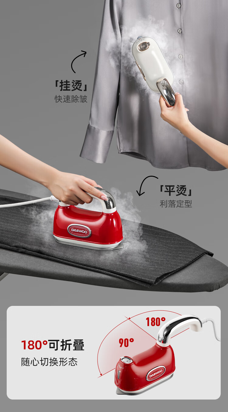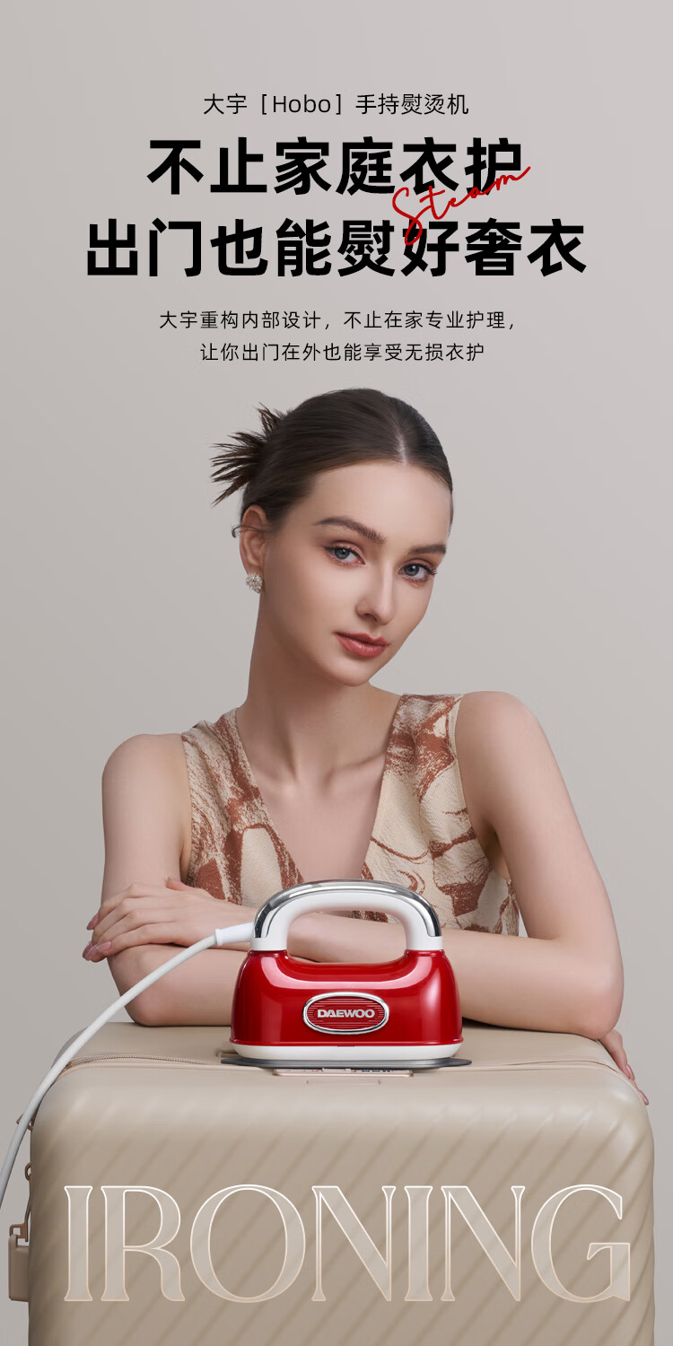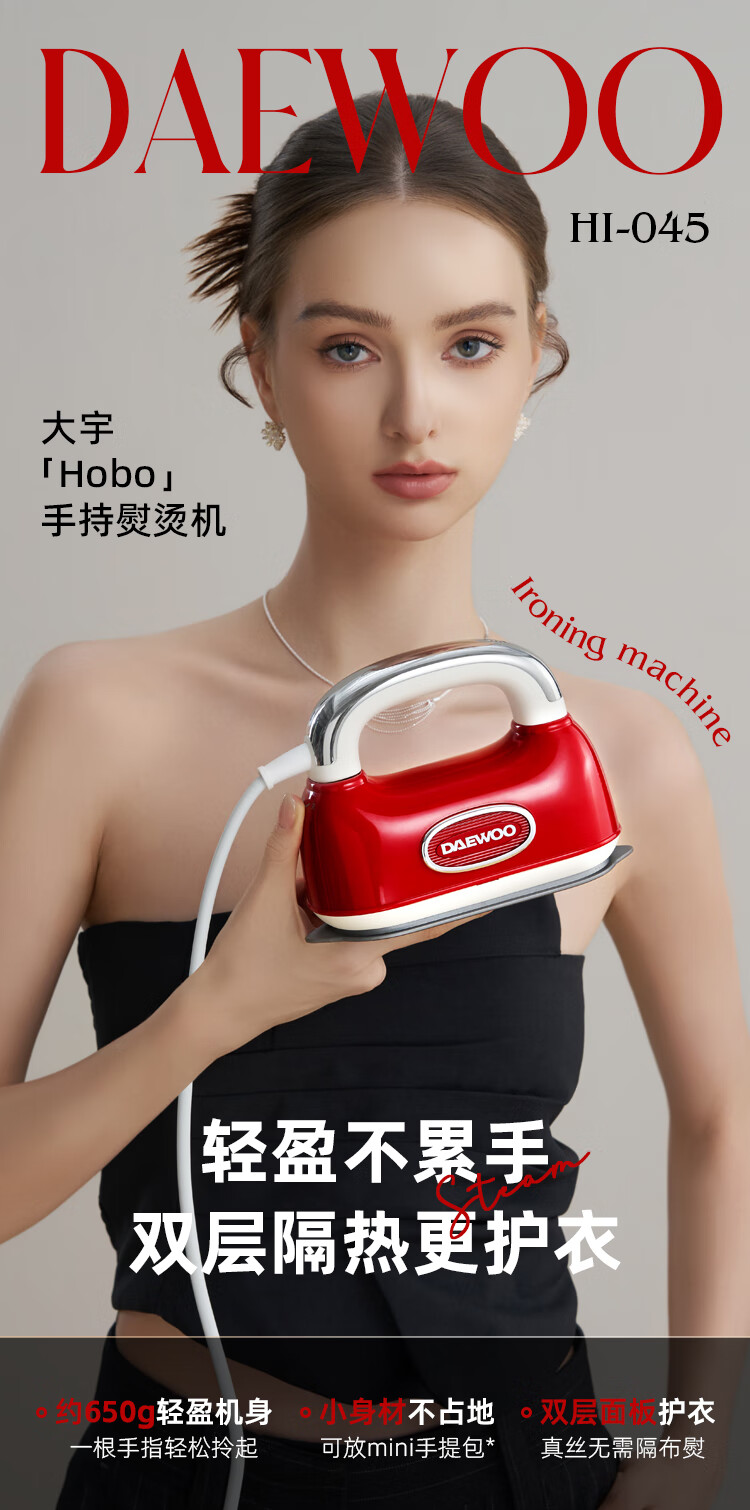 大宇(DAEWOO)【25年新款】Hobo手持挂烫机家用熨烫机便携式蒸汽电熨斗 双核增压小型差旅熨烫衣服神器HI-045红