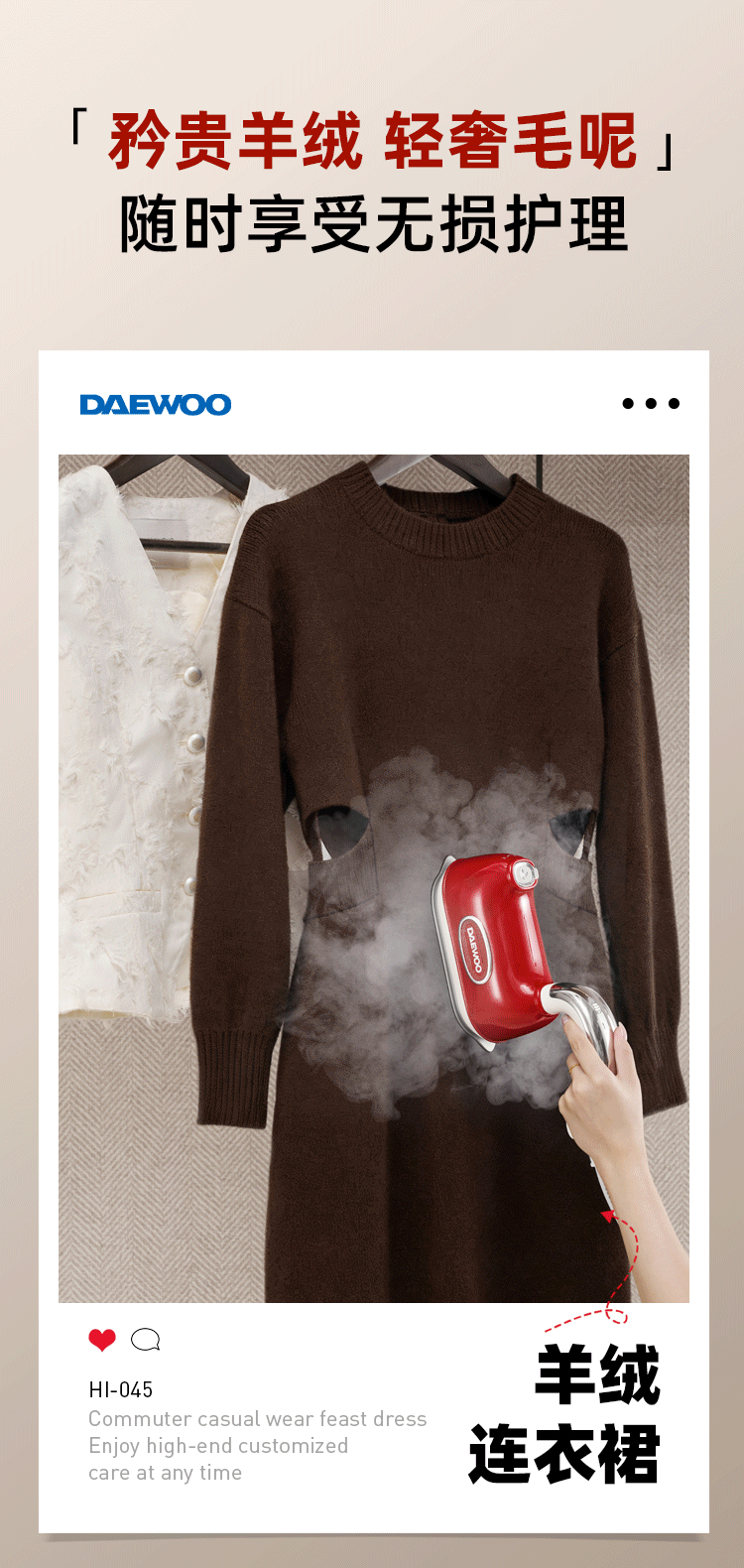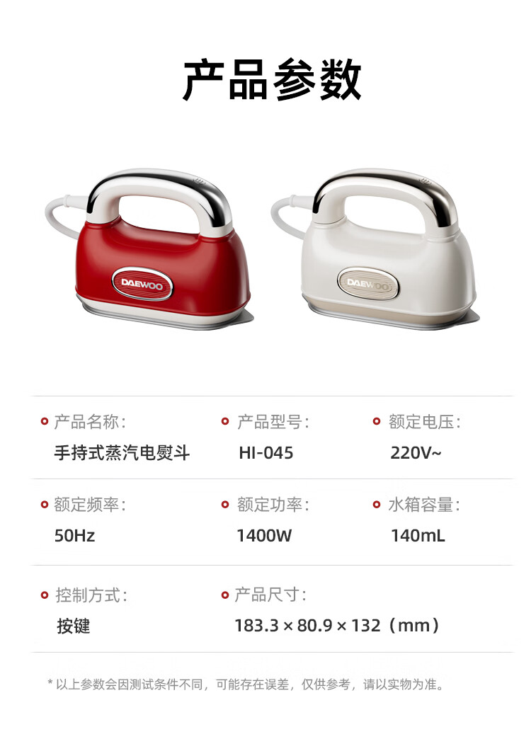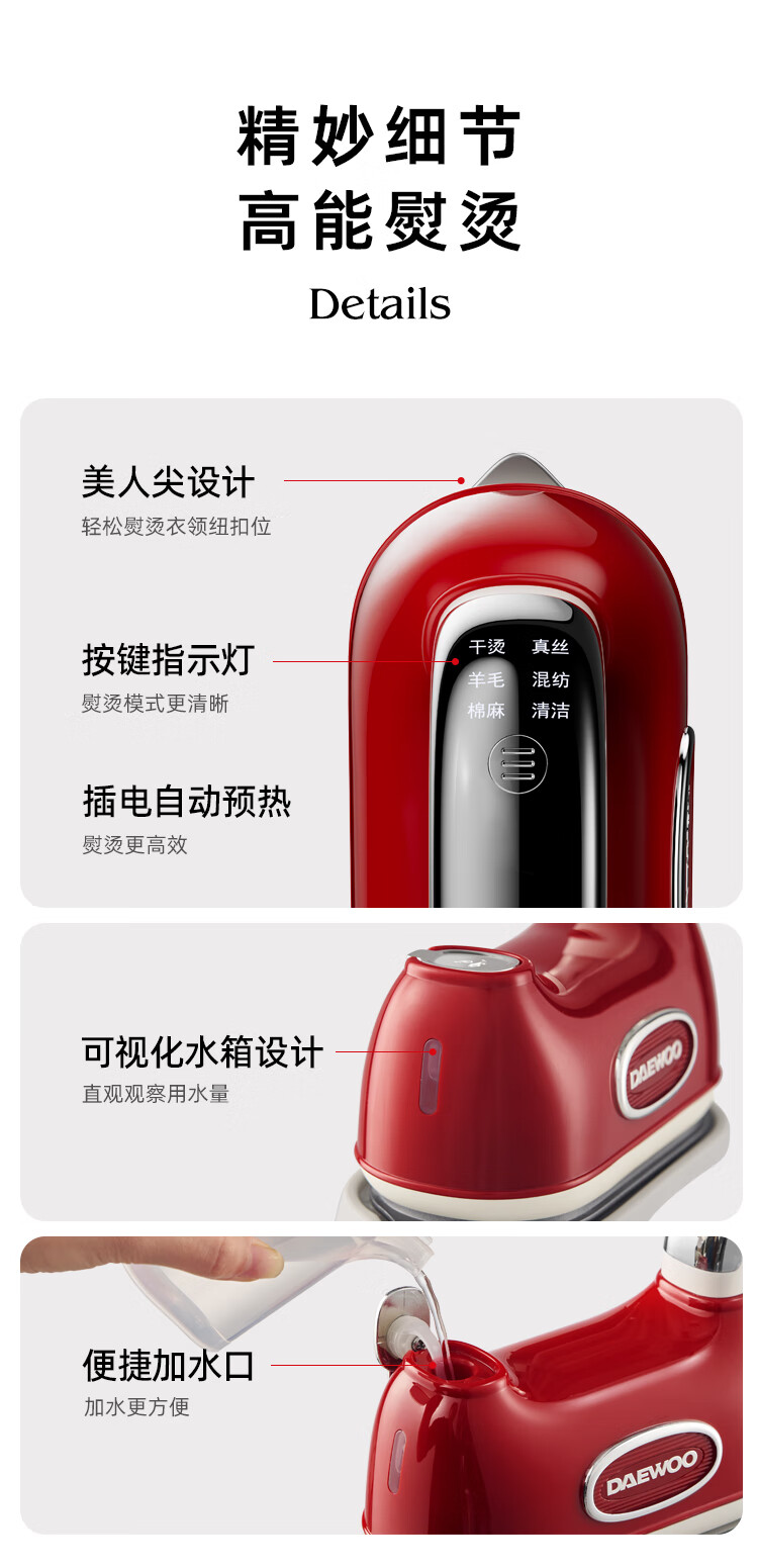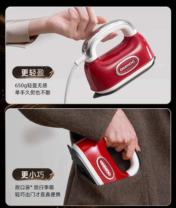 大宇(DAEWOO)【25年新款】Hobo手持挂烫机家用熨烫机便携式蒸汽电熨斗 双核增压小型差旅熨烫衣服神器HI-045红