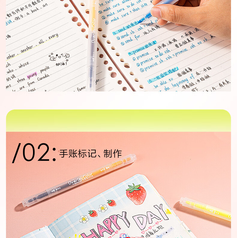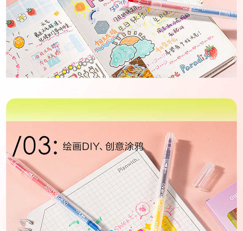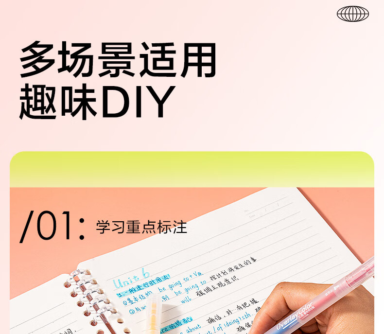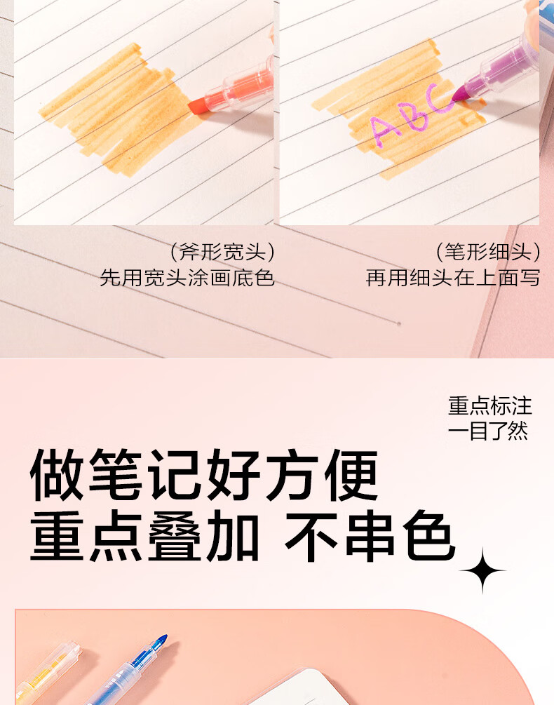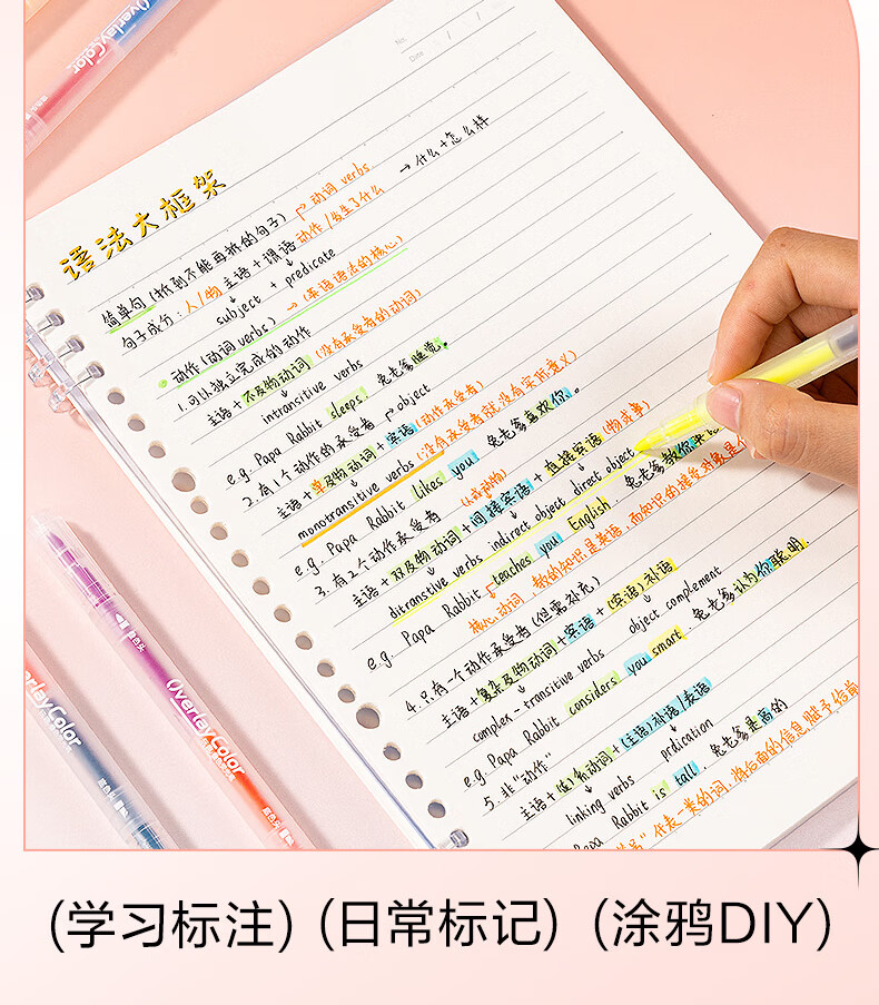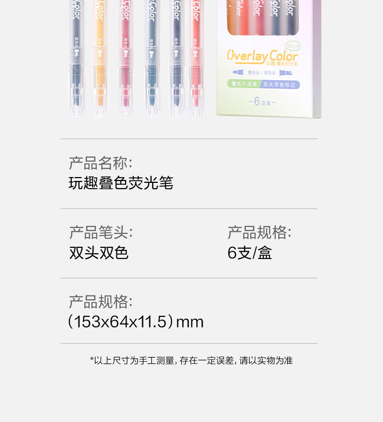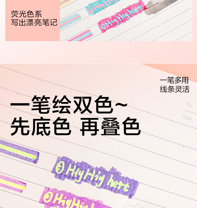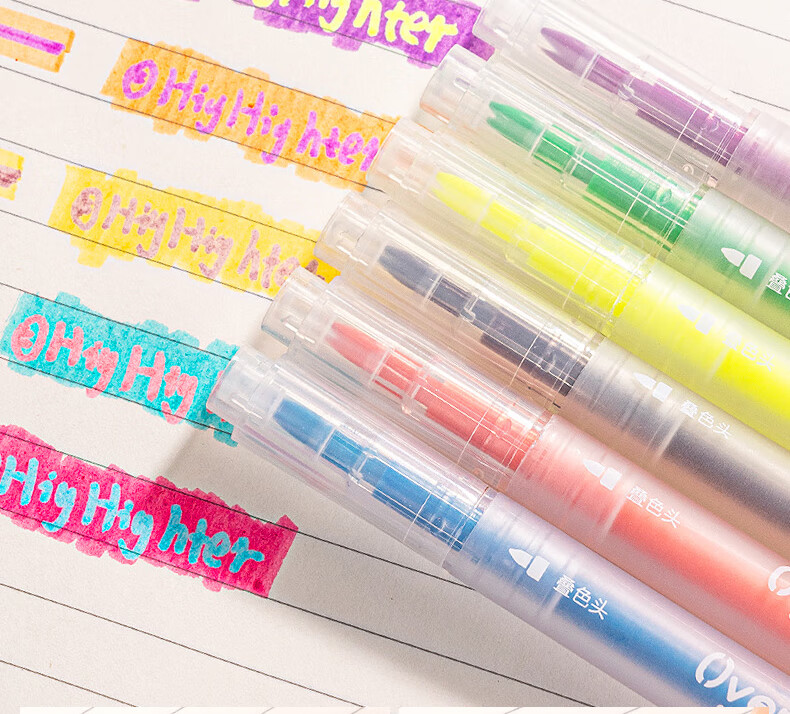 得力叠色荧光笔划重点笔不晕染彩色记号笔标记笔高颜值手抄报专用笔银光笔彩笔做笔记手帐工具背书神器 【多巴胺】6支12色