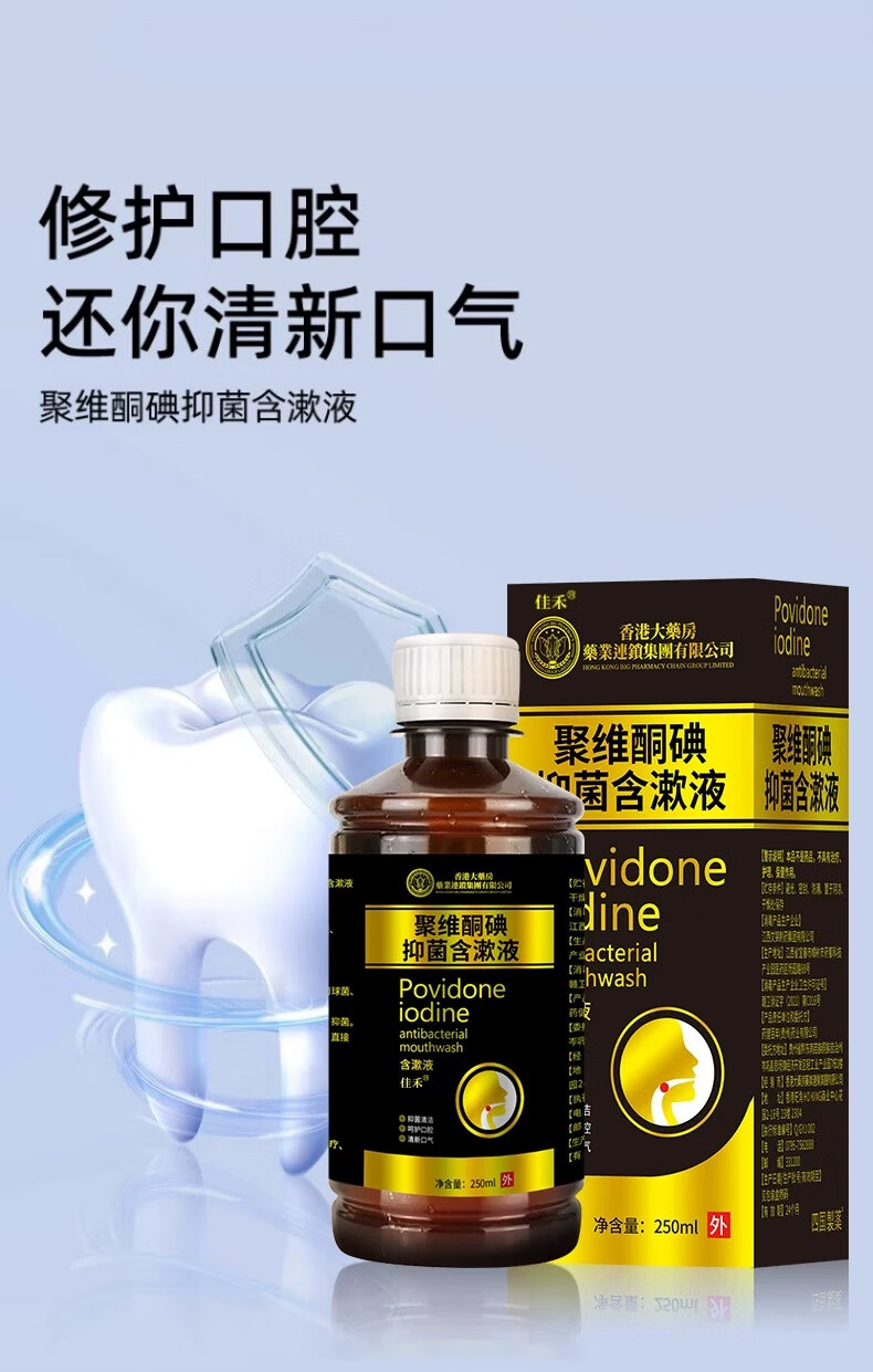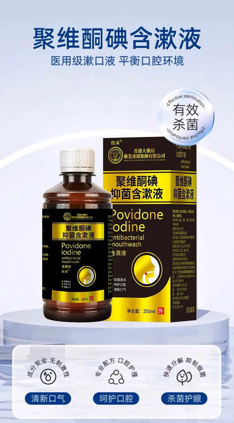 香港大药房碘伏漱口水国药健康聚维1酮碘抑菌含漱液准消字杀菌去异味口臭气 国药健康抑菌漱口水【1瓶体验装250ml】