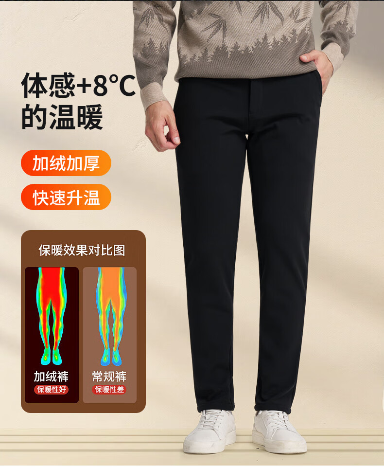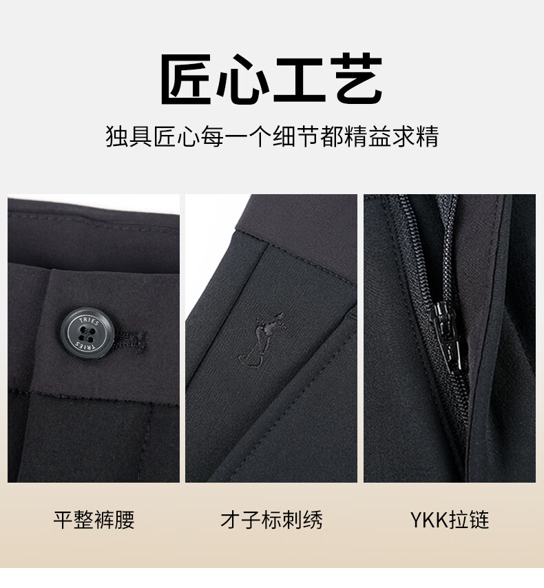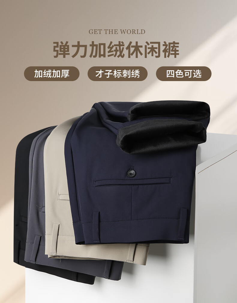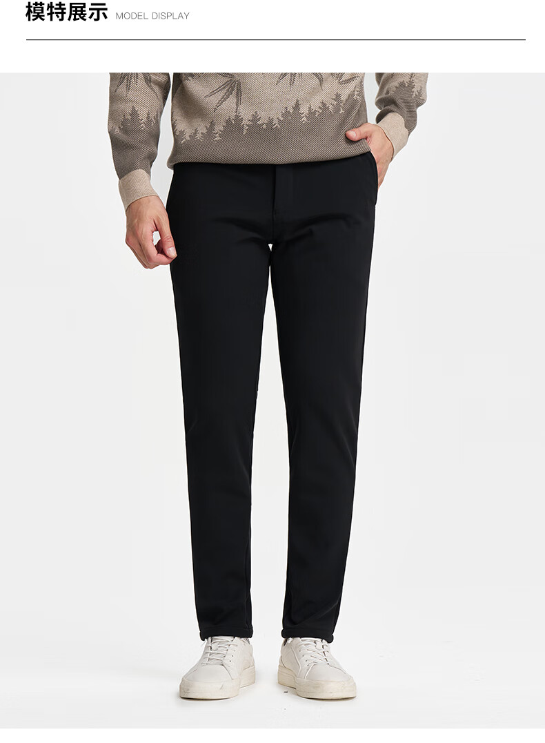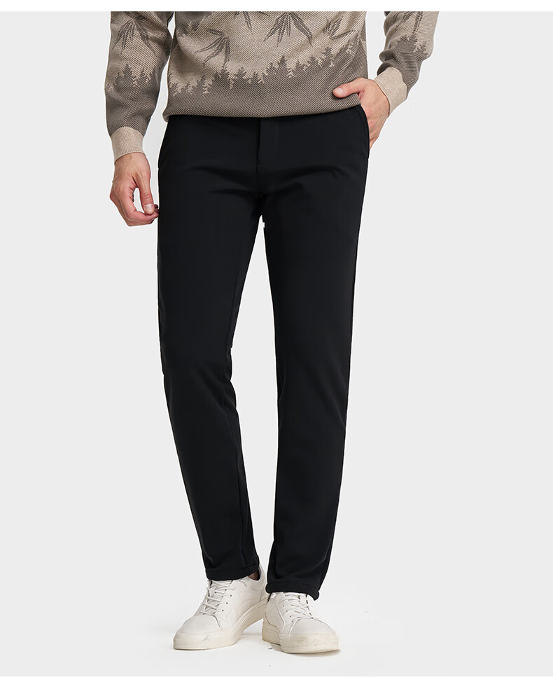 才子(TRIES)才子男士休闲裤商务简约直筒长裤春秋新款弹力加绒休闲裤 黑色 36 92cm