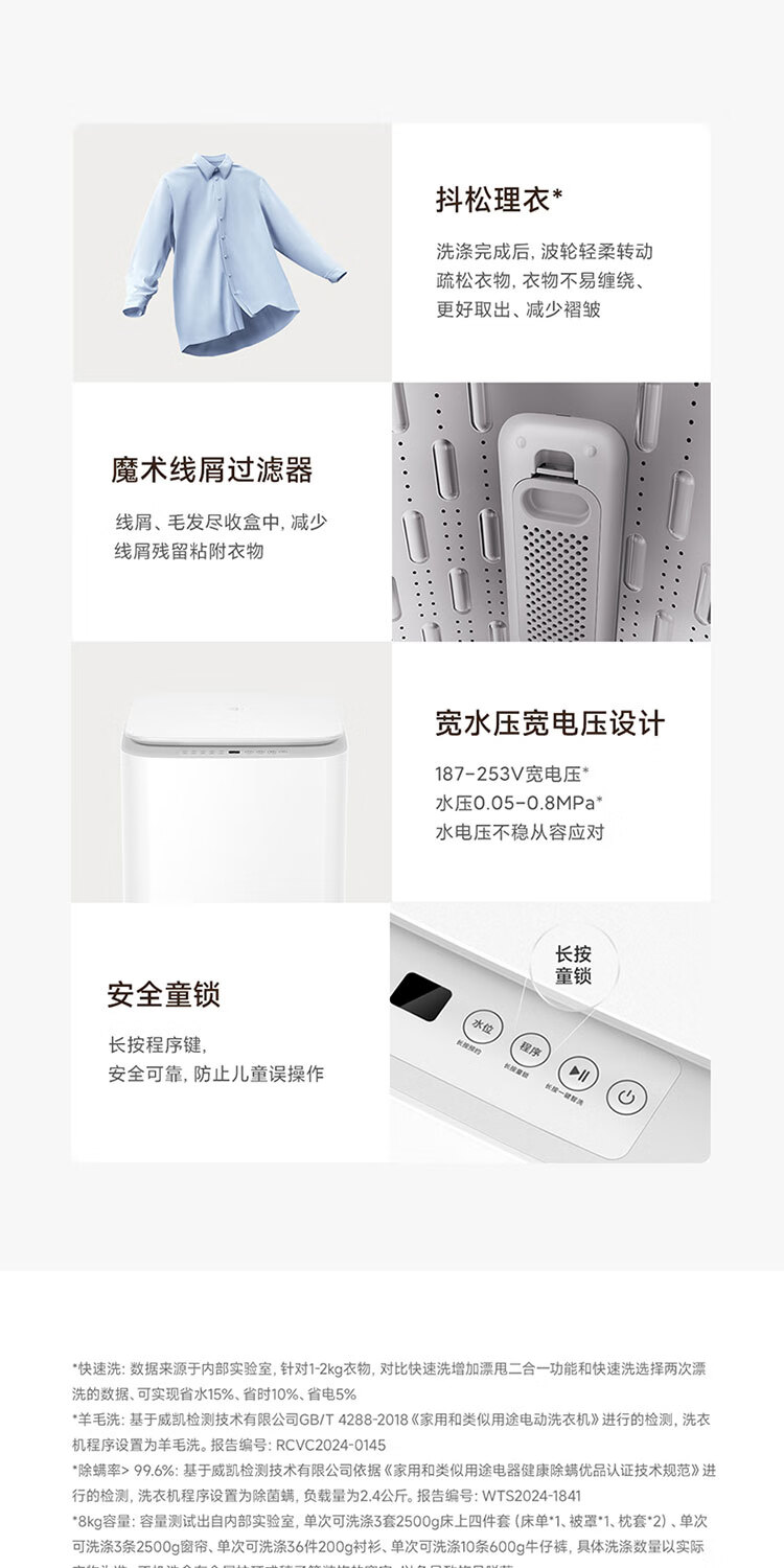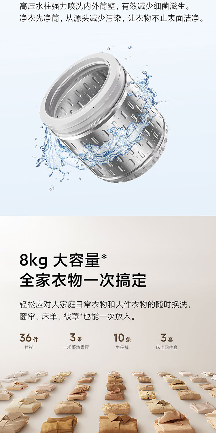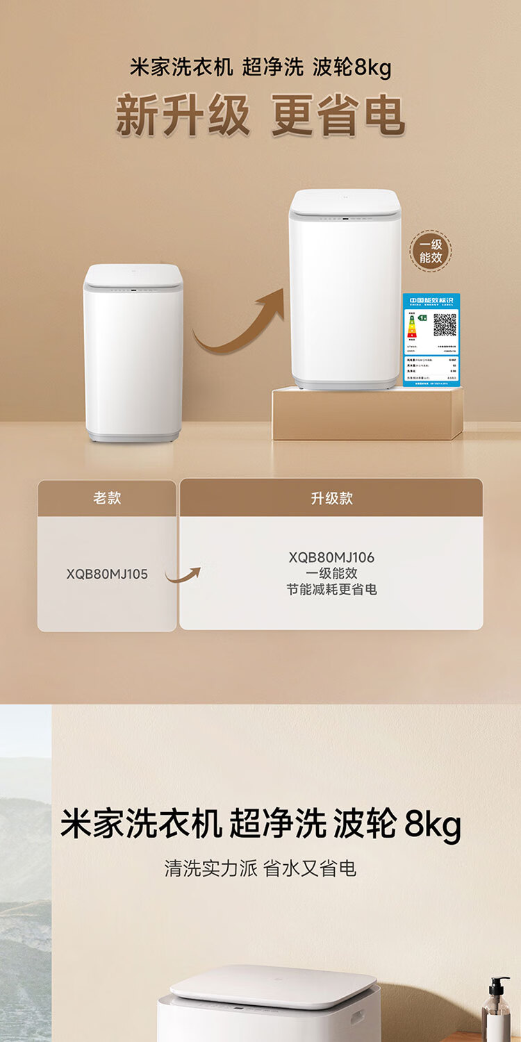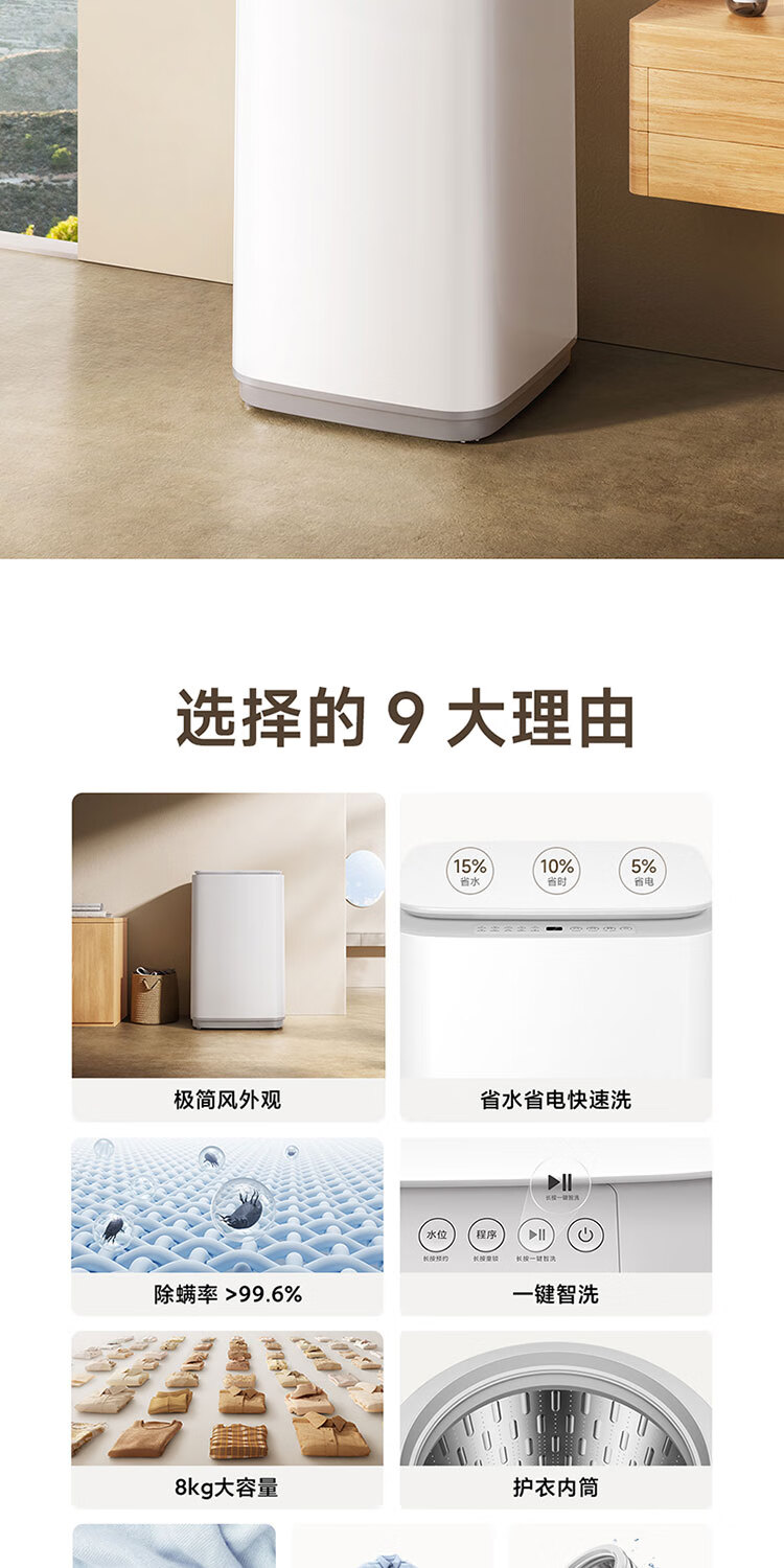 小米【新品上市】米家洗衣机超净洗8kg波轮洗衣机 一级能效节能省水省电 家用租房神器宿舍 洗脱一体