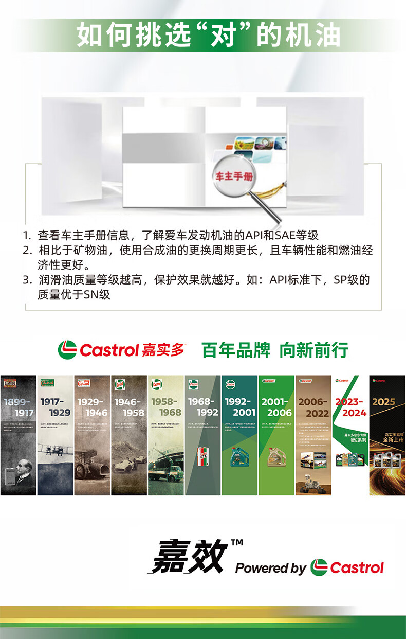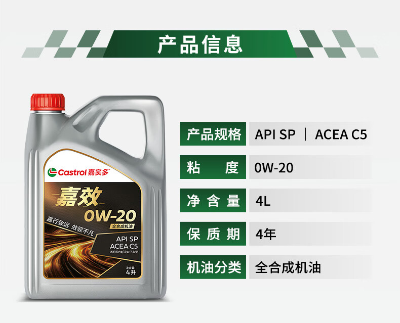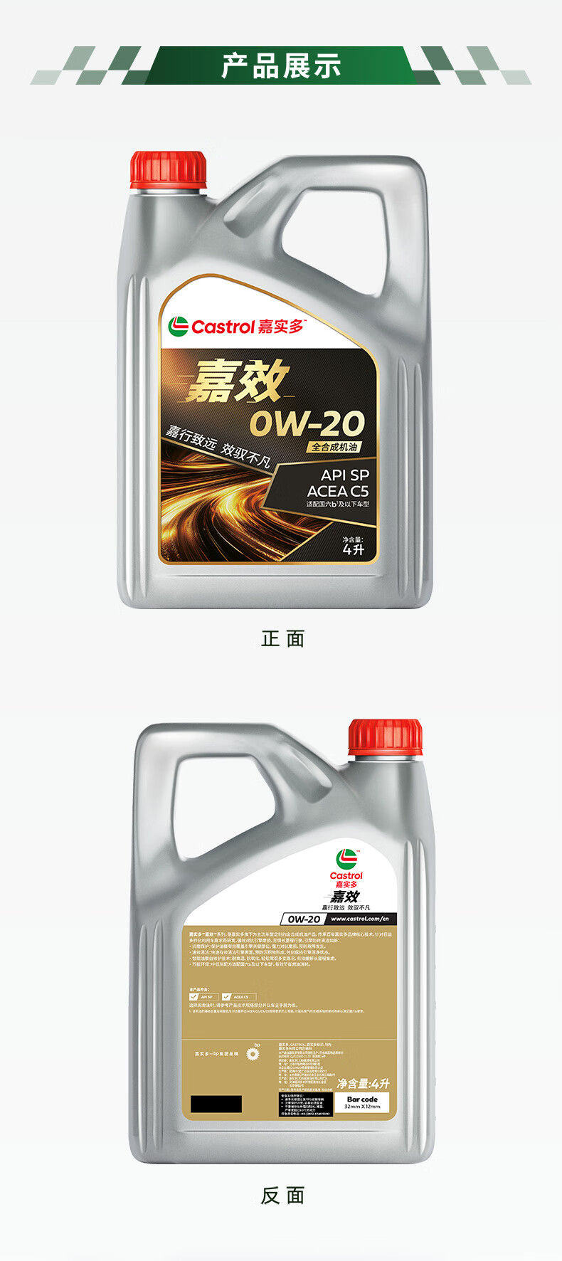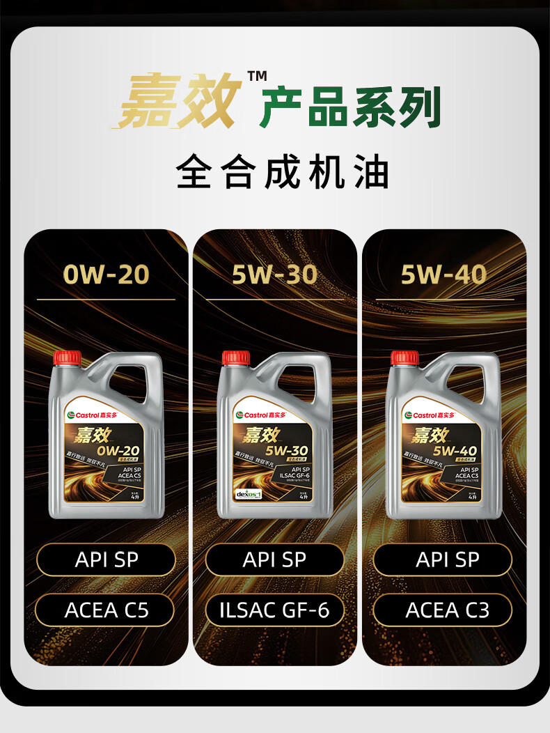 嘉实多(Castrol)嘉效 全合成机油 润滑油 0W-20 SP/C5 4L 汽车保养