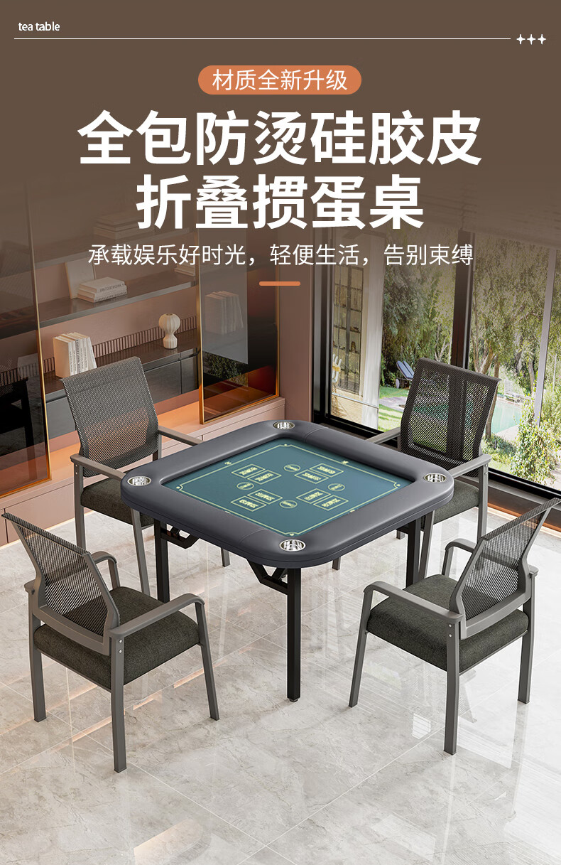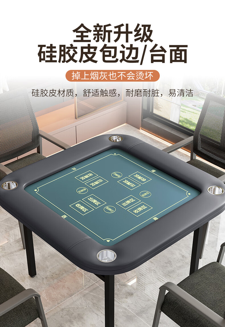 铭汇通掼蛋专用桌折叠四方牌桌打牌方桌扑克发牌桌子棋牌比赛桌椅高端 单桌【防烫硅胶生态皮边框/台面】 100*78cm