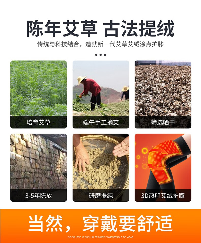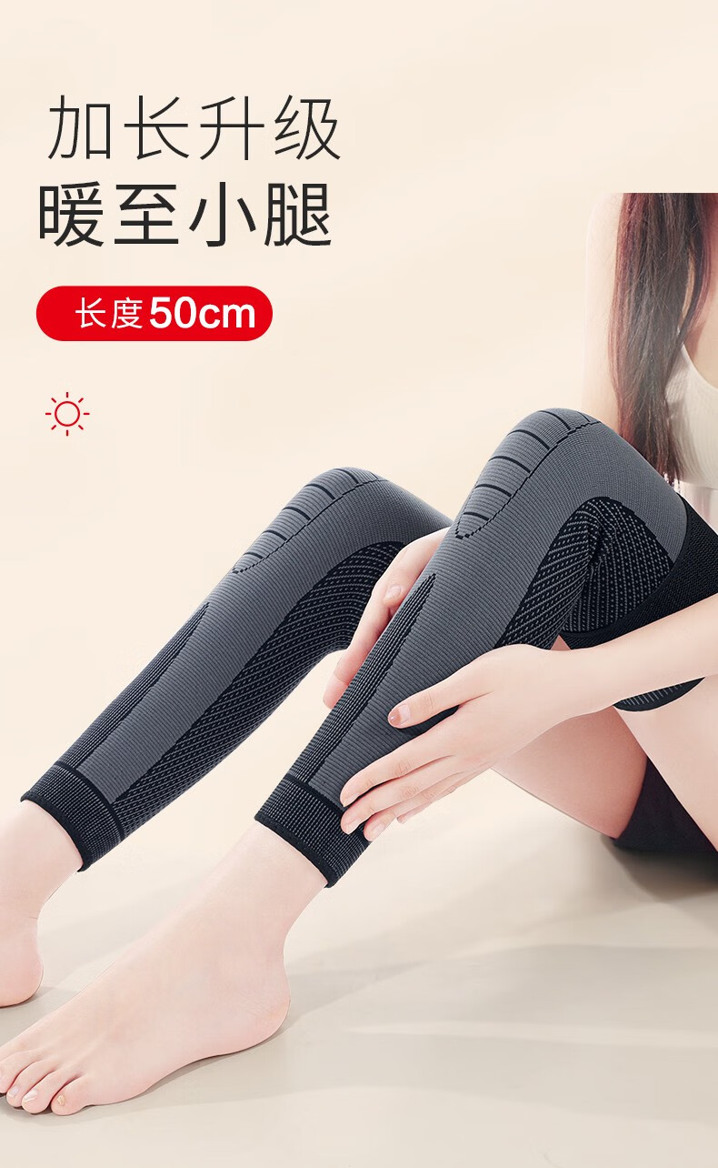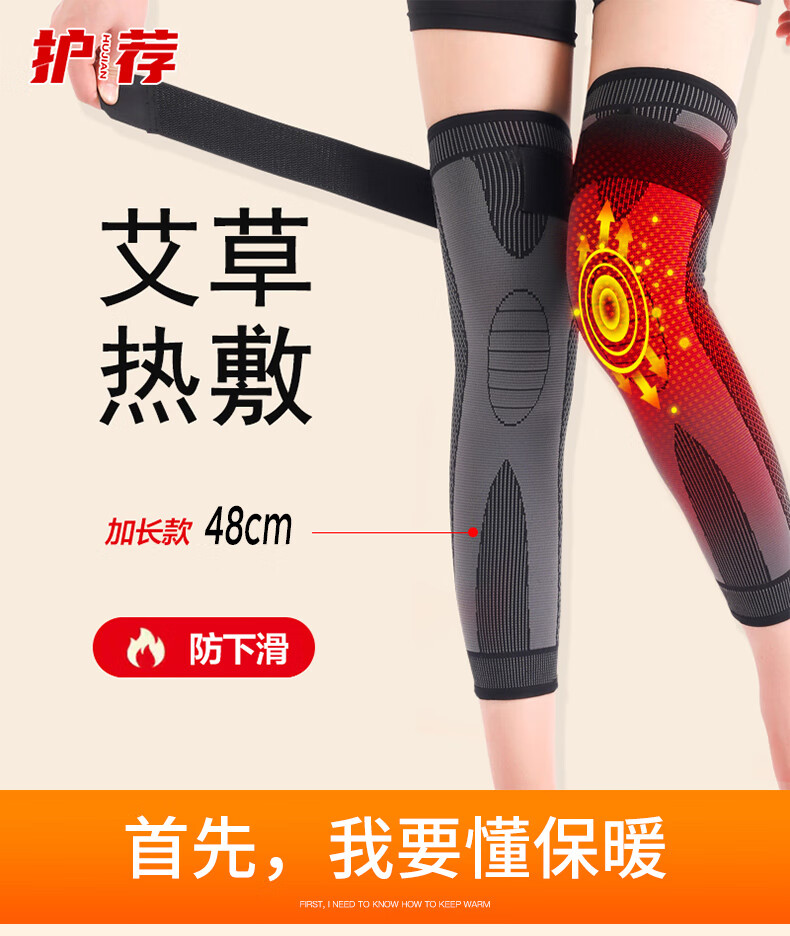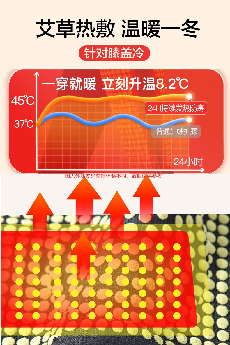 护荐绑带加长护膝 保暖艾草发热 加绒防滑中老年寒腿男女关节护漆炎 无绑带-艾草护膝 45cm 均码