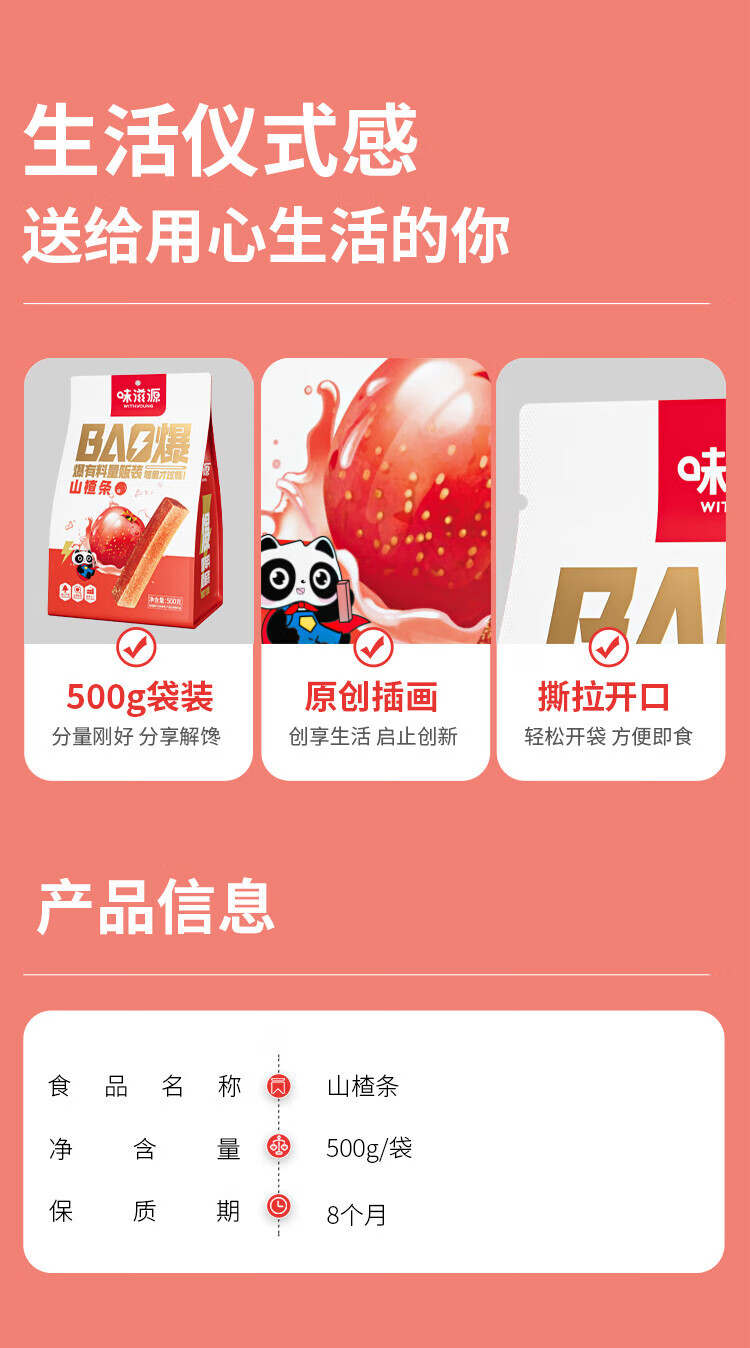 味滋源 山楂卷果丹皮蜜饯果干山楂片紫椹山楂条果脯儿时怀旧零食 山楂条500g