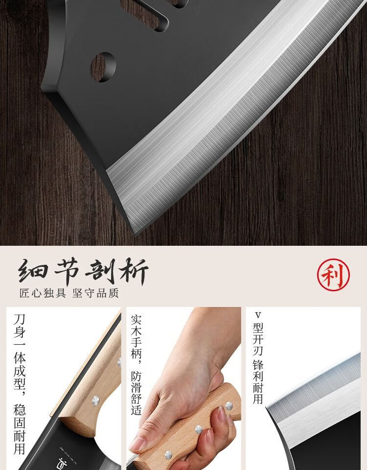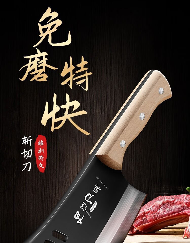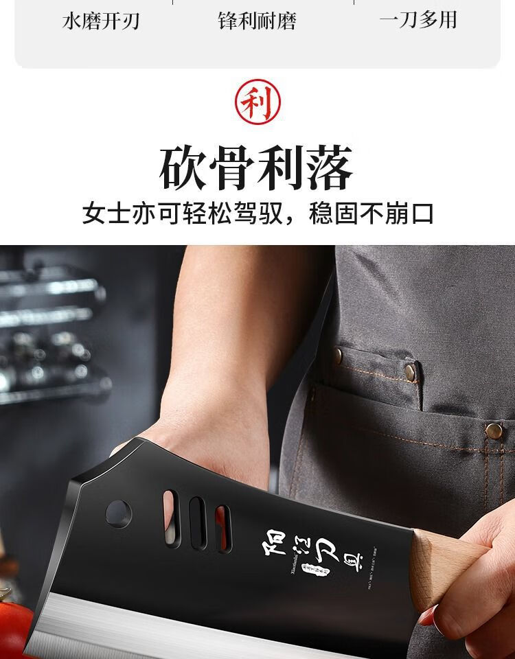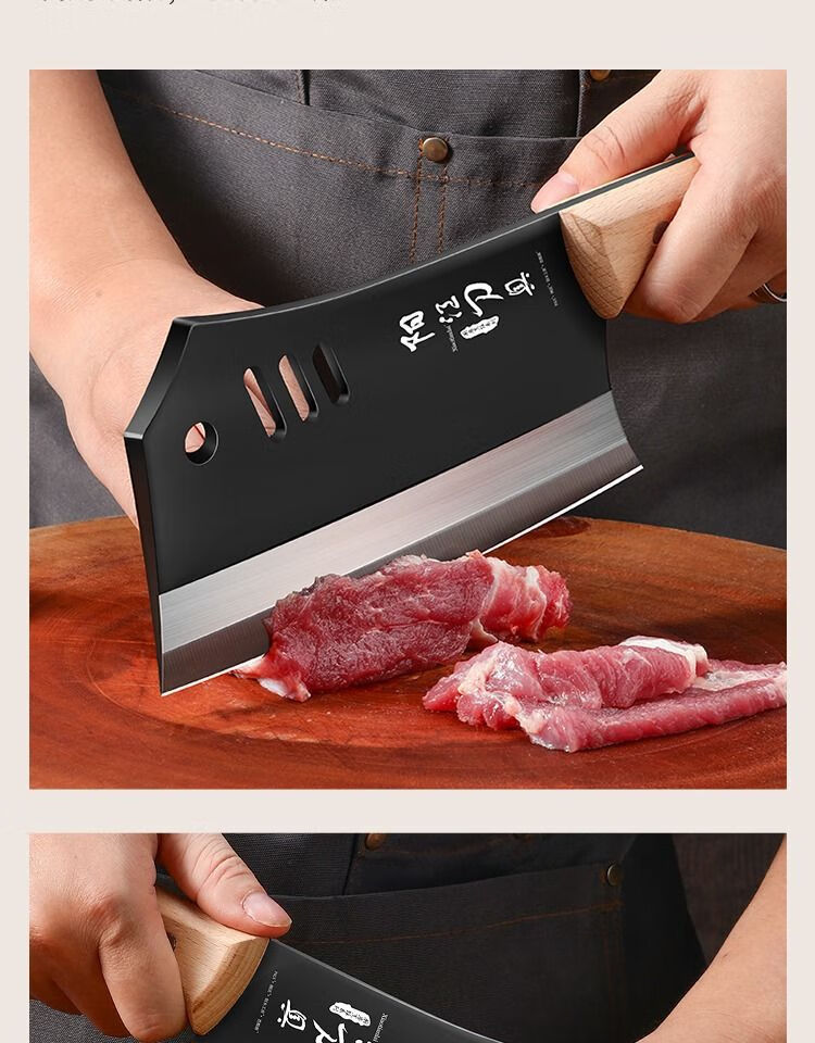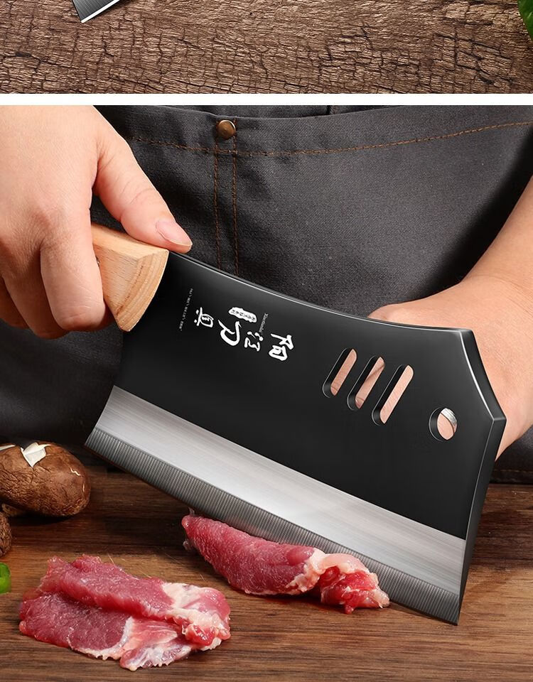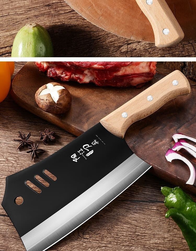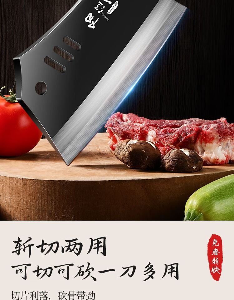 若拉淇菜刀家用厨房刀具切片切菜切肉刀砍斩骨头刀斩切两用刀锋利锻打刀 实木锻打砍切刀