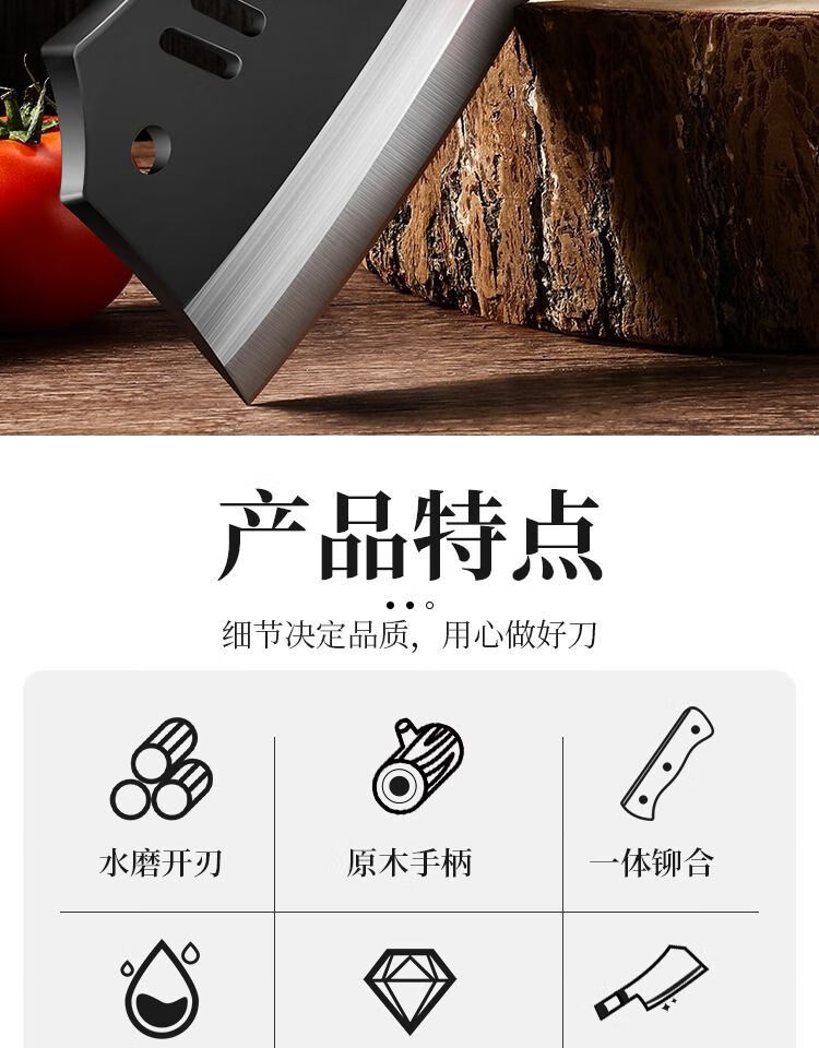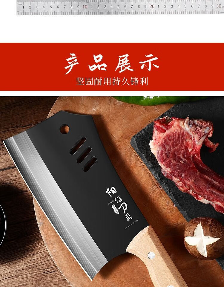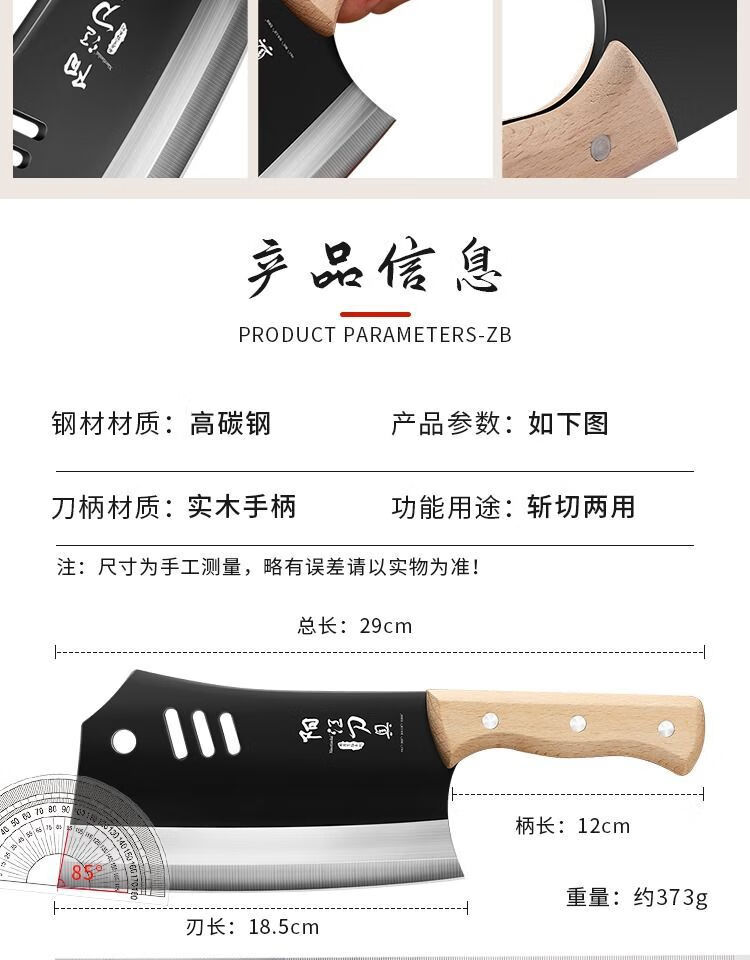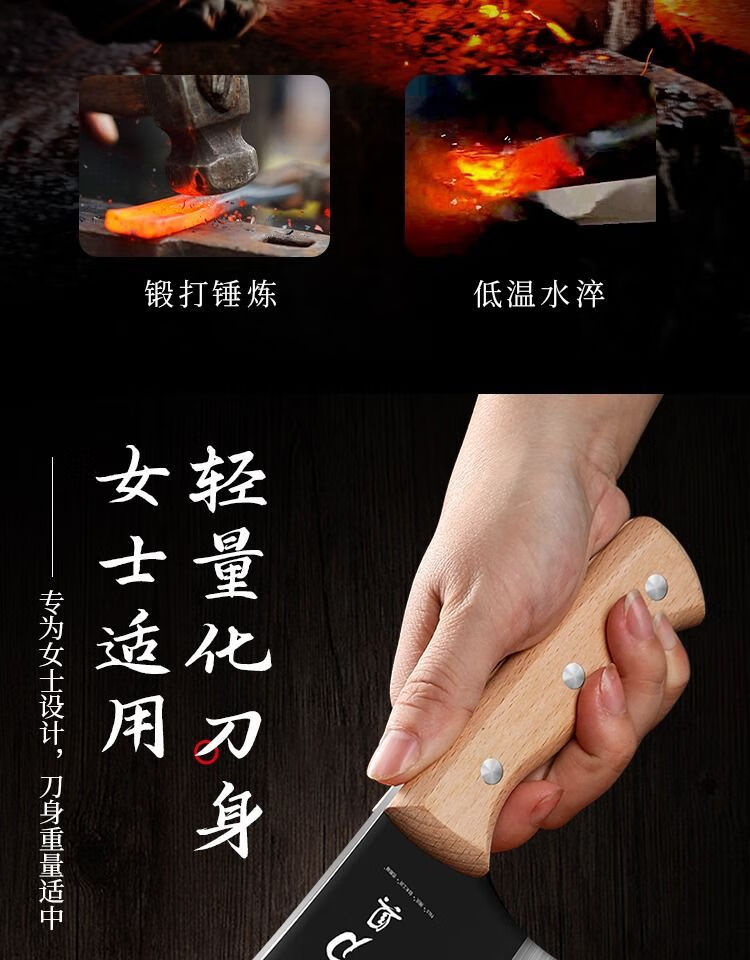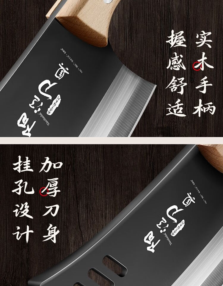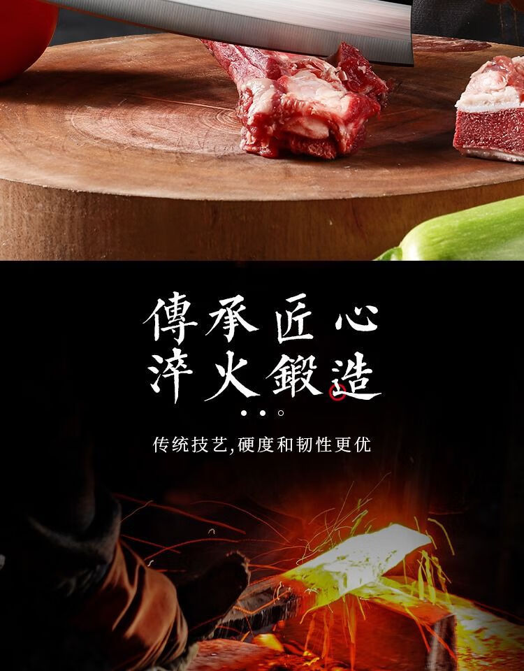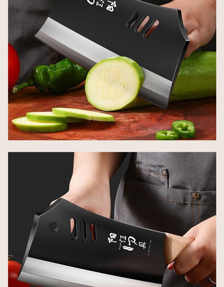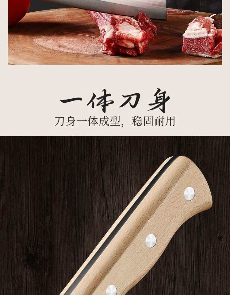 若拉淇菜刀家用厨房刀具切片切菜切肉刀砍斩骨头刀斩切两用刀锋利锻打刀 实木锻打砍切刀