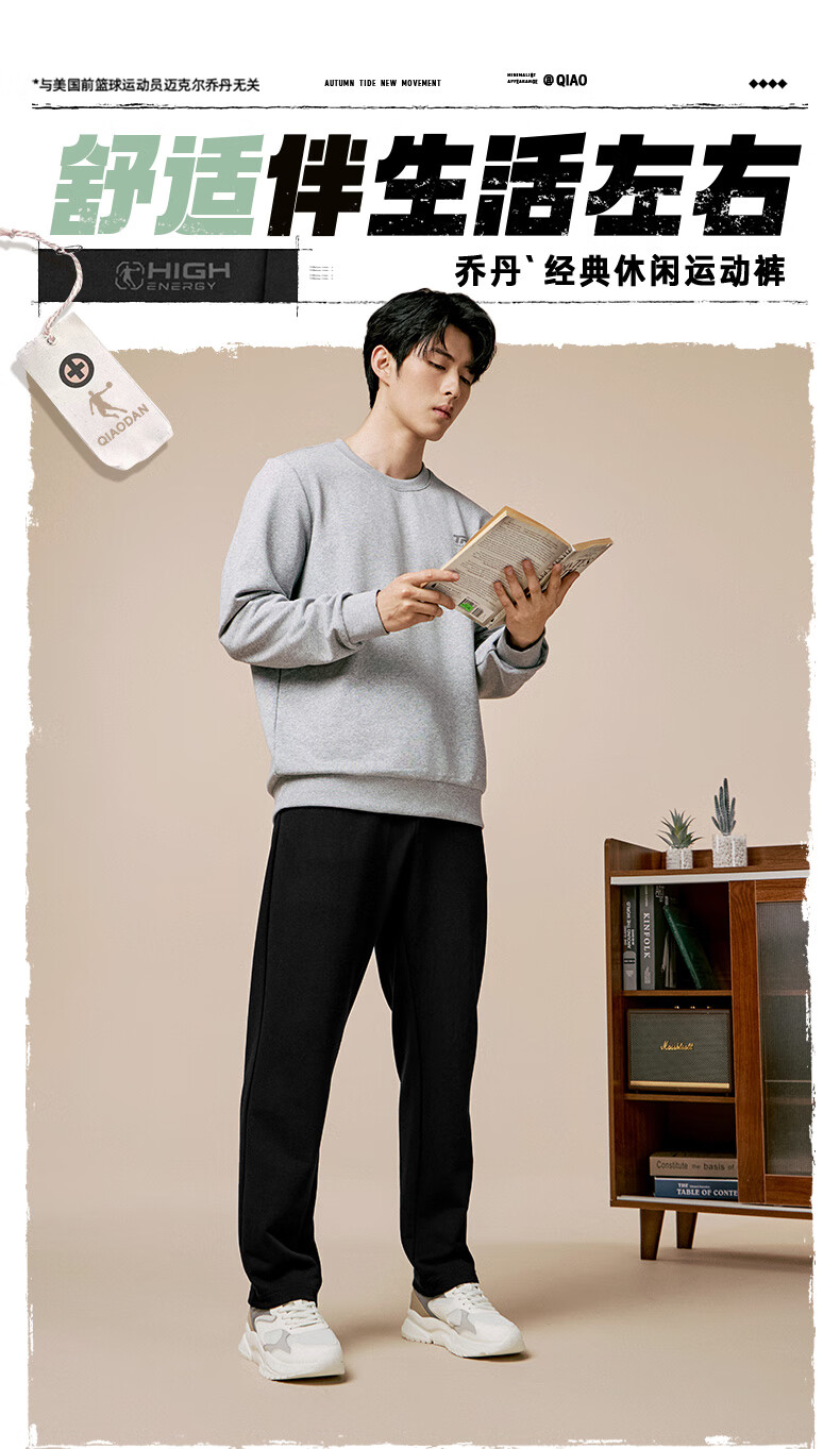 乔丹运动裤男士秋冬季卫裤直筒宽松裤子跑步针织长裤休闲裤子男