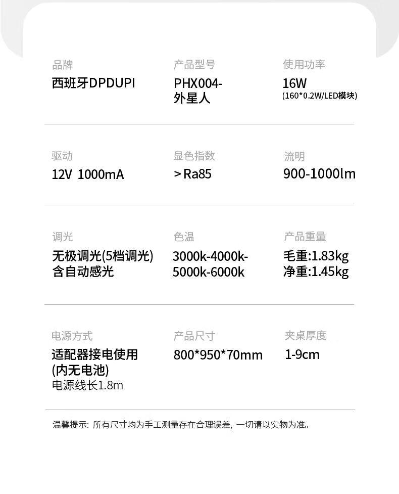 dp dupi德普立式电脑屏幕挂灯智能台灯办公电竞书桌夹子灯学生寝室防蓝光 80CM 台夹款白色外星人