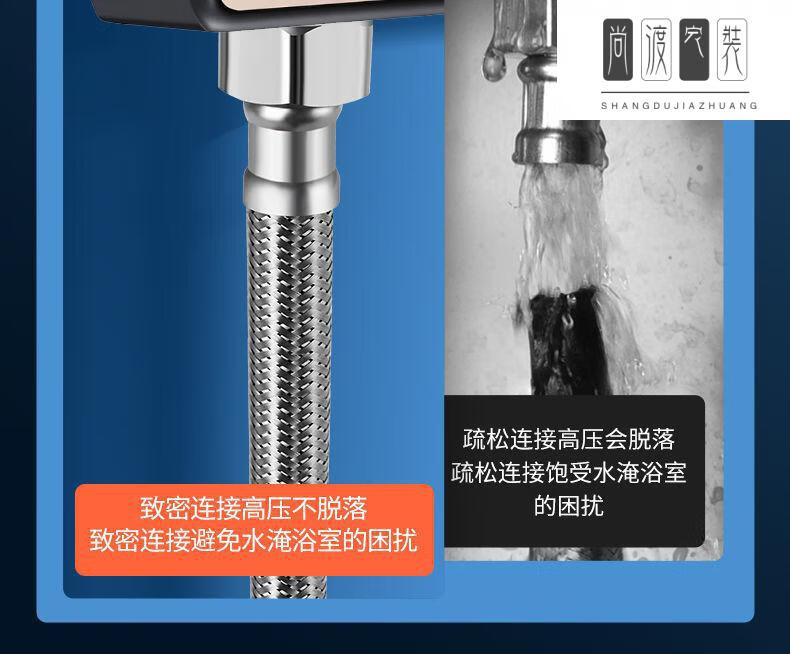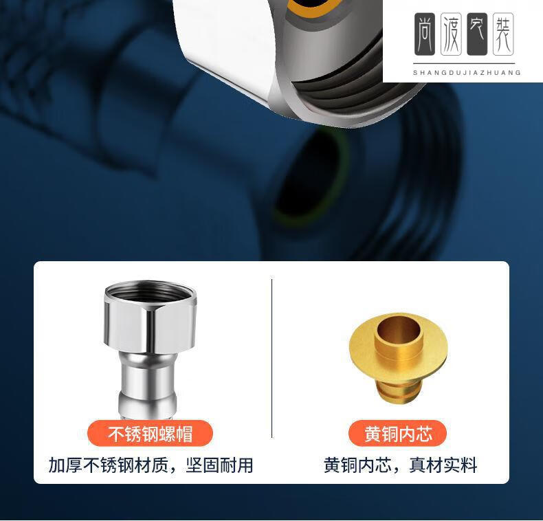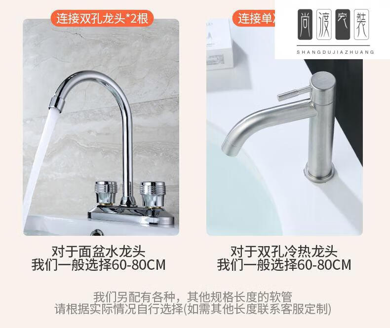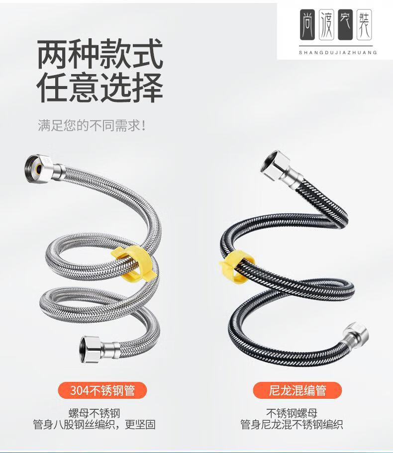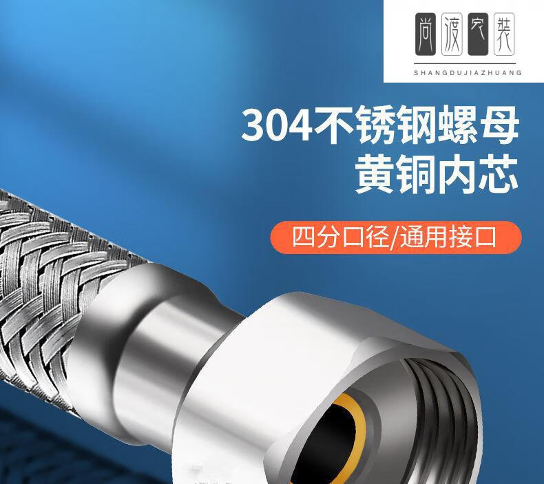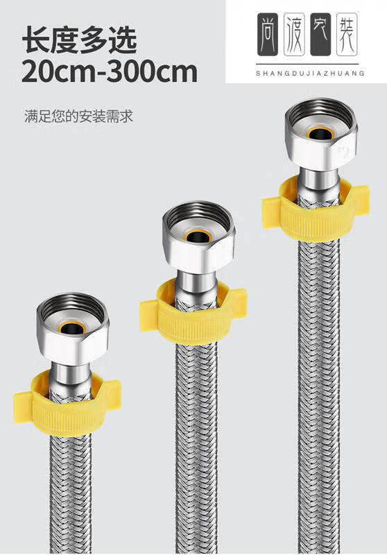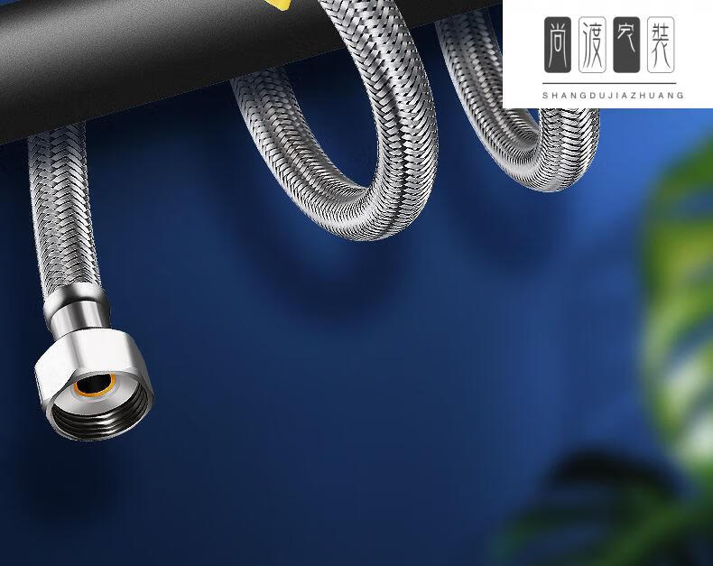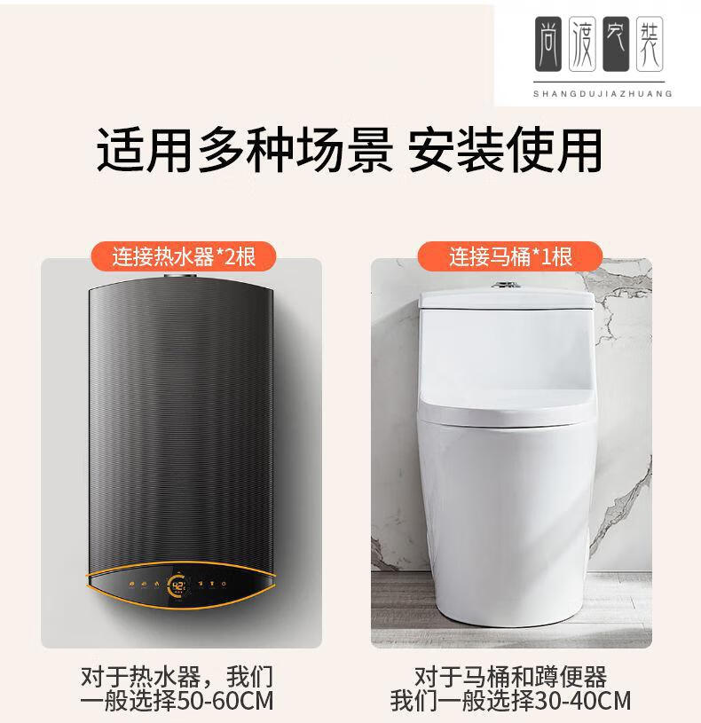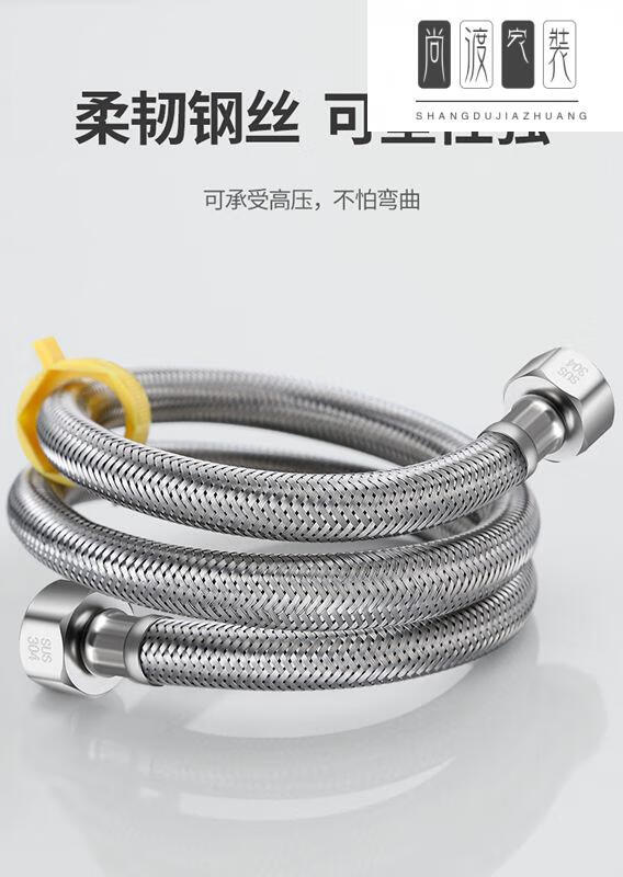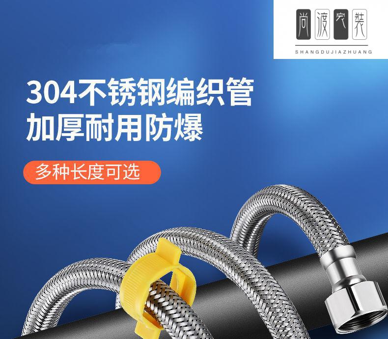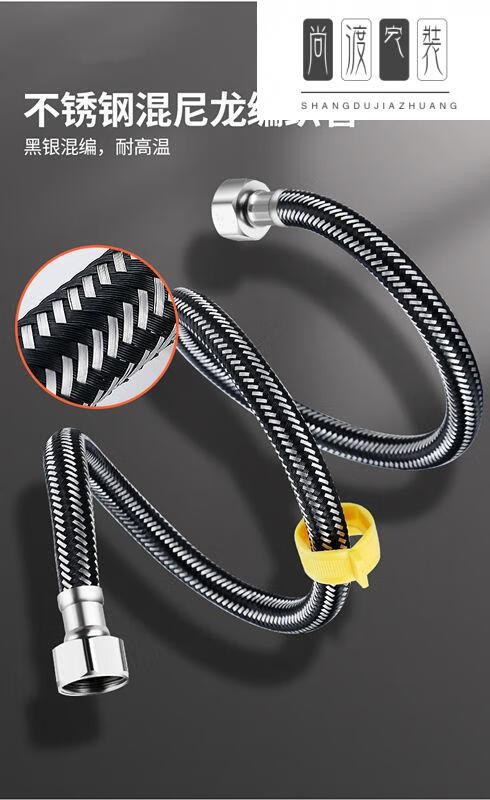 山头林村4分进水软管304不锈钢编织软管家用热水器马桶连接管防爆双头软管 普通款黑丝编织3年 50 厘米