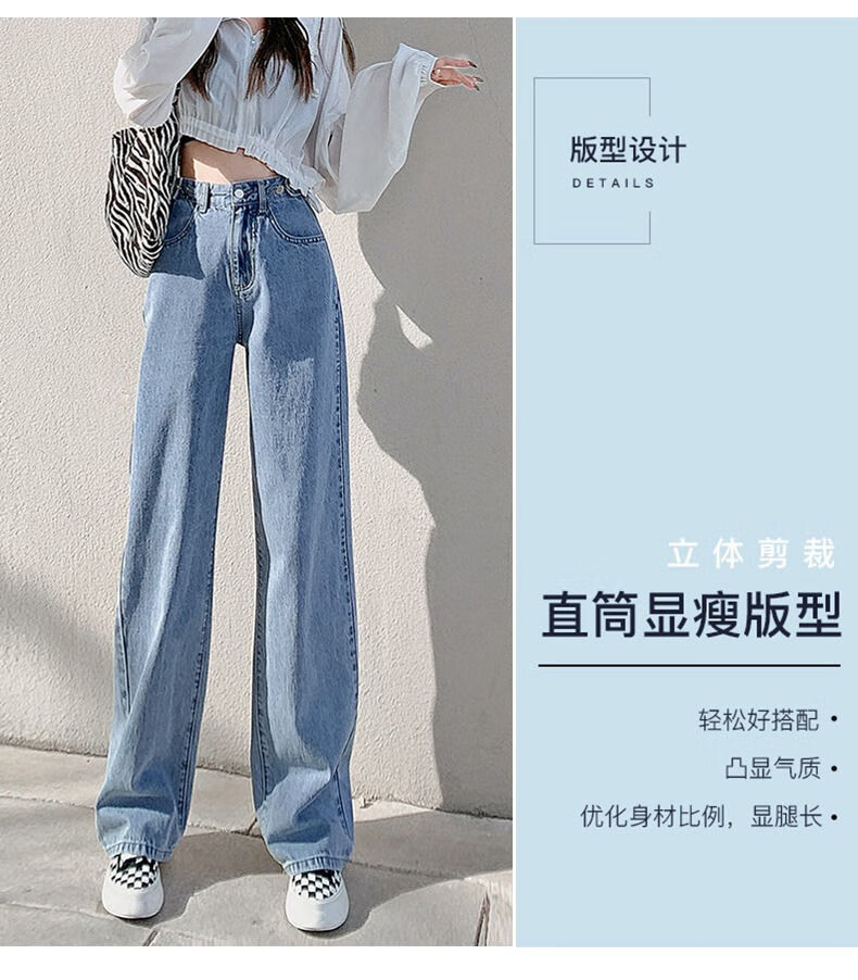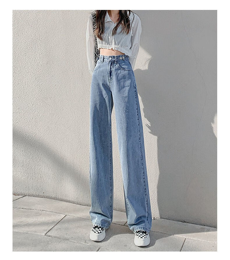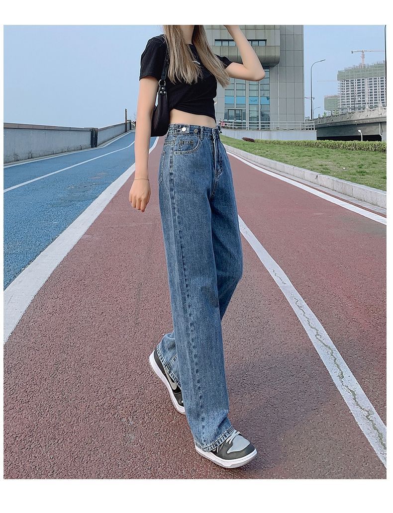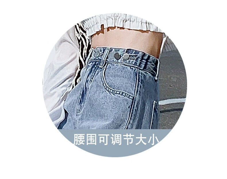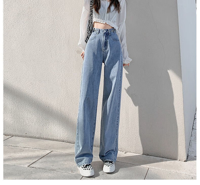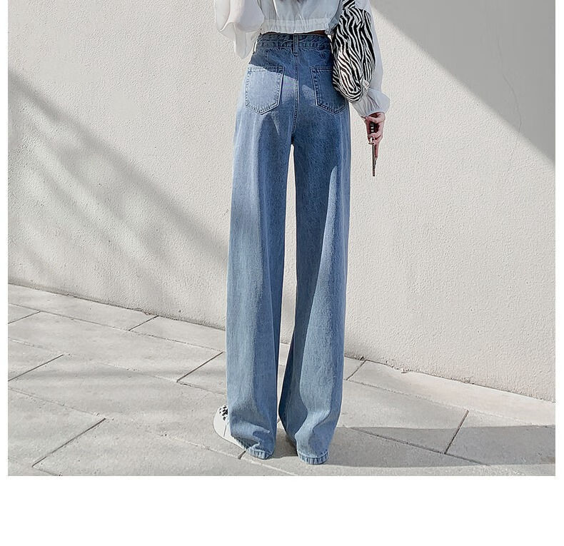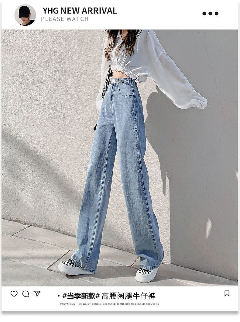 燠阳多扣可调牛仔裤女高腰显瘦学生百搭宽松直筒韩版垂感阔腿拖地裤子 1003浅蓝色 L 【105-118斤】