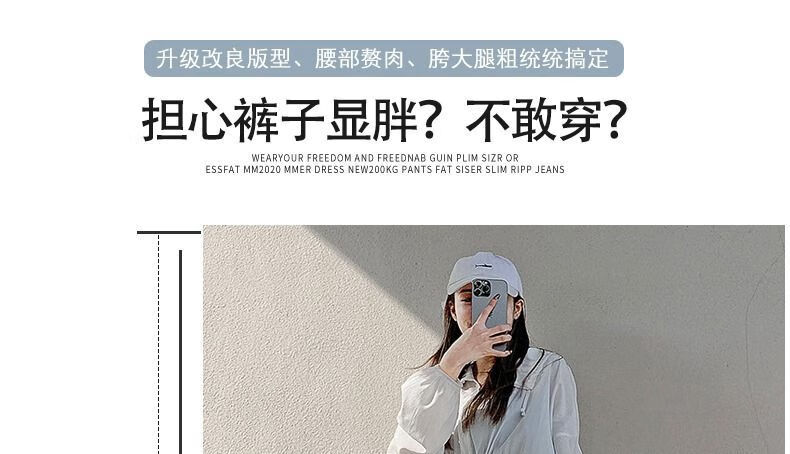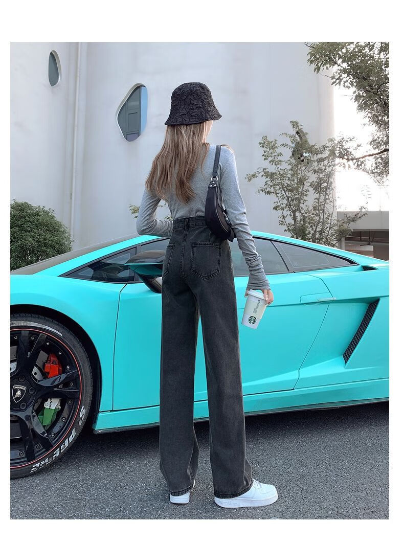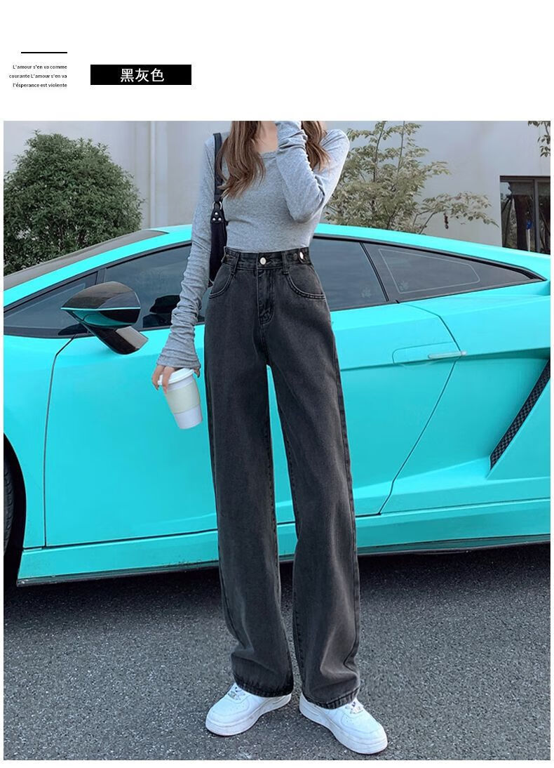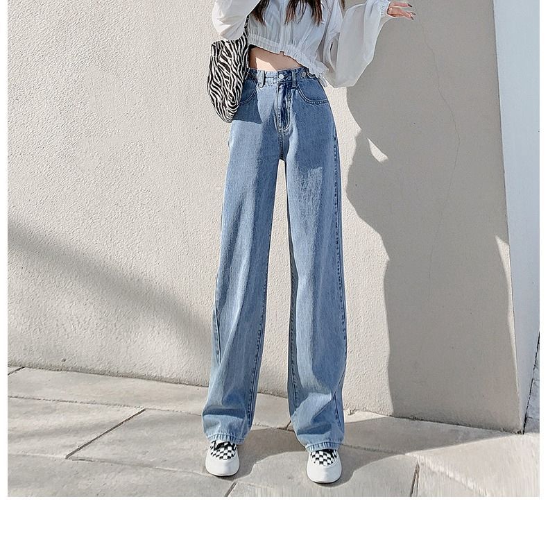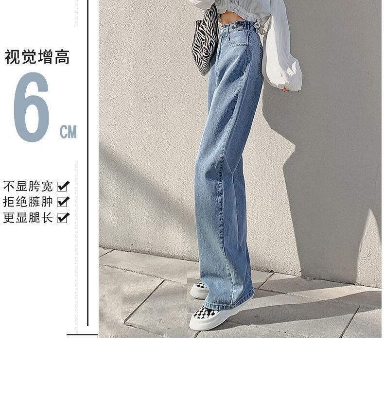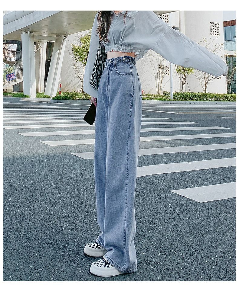 燠阳多扣可调牛仔裤女高腰显瘦学生百搭宽松直筒韩版垂感阔腿拖地裤子 1003浅蓝色 L 【105-118斤】