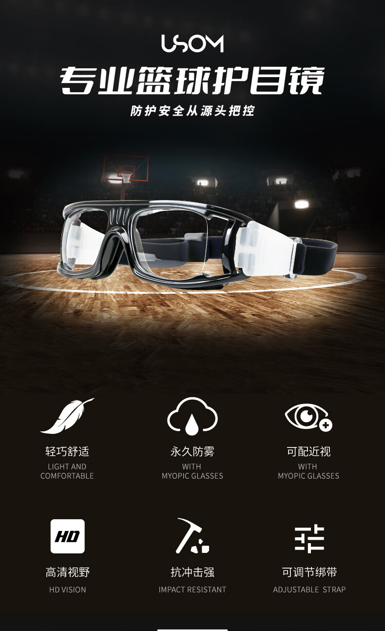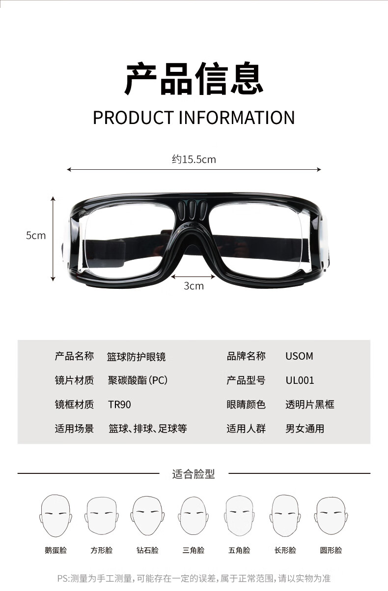 USOM篮球眼镜 运动近视框架 足球羽毛球运动护目镜UL001