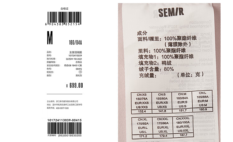 森马(Semir)防护外套|中国国家地理系列羽绒服女防风三防冬宽松101724113039
