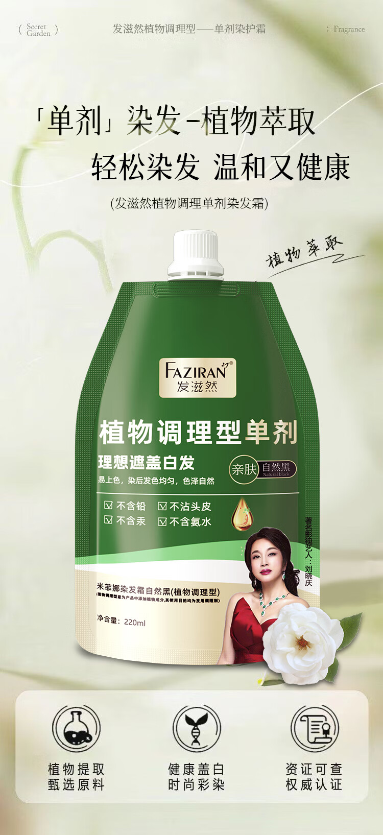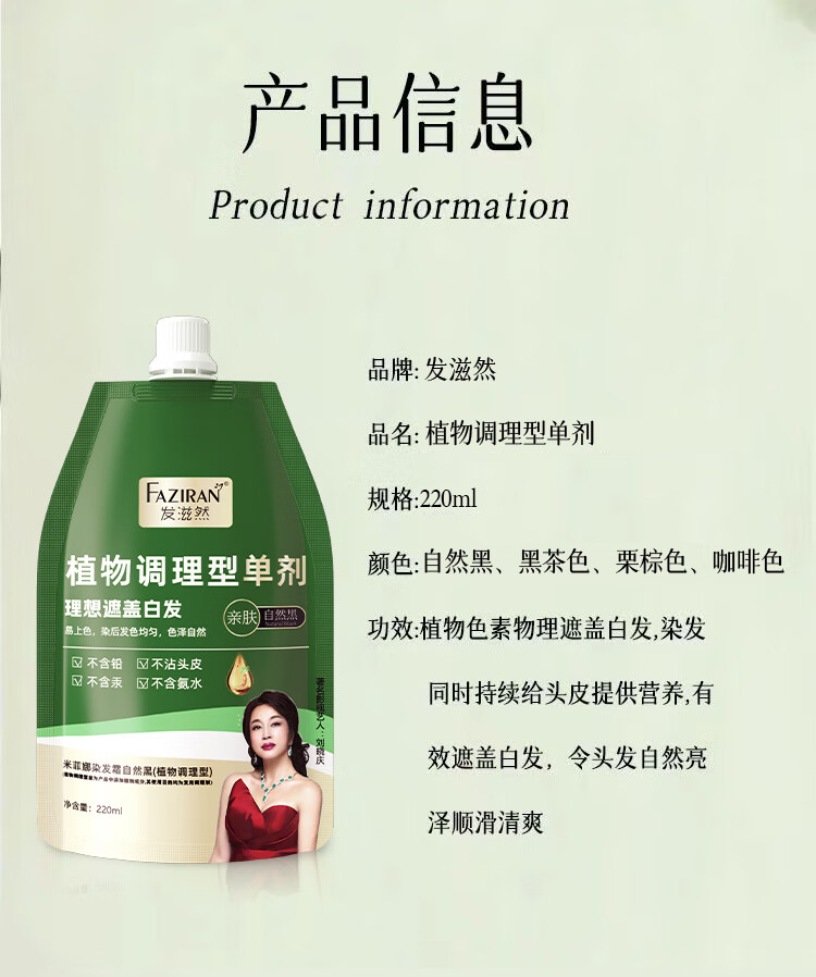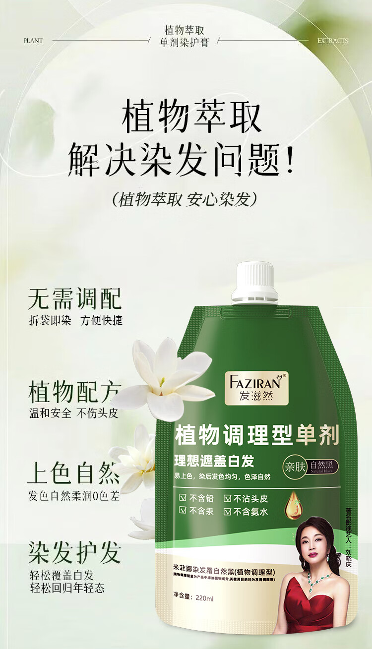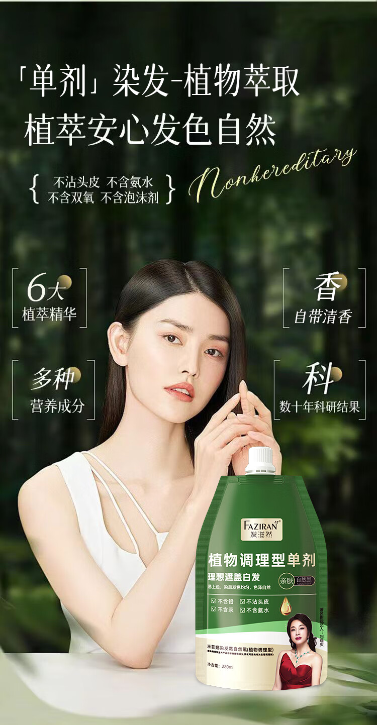 发滋然【热卖同款】染发膏天然植物提取纯染发剂盖白头发-自然黑