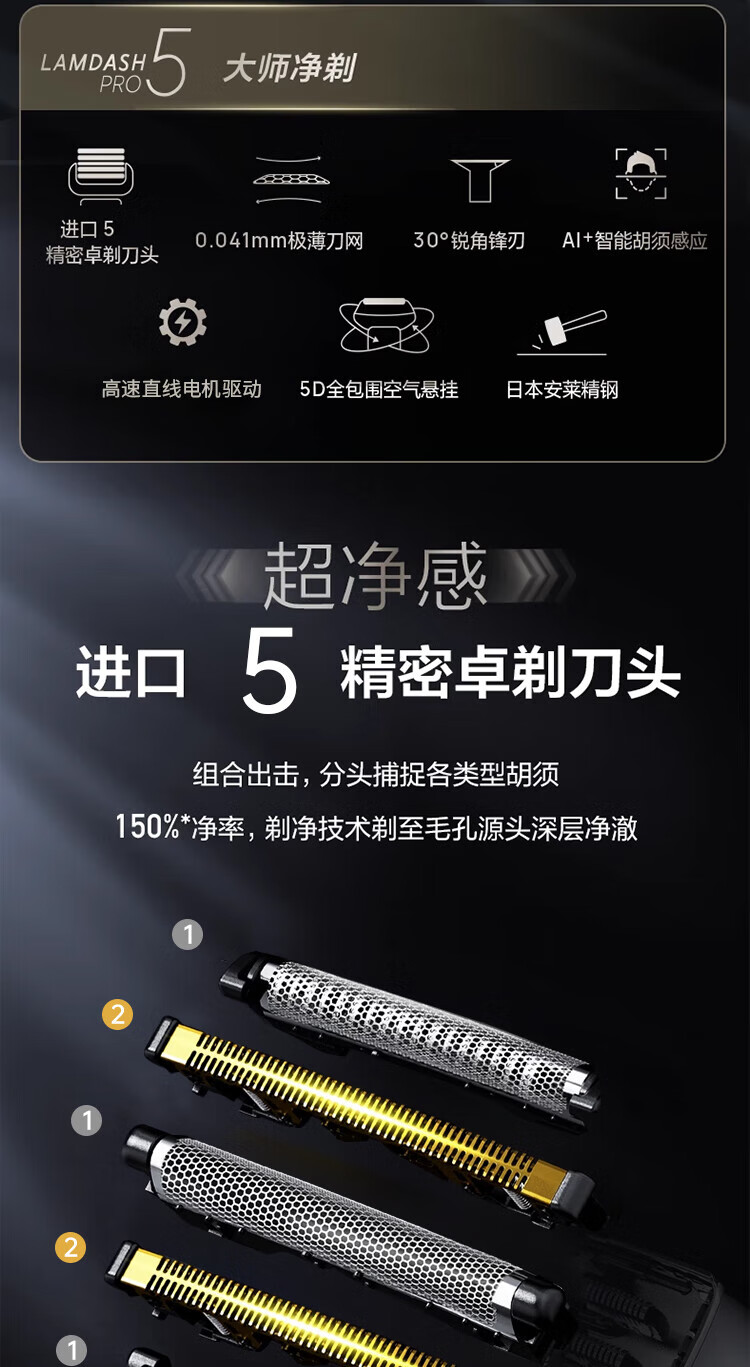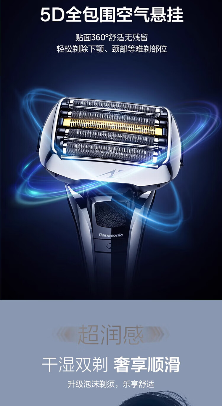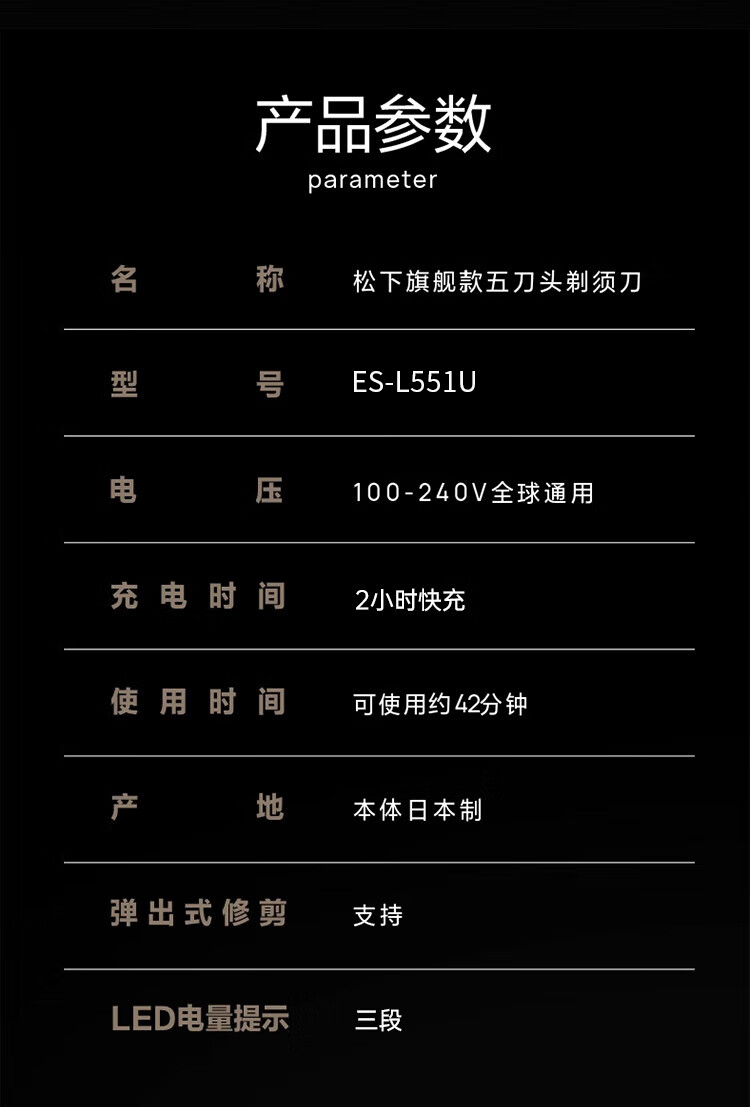 松下(Panasonic)日本原装进口新款ES-L551U-S 银色往复式5刀头 男士电动剃须刮胡刀 便携车载 旅行送老公 父亲礼物