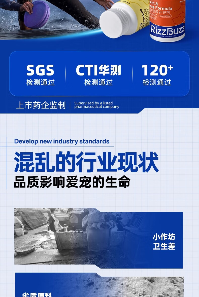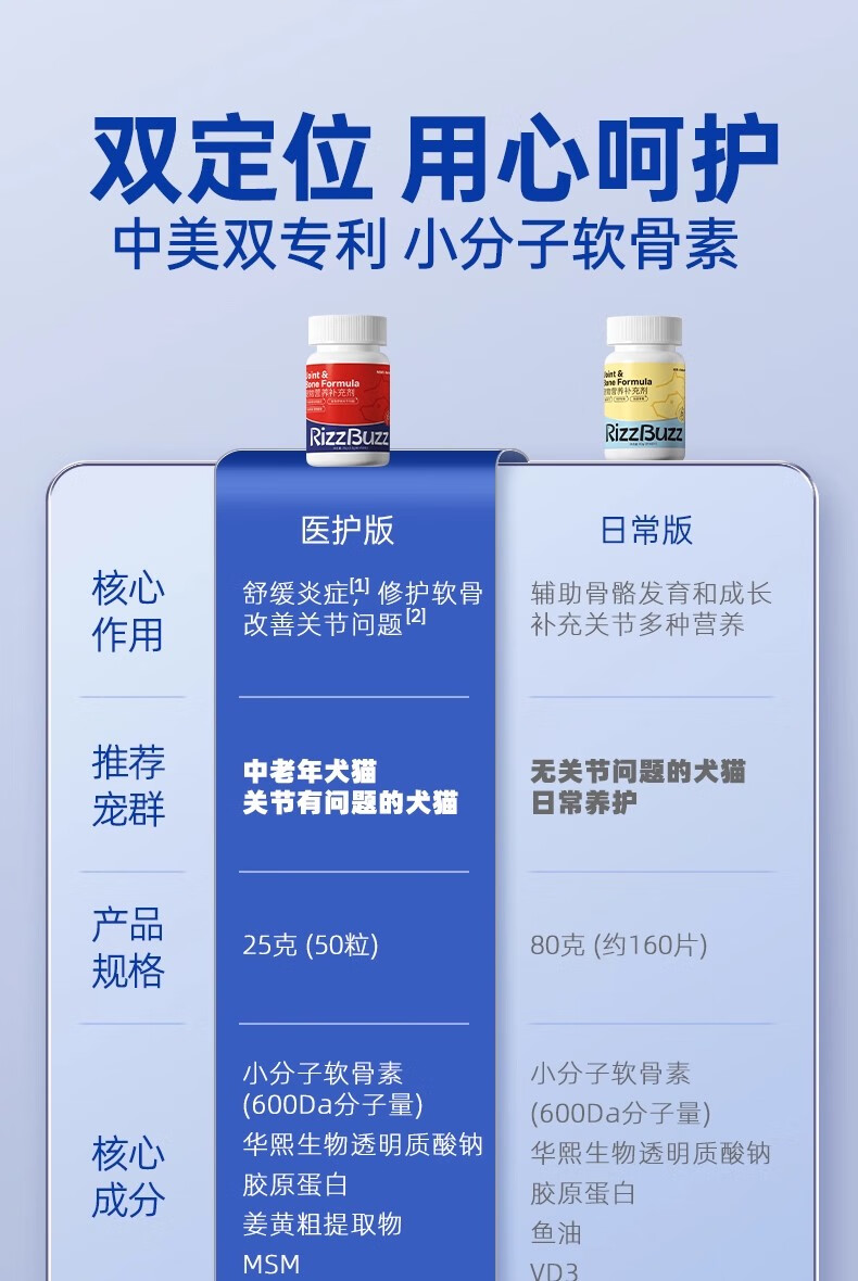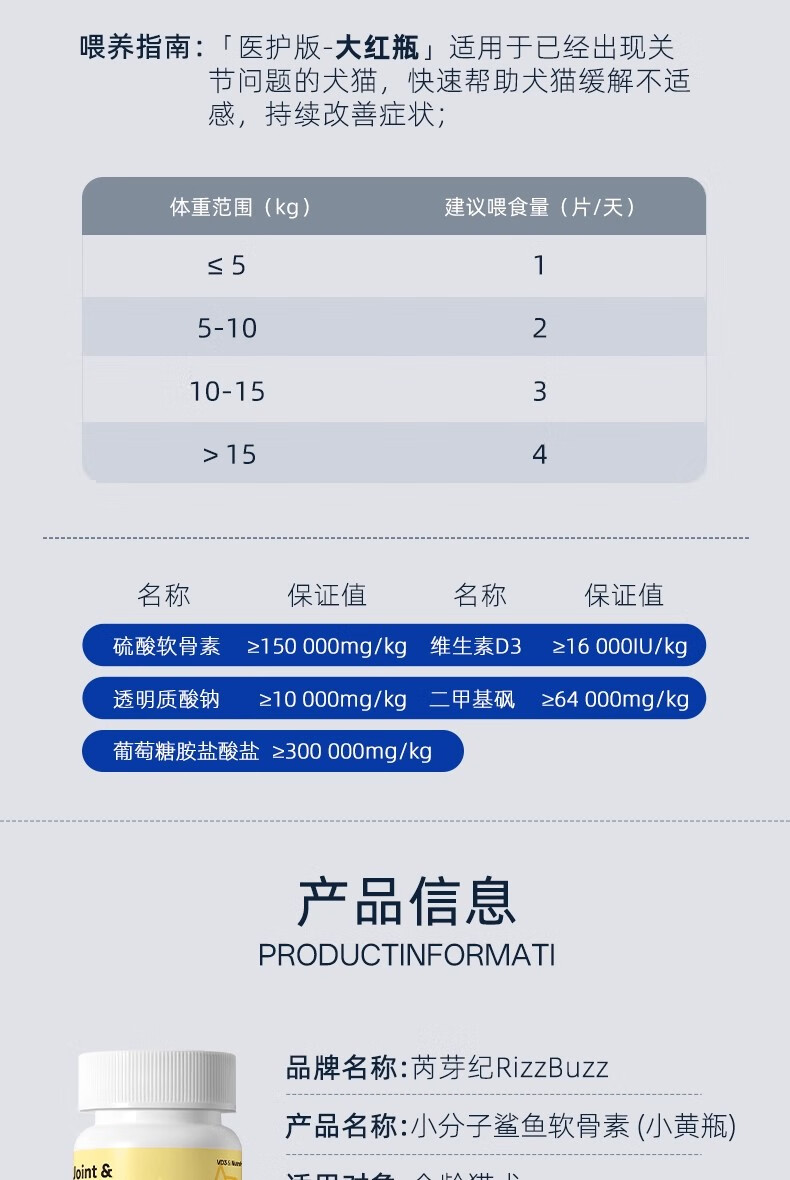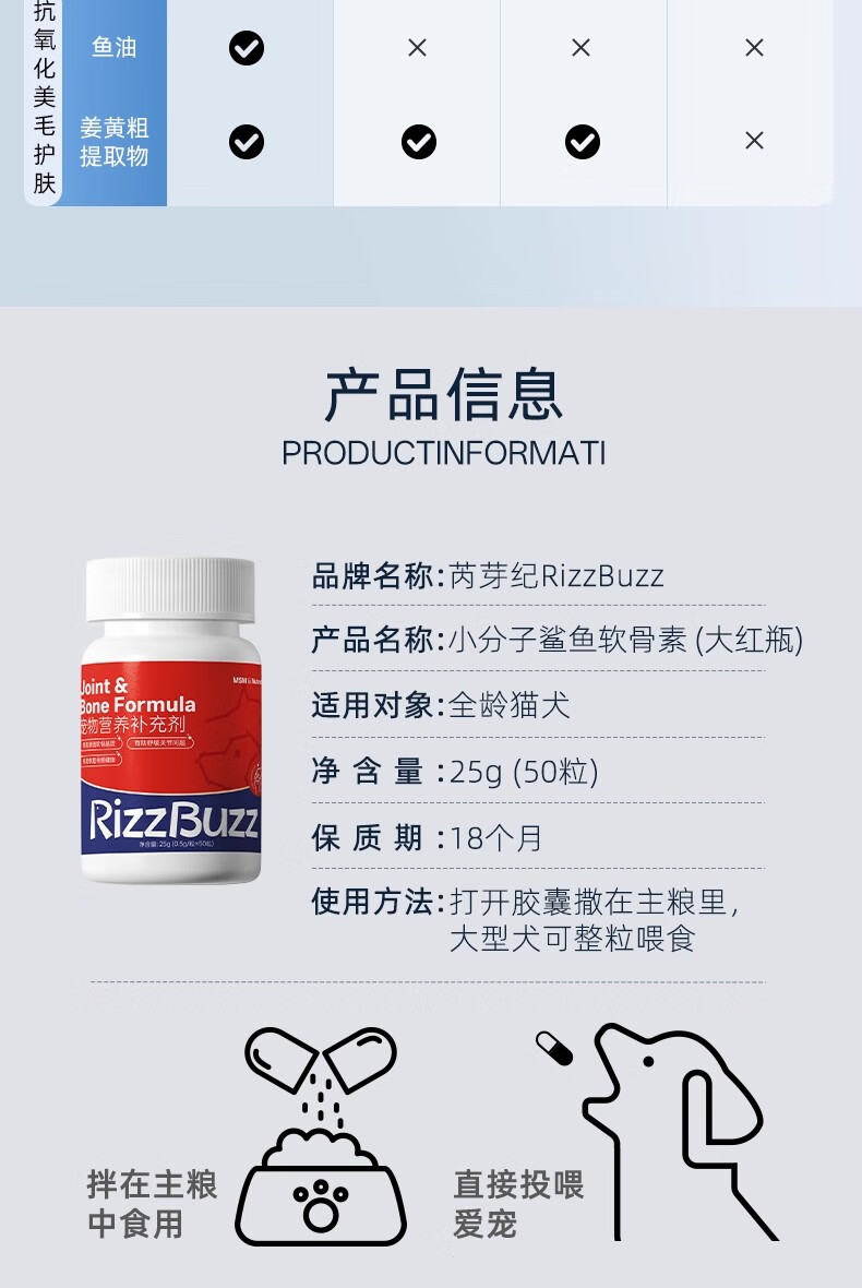 RIZZBUZZ软骨素狗狗专用600Da小分子鲨鱼氨糖软骨素宠物修护关节强健骨骼