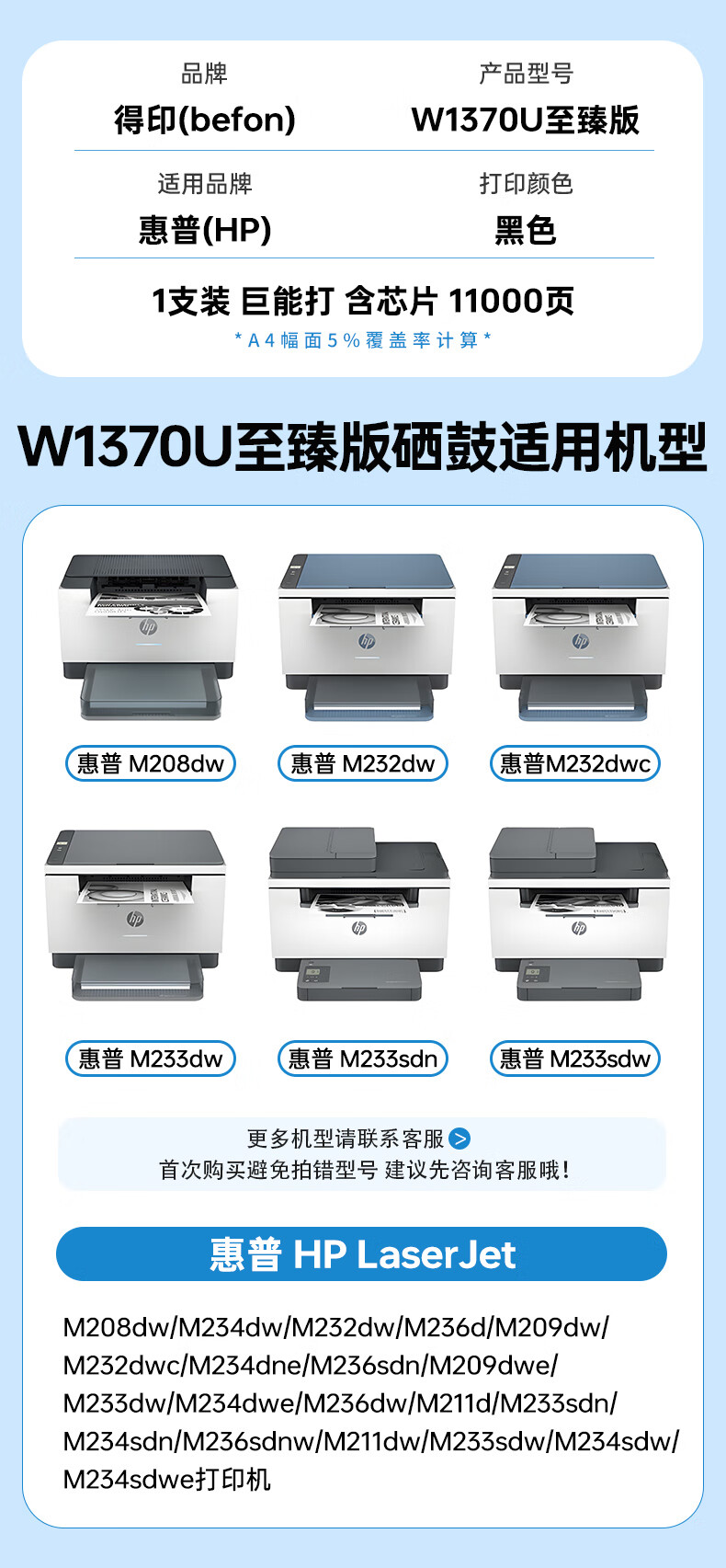 得印适用惠普m232dw硒鼓hp233sdw m233dw m233sdn m232dwc m208dw打印机粉盒w1370a硒鼓137a特大容量