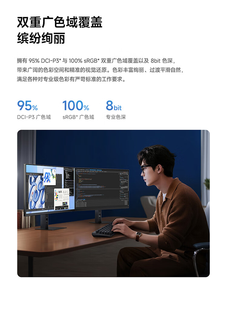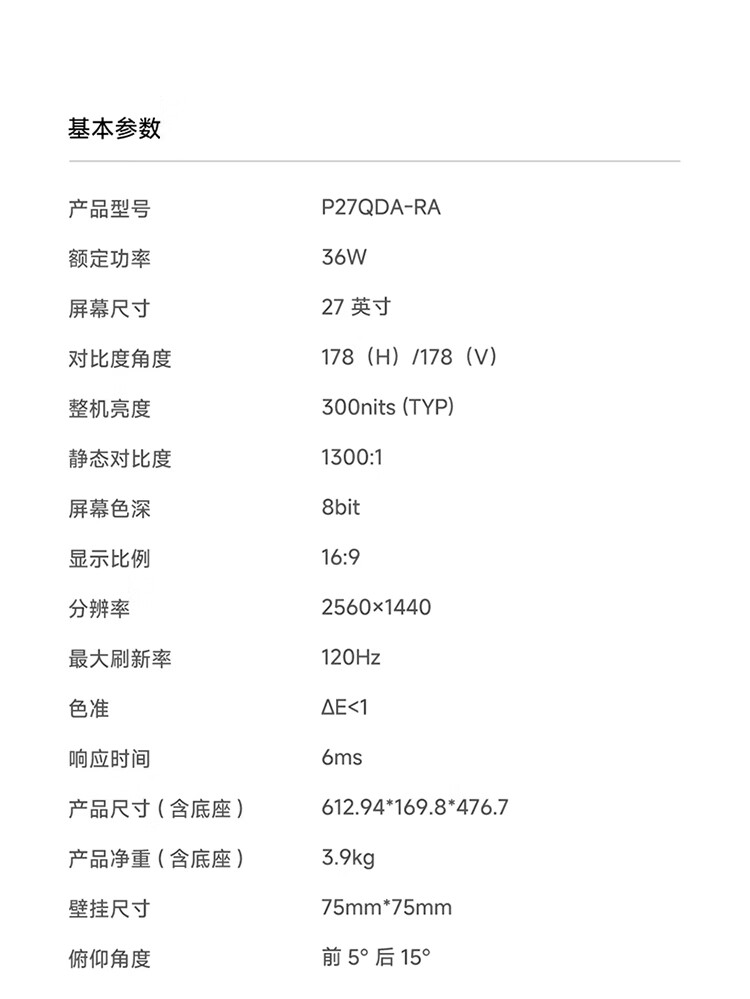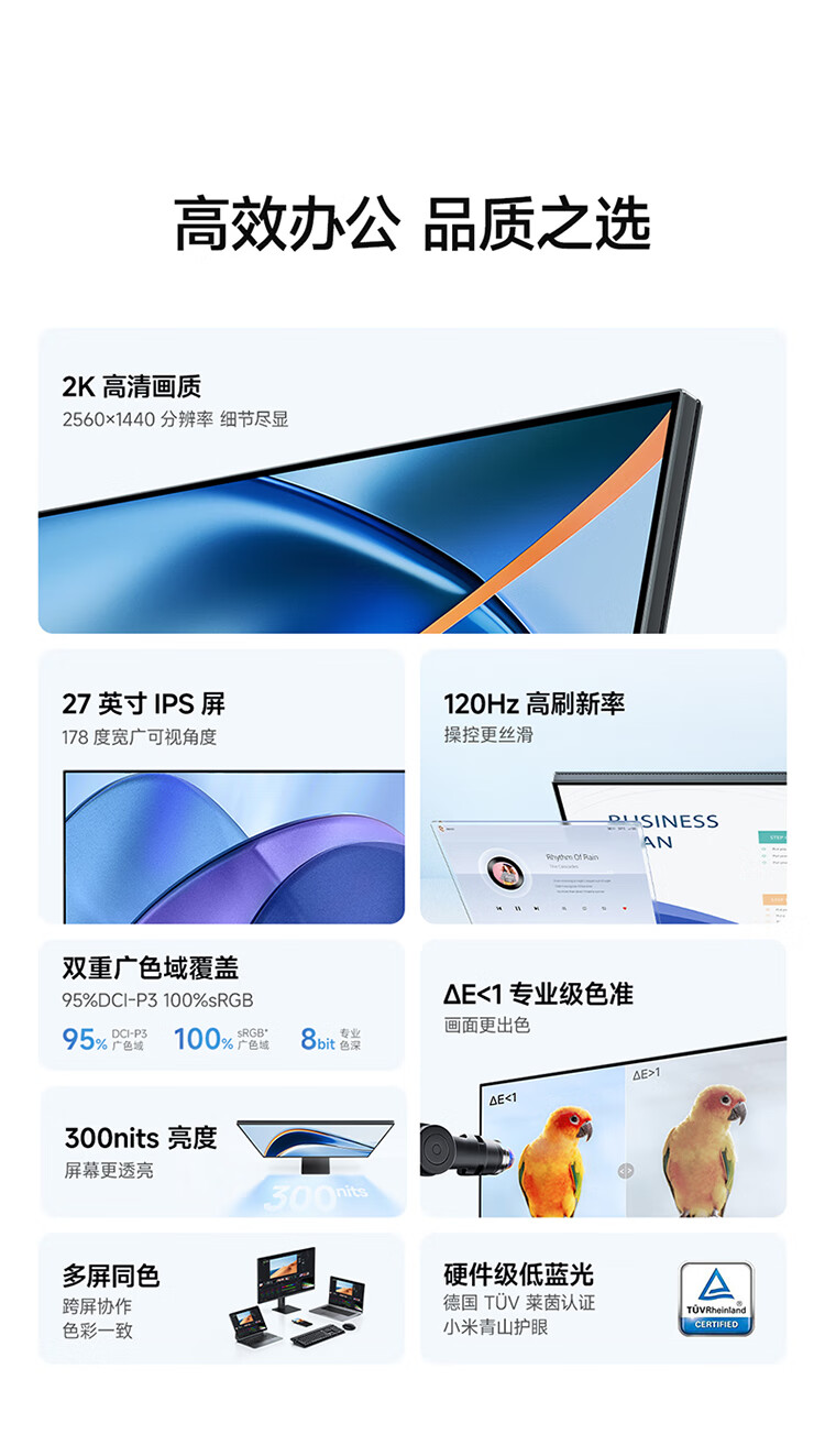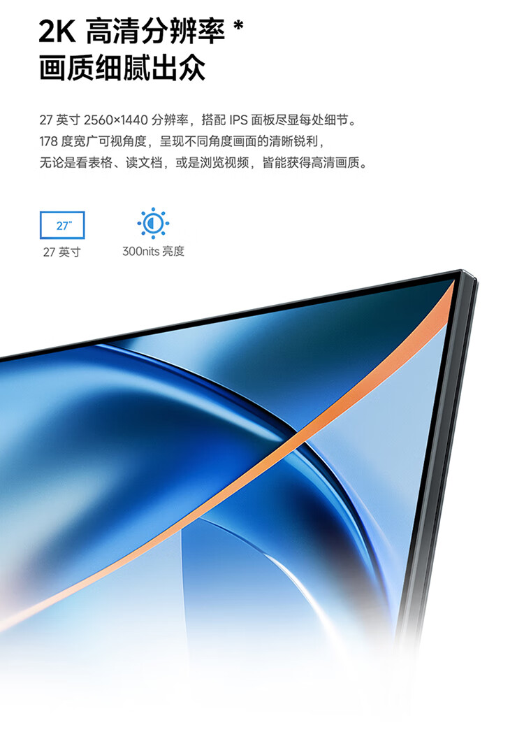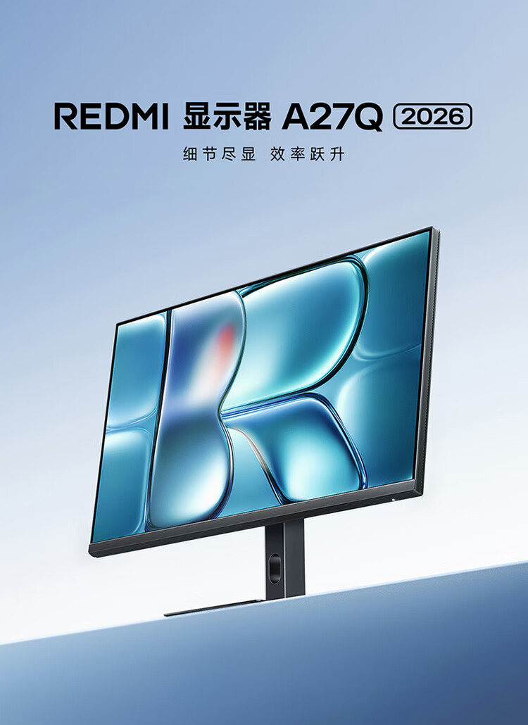 小米(MI)REDMI 27英寸2K显示器 120Hz高刷新率 IPS技术 双重广色域电脑办公显示器 A27Q 2026款