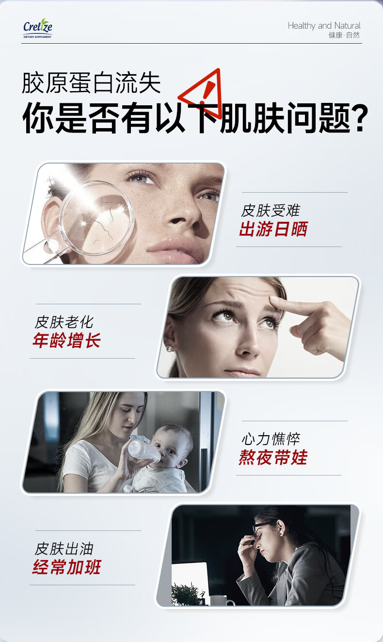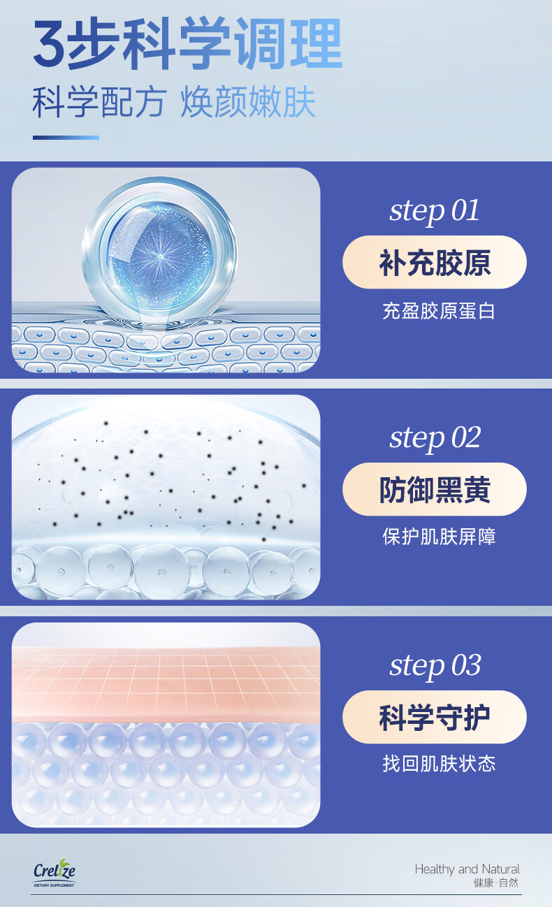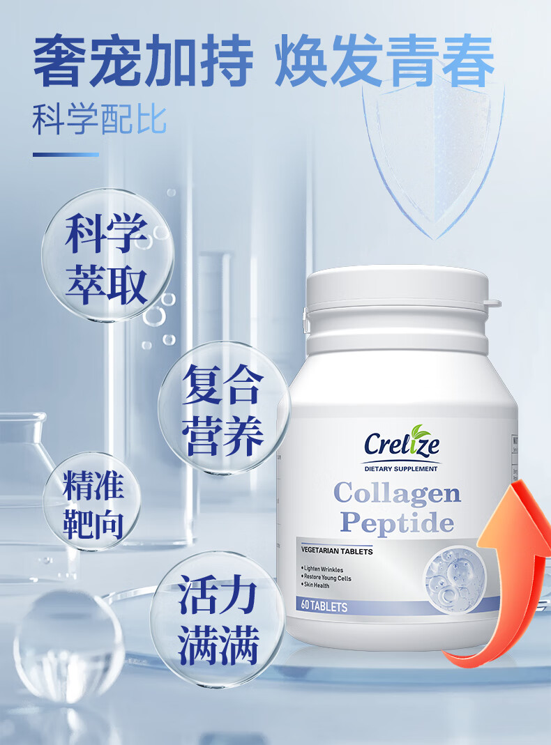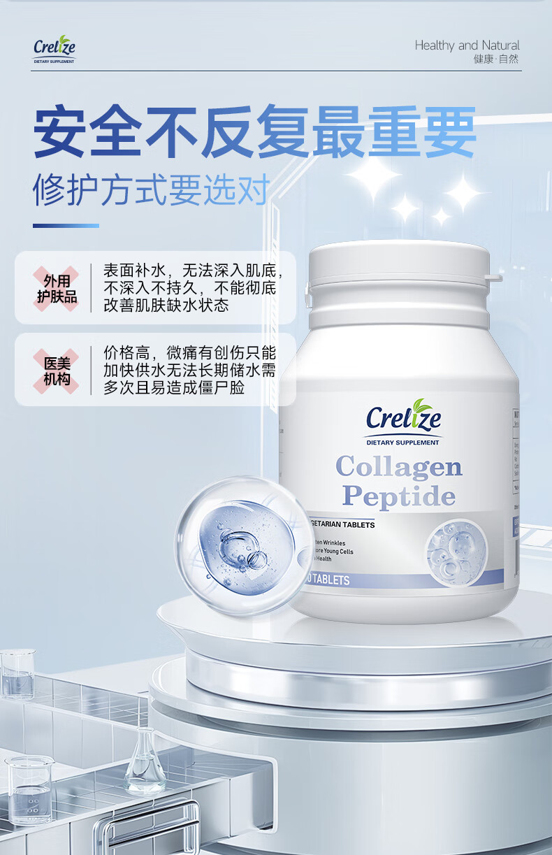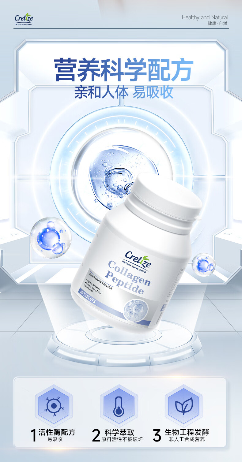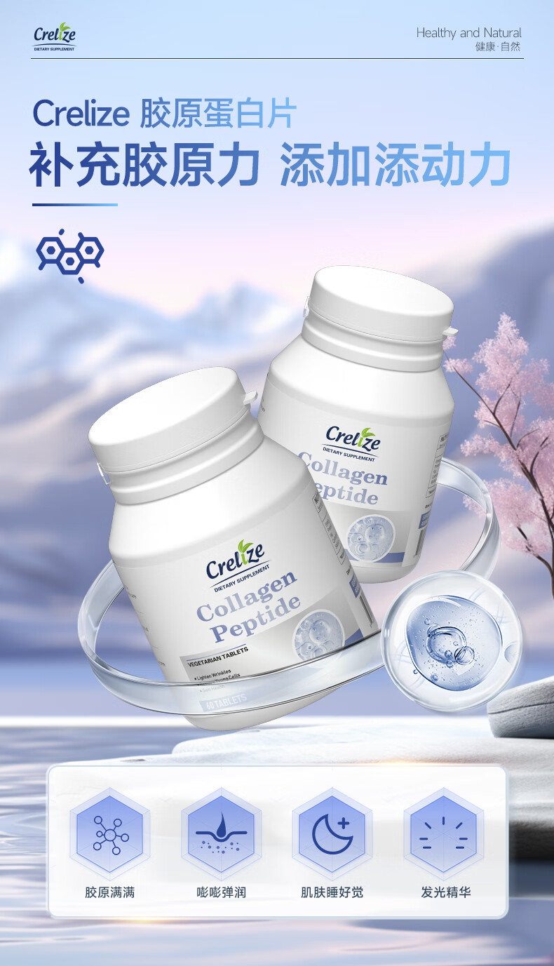 CRELIZE 胶原蛋白肽片剂小分子抗蛋白紧致皮肤淡斑改善暗沉黄提亮一盒