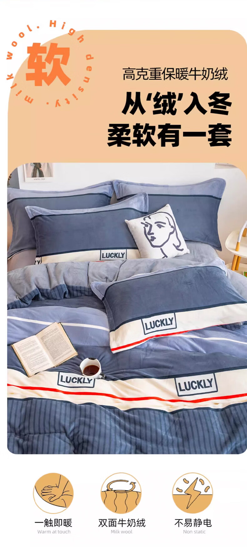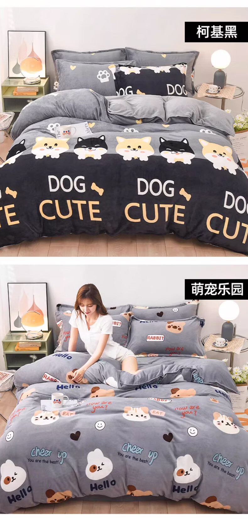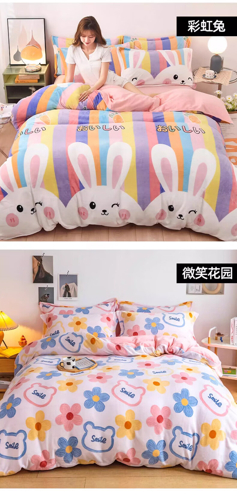 云瑾冬季加厚牛奶绒被套单件冬天加绒珊瑚绒毛绒被罩 花花兔熊【加绒加厚 循环锁热】 180*200cm单人加大
