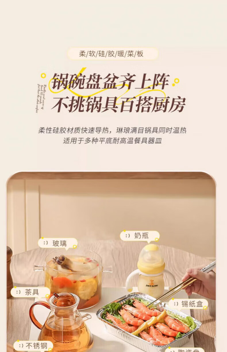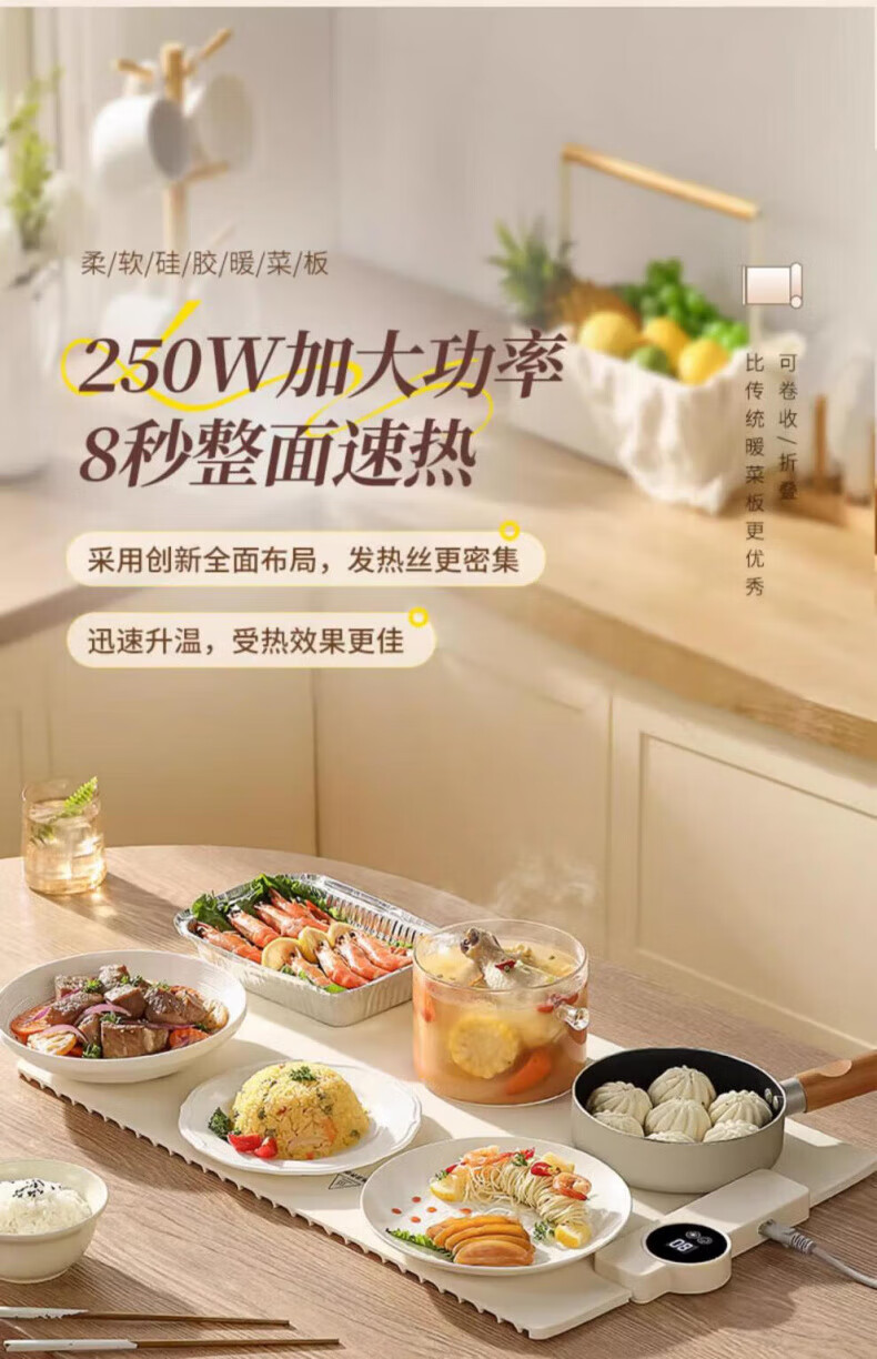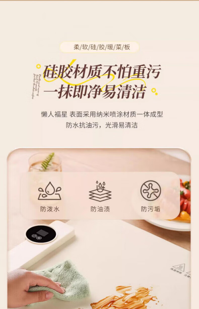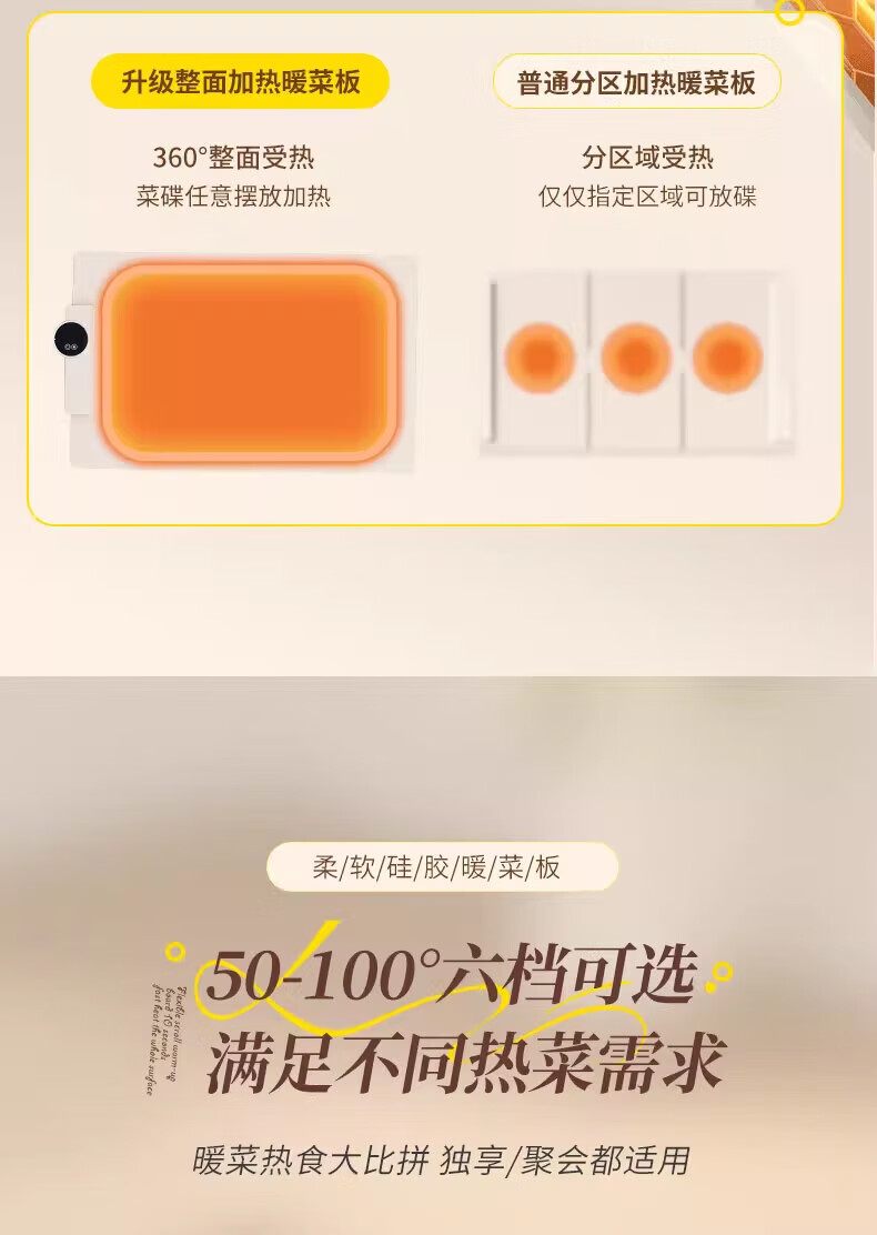 DEATKN德国暖菜板家用折叠电热桌饭菜保温 40*38cm[整面加热/六档调温定时/