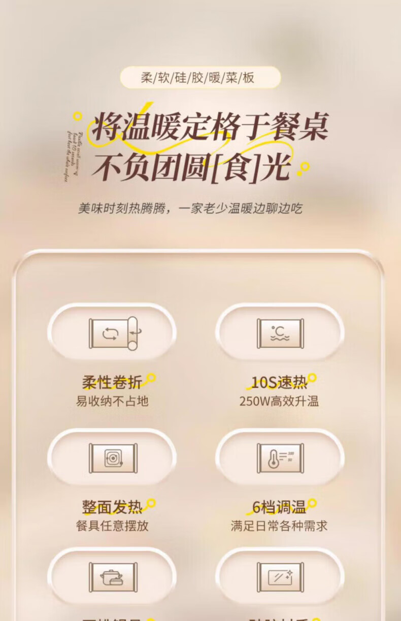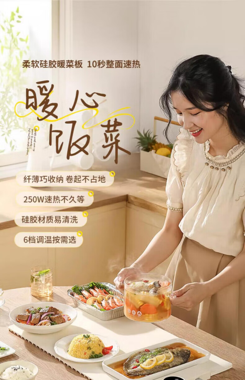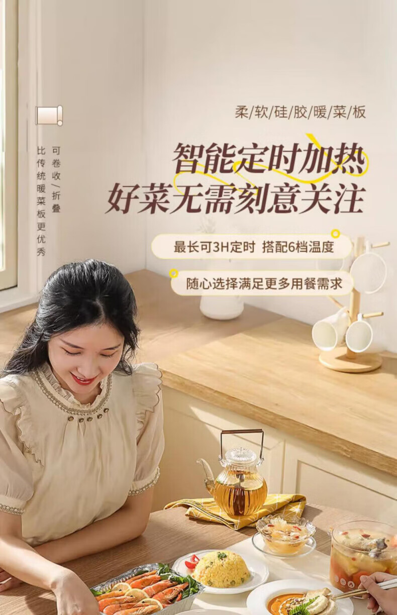 DEATKN德国暖菜板家用折叠电热桌饭菜保温 40*38cm[整面加热/六档调温定时/