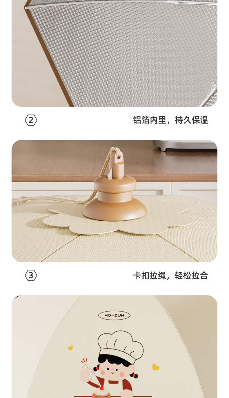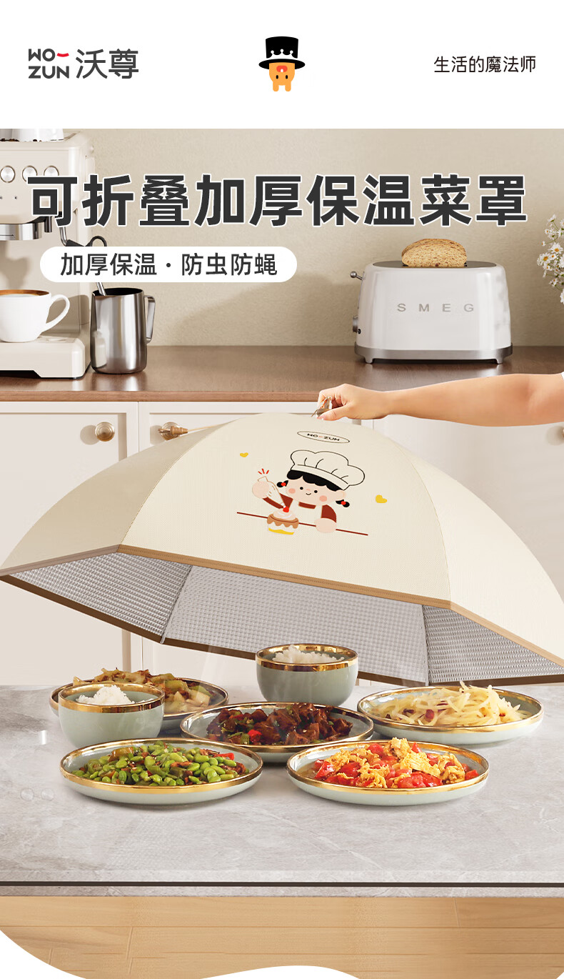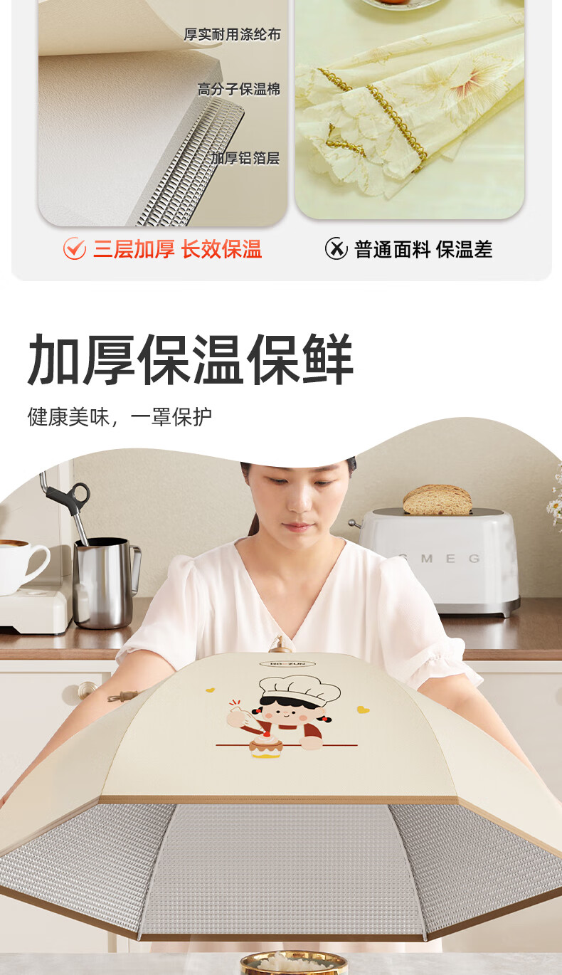 沃尊菜罩饭菜保温罩菜神器菜盖罩2025新款家用冬天餐桌剩菜剩饭食物罩 【小小厨娘】三层加厚款圆形60CM
