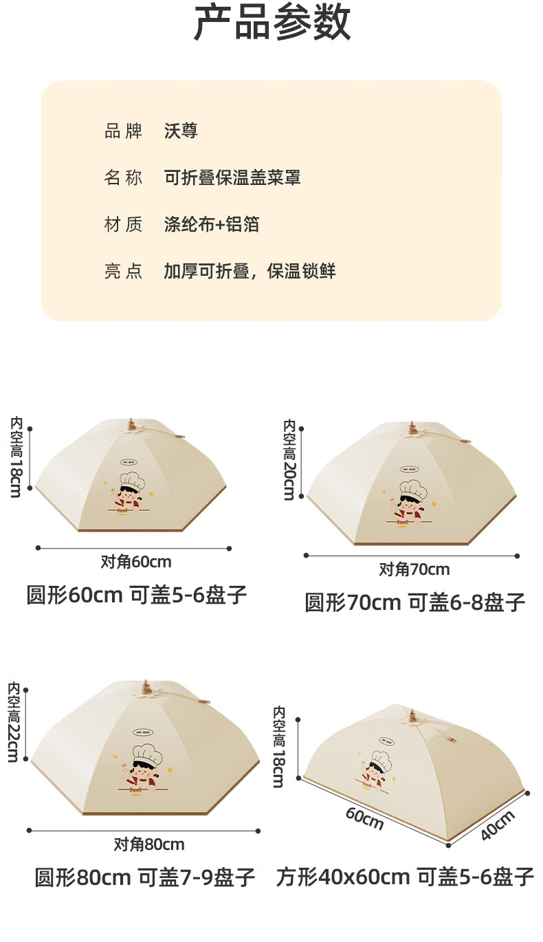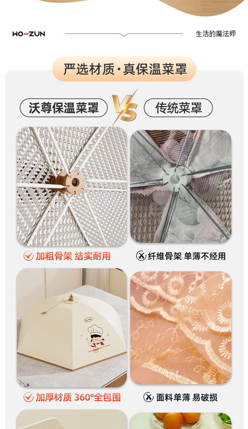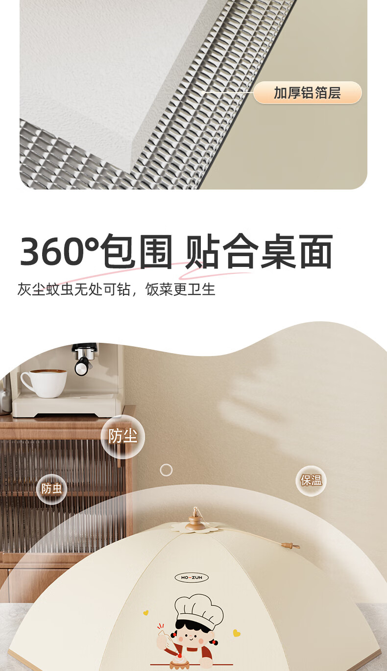 沃尊菜罩饭菜保温罩菜神器菜盖罩2025新款家用冬天餐桌剩菜剩饭食物罩 【小小厨娘】三层加厚款圆形60CM