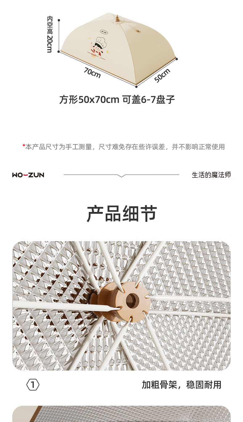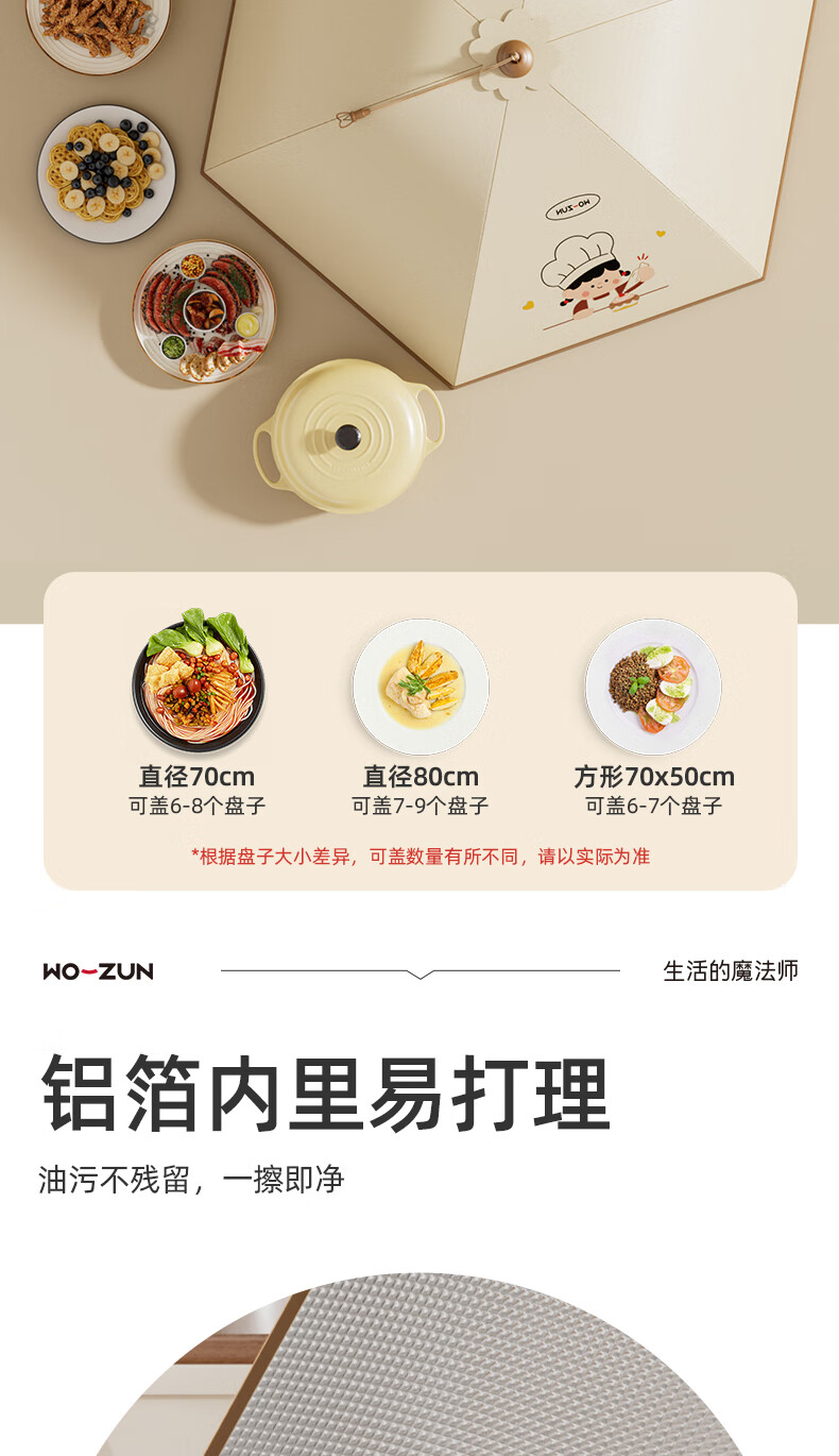 OEMG德国品质盖菜罩2025新款家用餐桌可折叠网罩子防苍蝇食物剩饭 圆形70cm/白色/约放6-10盘菜