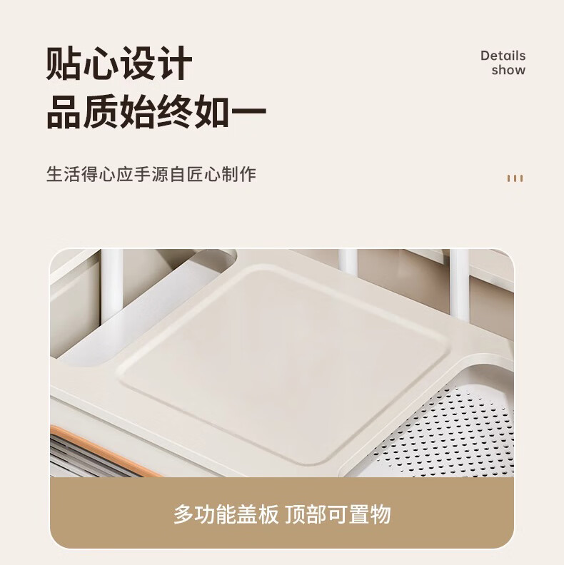 京东物流 免安装收纳柜衣柜带万向轮折叠置物柜家用零食储物柜 【50cm面宽】奶油色/折叠款 2层