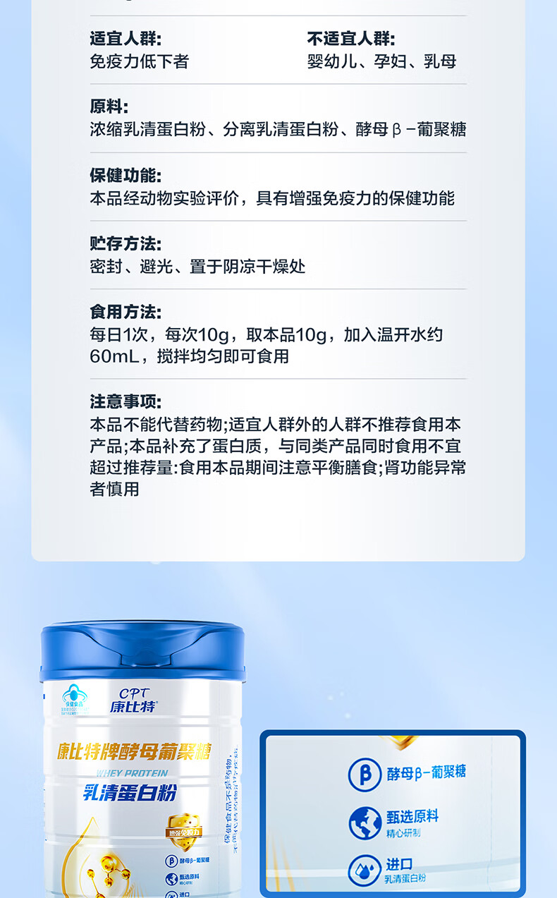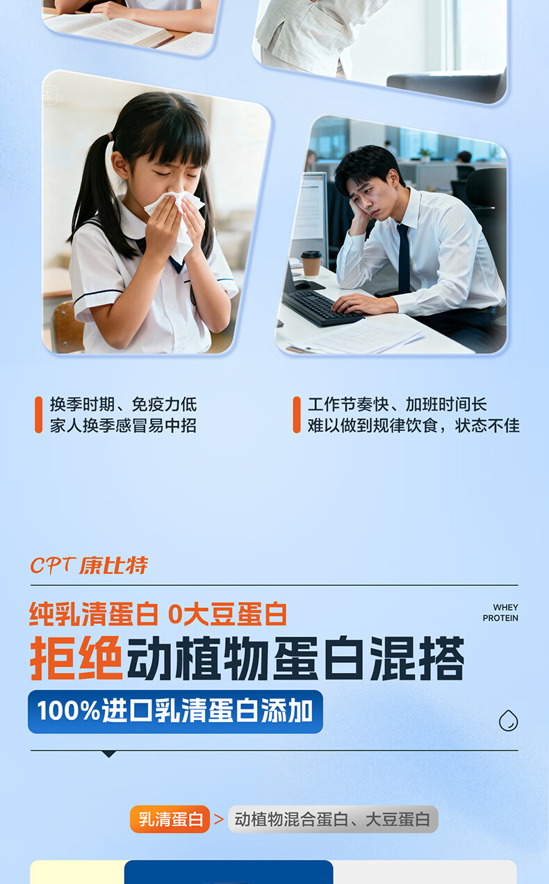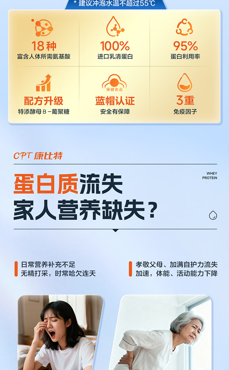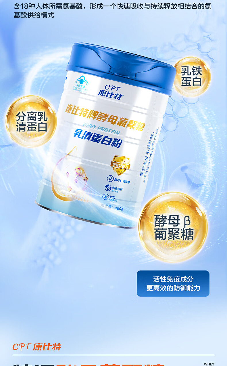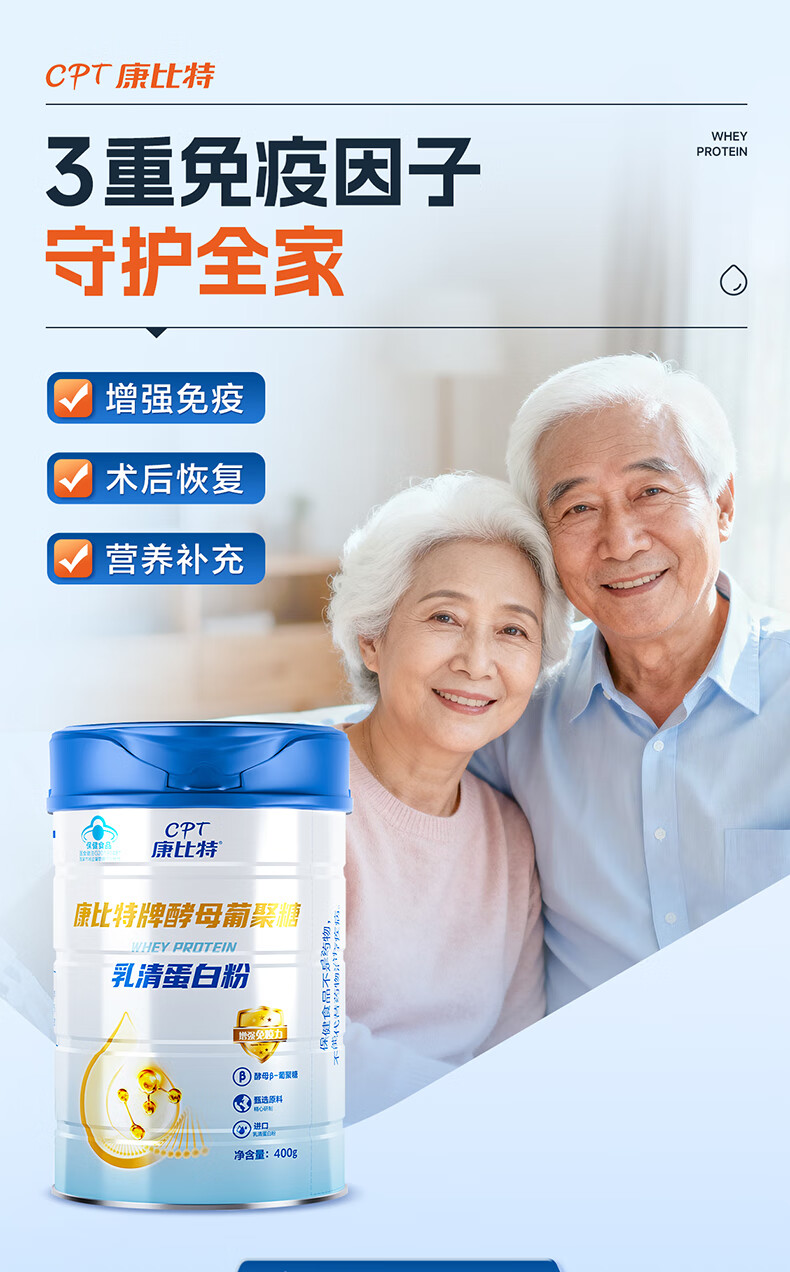 康比特蛋白粉增强免疫力 分离乳清蛋白粉中老年人成人补充营养送礼 2罐