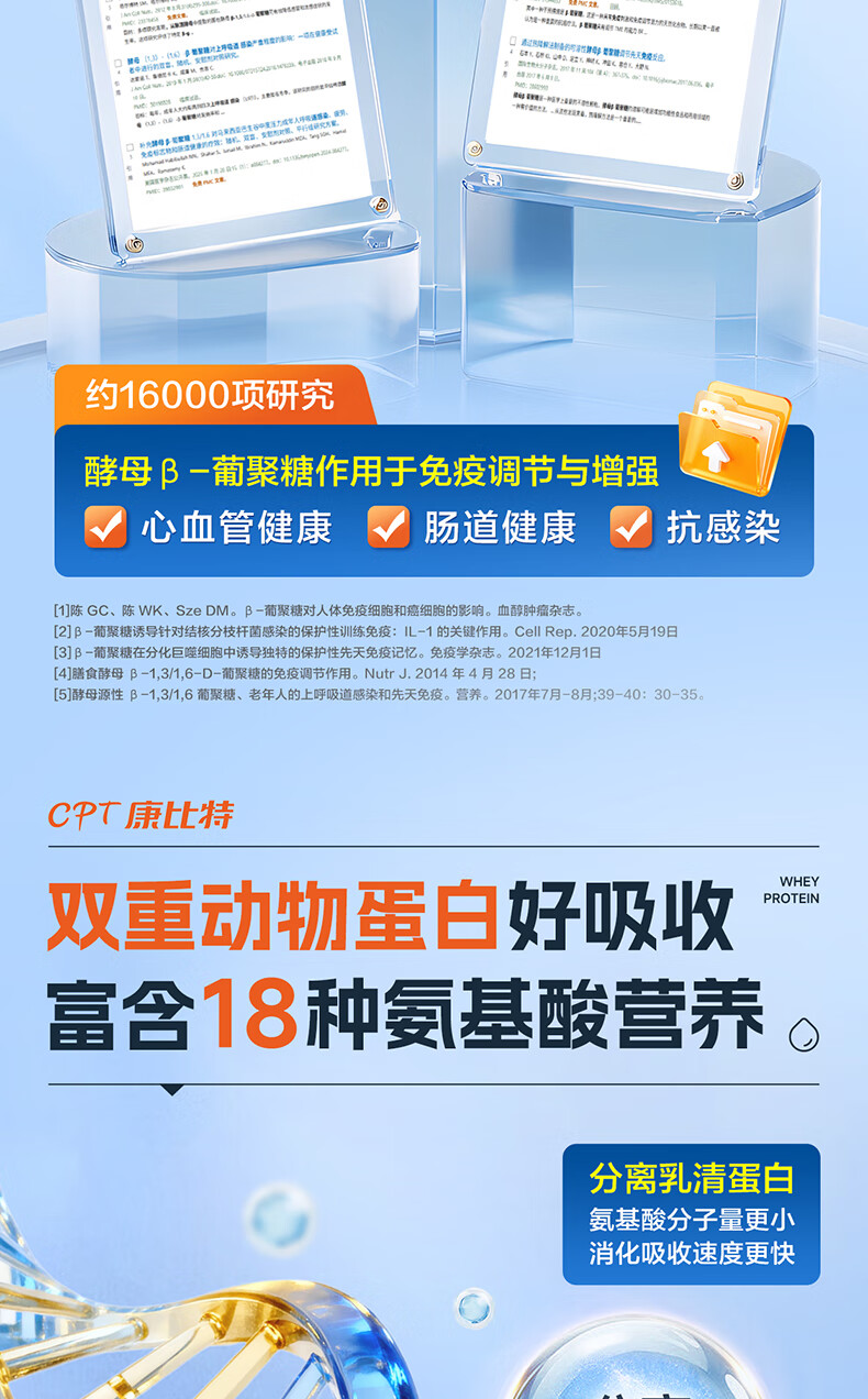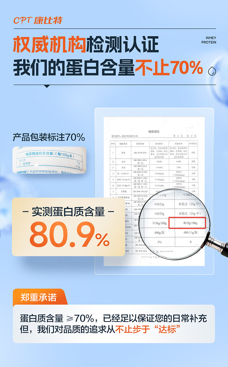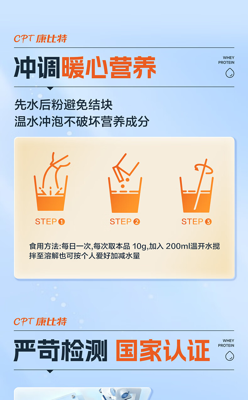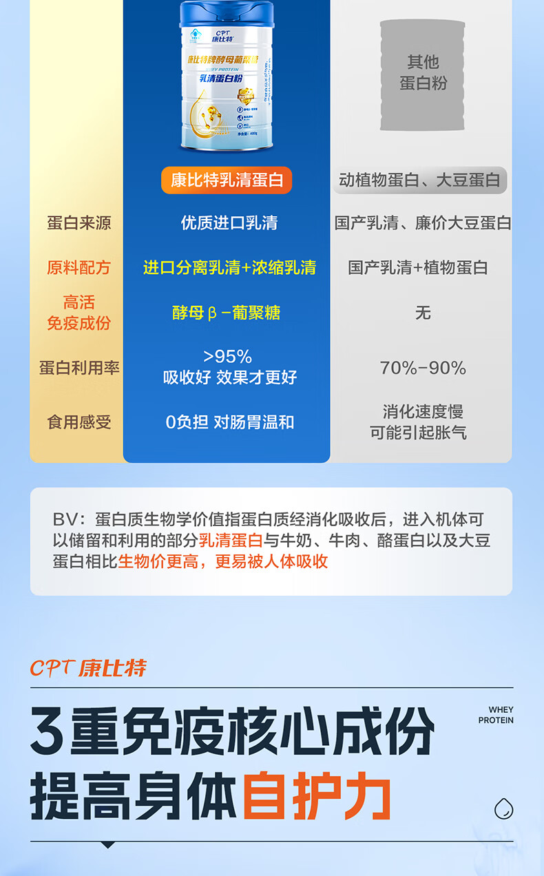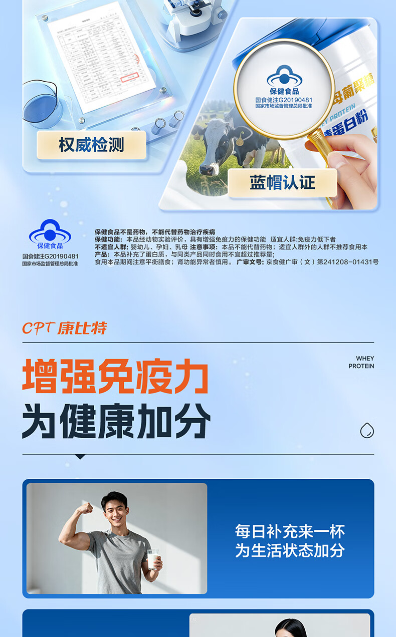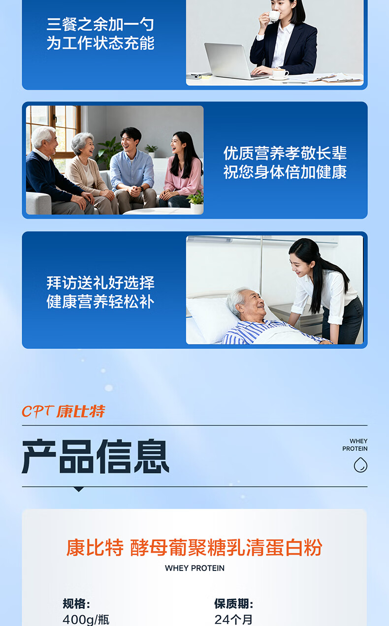 康比特蛋白粉增强免疫力 分离乳清蛋白粉中老年人成人补充营养送礼 2罐
