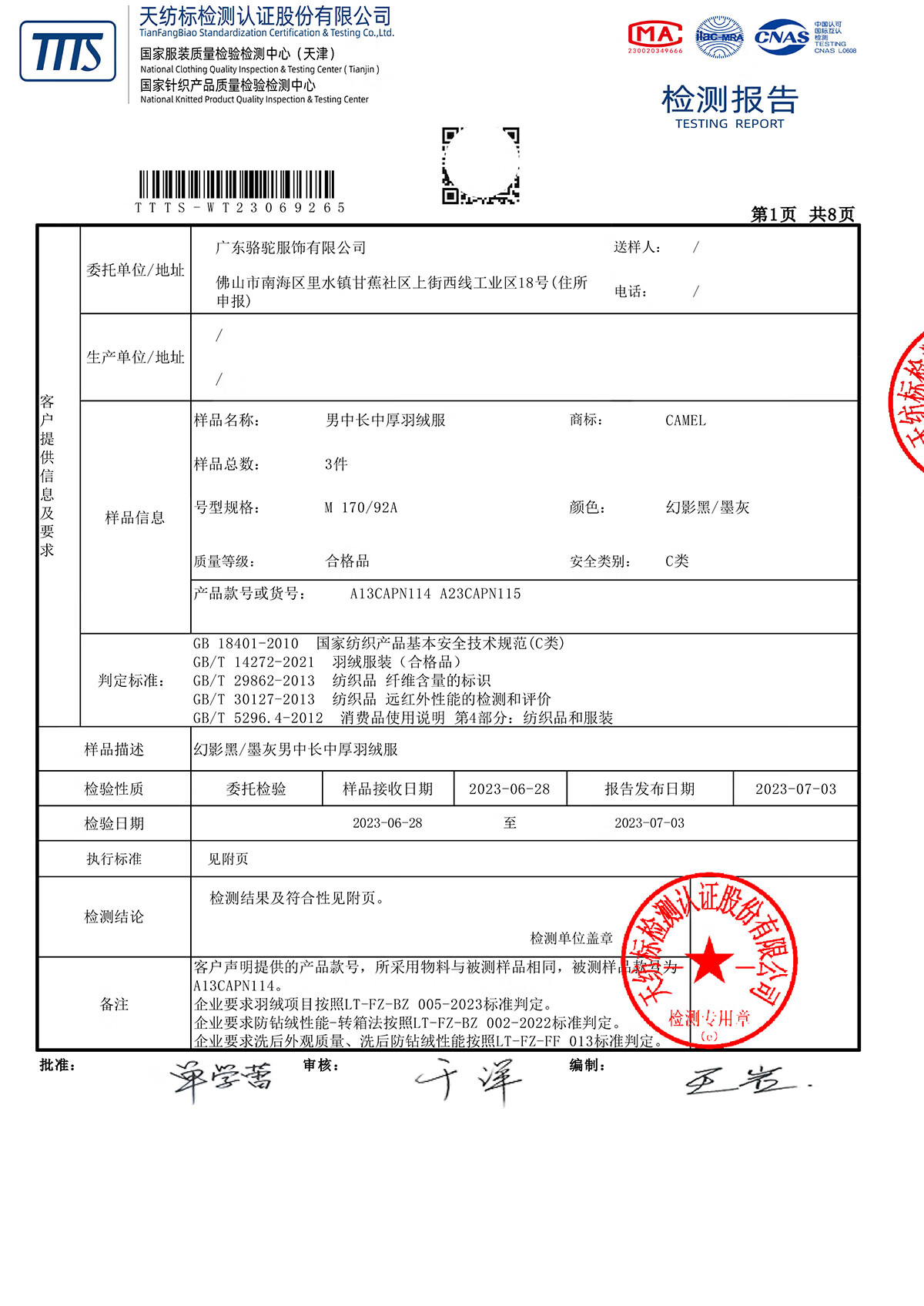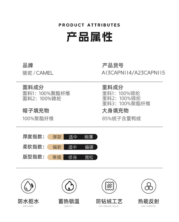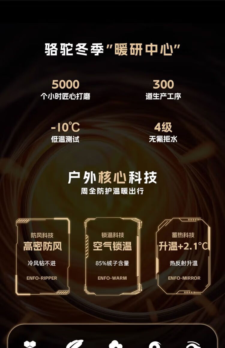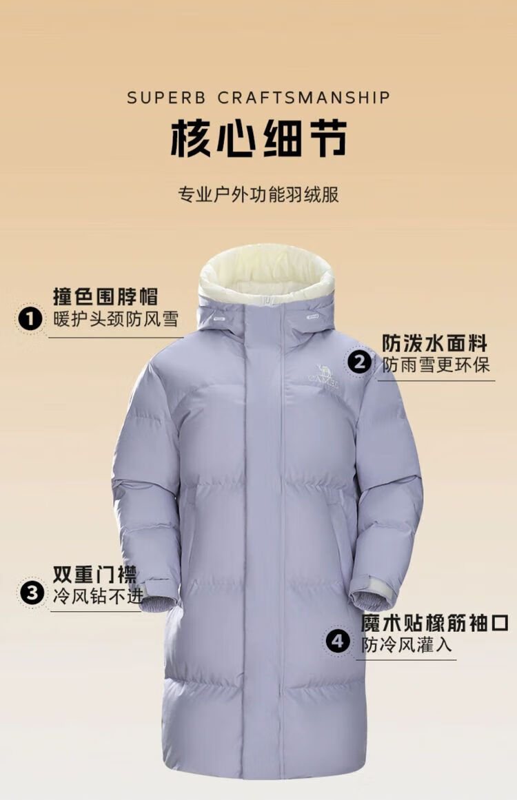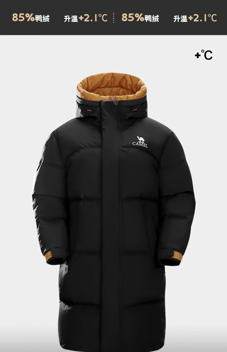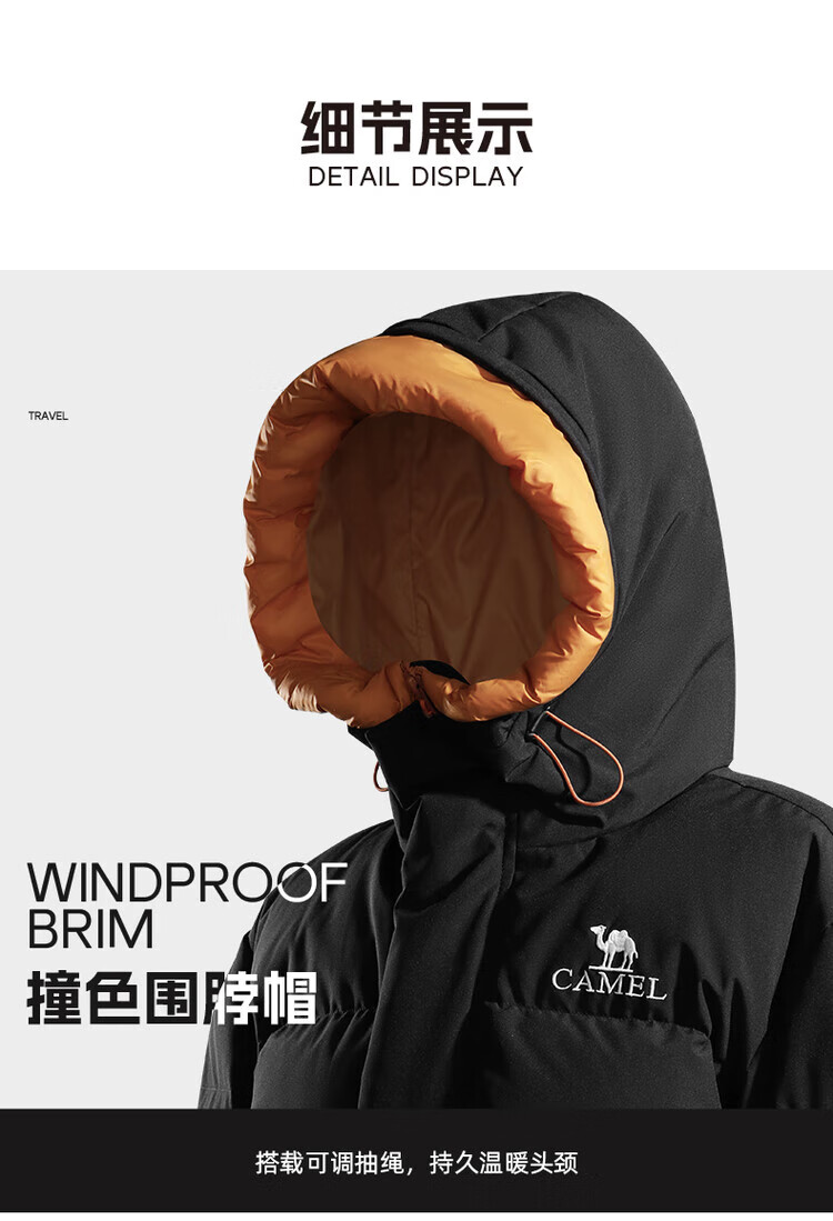 骆驼(CAMEL)户外羽绒服冬季新款男女中长款650蓬鸭绒高领加厚款拒水防风外套