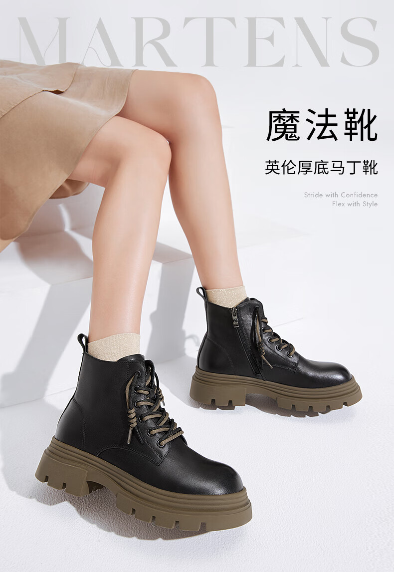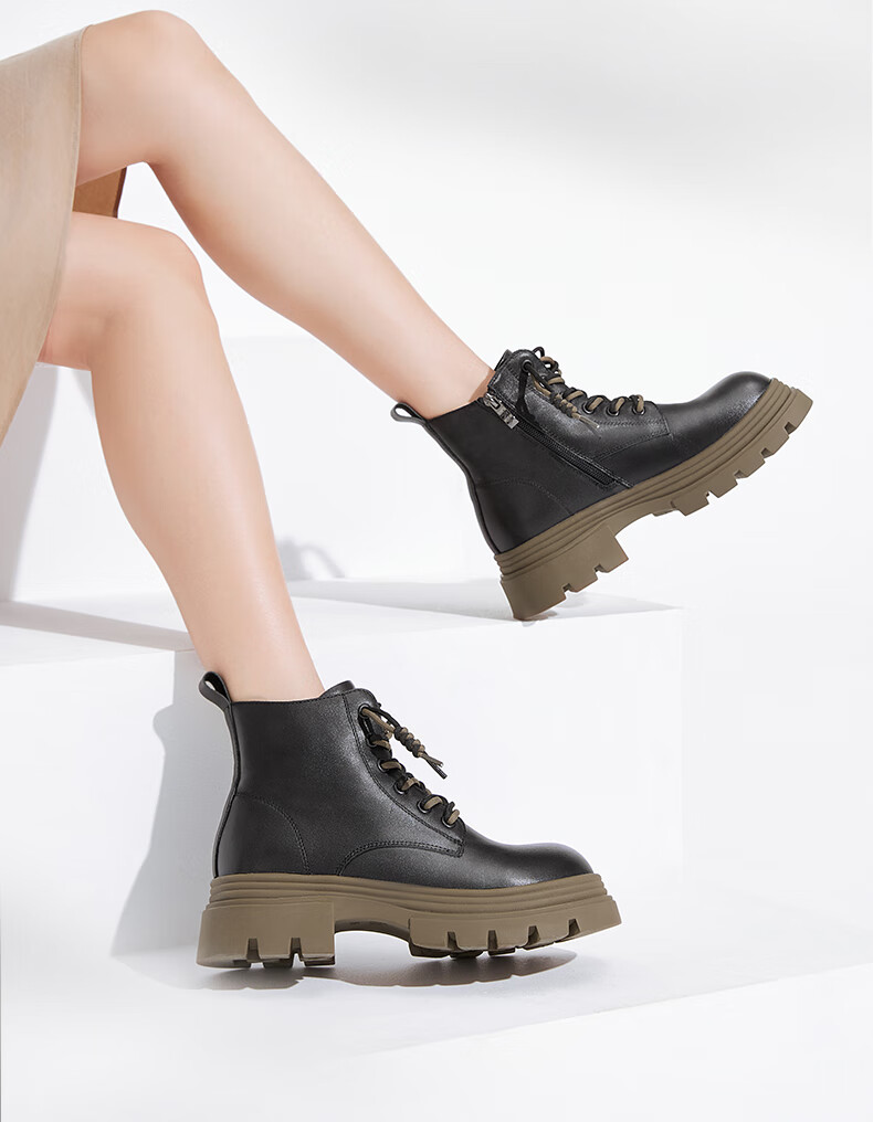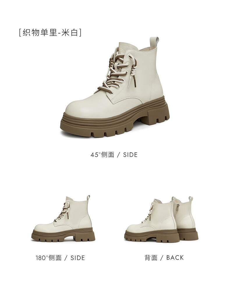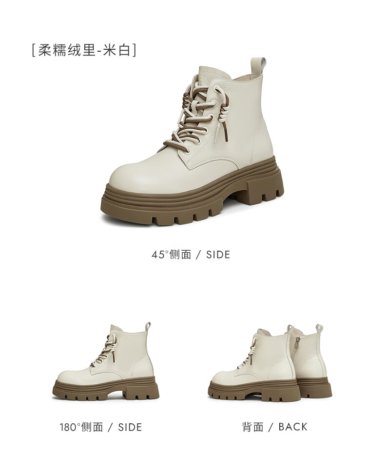 莱尔斯丹复古马丁靴女2025秋冬新款时尚通勤工装靴短靴子女靴6T44501 沙丘驼 CMS 34
