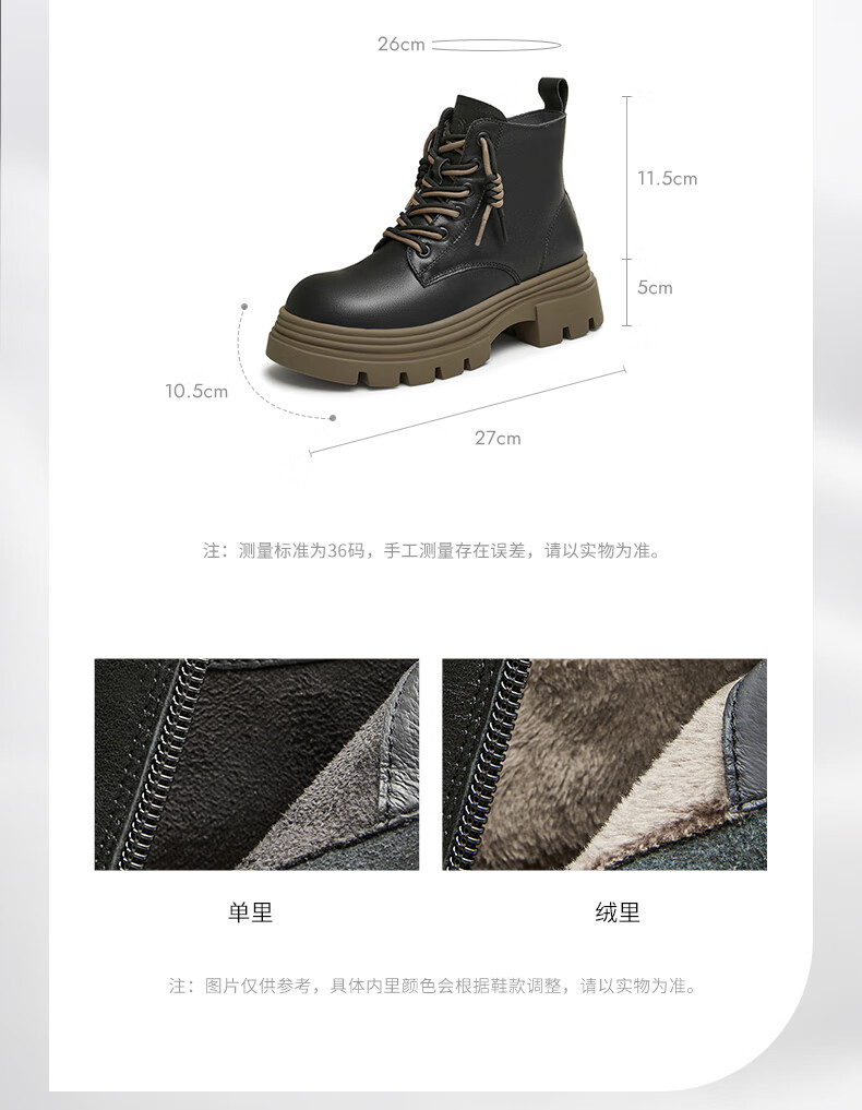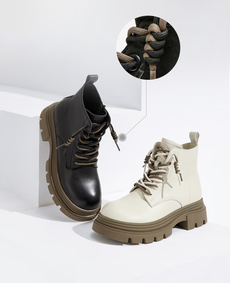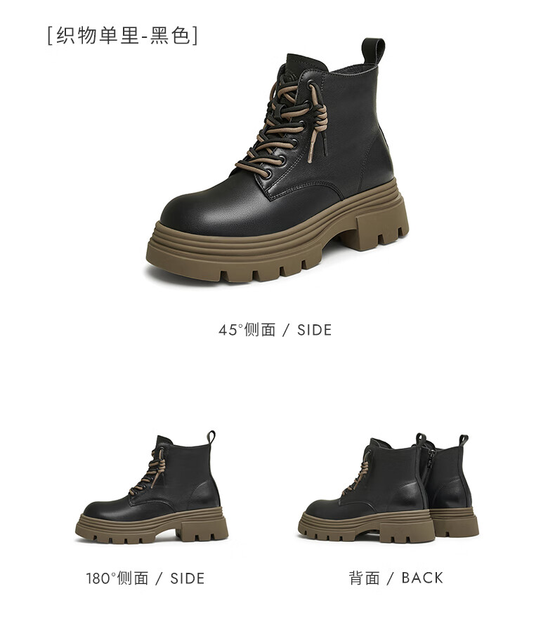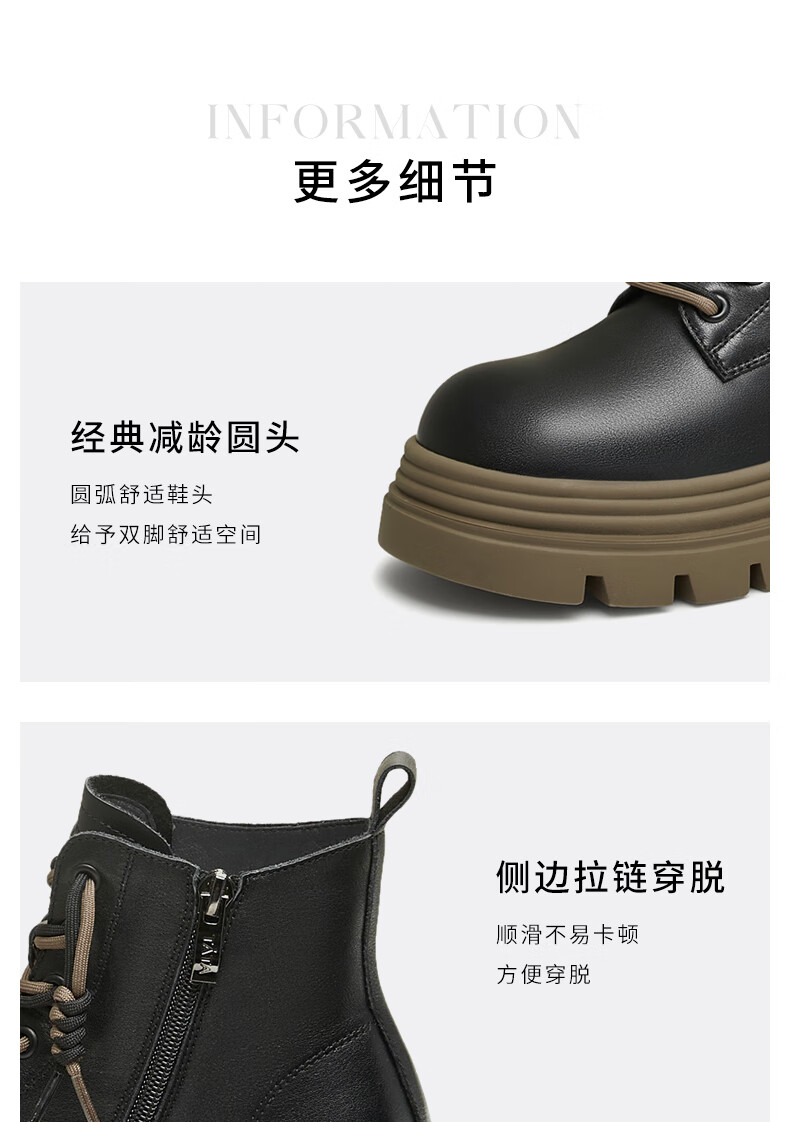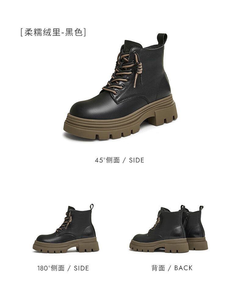 莱尔斯丹复古马丁靴女2025秋冬新款时尚通勤工装靴短靴子女靴6T44501 沙丘驼 CMS 34