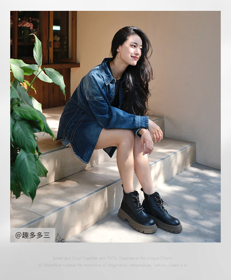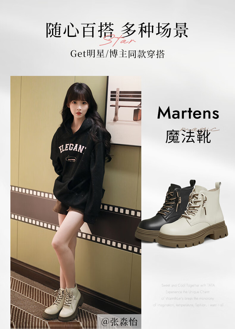 他她张淼怡Tata他她魔法靴厚底马丁靴女新款 黑(鞋底绿)(绒里) 39